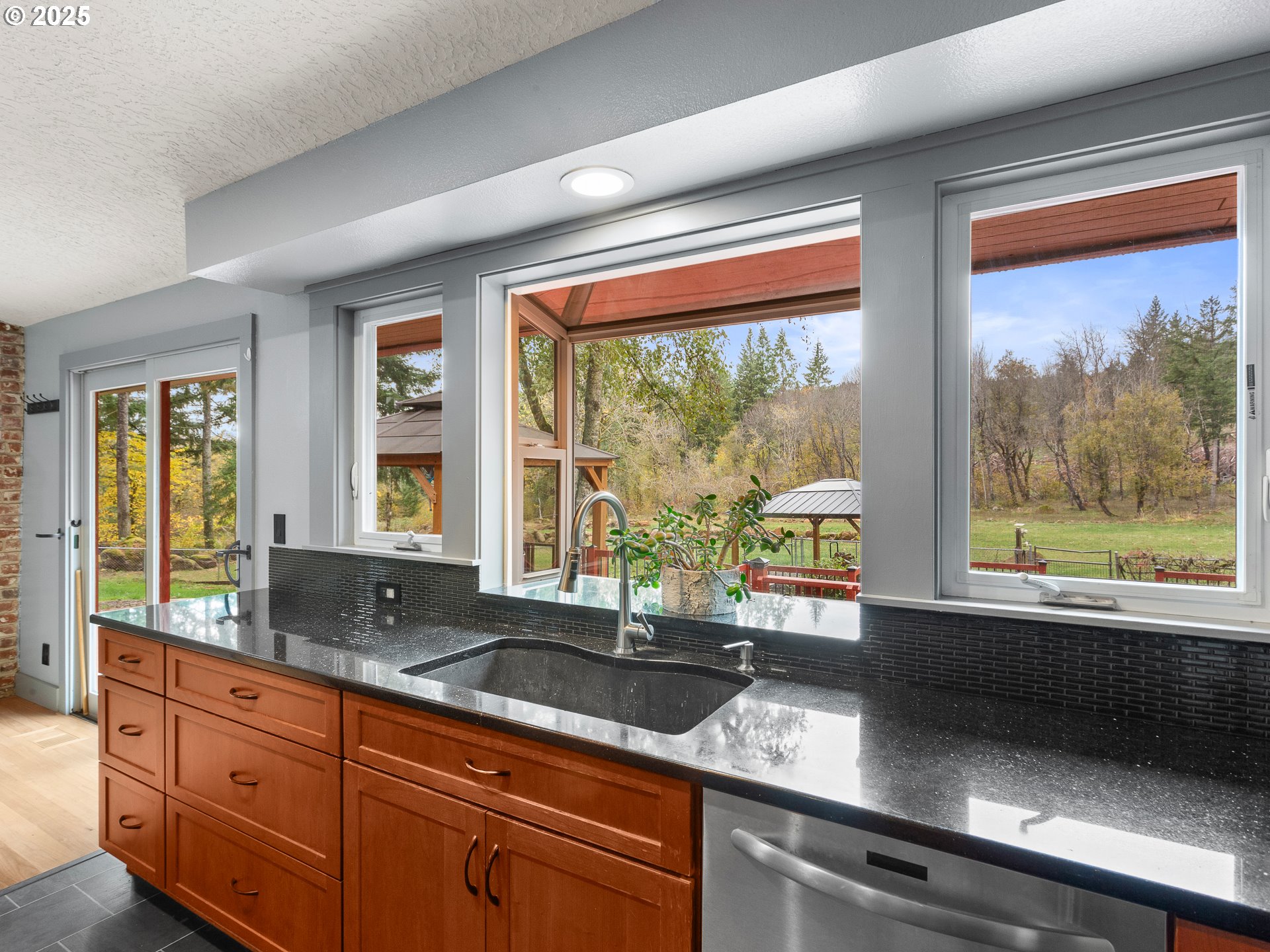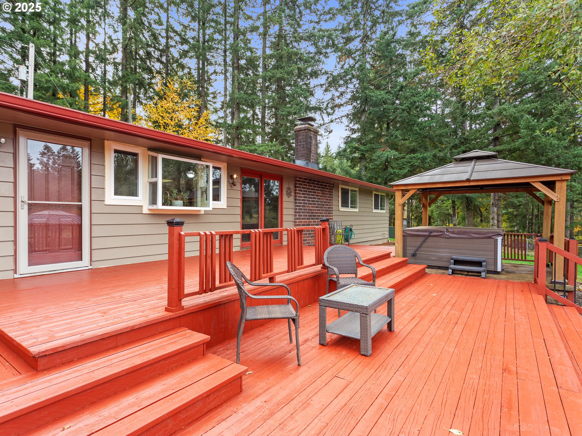 (503) 893-8874Private 2.5-acre retreat in the Camas School District with high-speed Comcast internet. Updated single-level ranch with 3 bedrooms, 3 full baths, and over $200K in improvements. Located at the end of a quiet street, you’ll enjoy peaceful wooded surroundings while staying close to everything—just 10 minutes to Oak Station Food Trucks, Costco, Safeway, Home Depot, Walmart, and more. Open floor plan with vaulted ceilings, refinished oak hardwoods, picture windows, skylights, and a cozy pellet stove with floor-to-ceiling brick surround. The gourmet kitchen features granite countertops, cherry cabinets, a cook’s island, stainless appliances, tile backsplash, and a barn door leading to a spacious utility room with abundant storage, granite counters, double sink, exterior access, and a full bath. The primary suite offers double closets and a spa-inspired bath with dual sinks, marble counters, porcelain tile, and a walk-in shower with built-in bench. Two additional bedrooms plus another full bath. Outdoor living shines with a three-tier deck, landscaped seasonal creek, saltwater hot tub under covered gazebo, and second gazebo with firepit for year-round enjoyment. Approximately ½ acre fenced, plus oversized 2.5-car garage, Tuff shed with loft, and 12x16 workshop with 220 power and roll-up door. Room to park RVs or add a barn. A rare blend of privacy, updates, and convenience—move-in ready!
