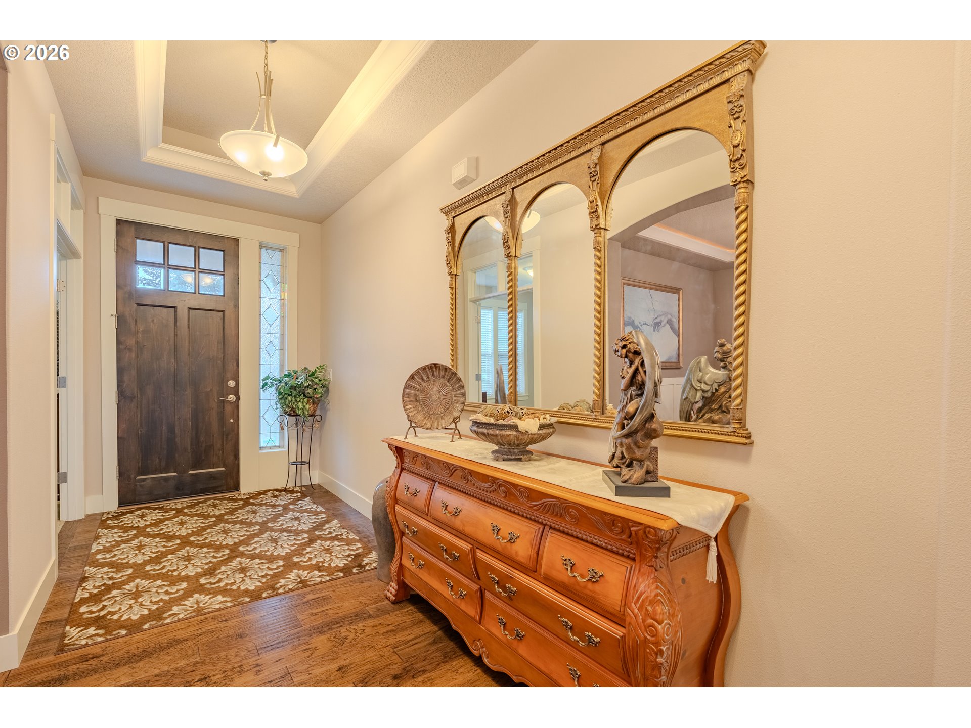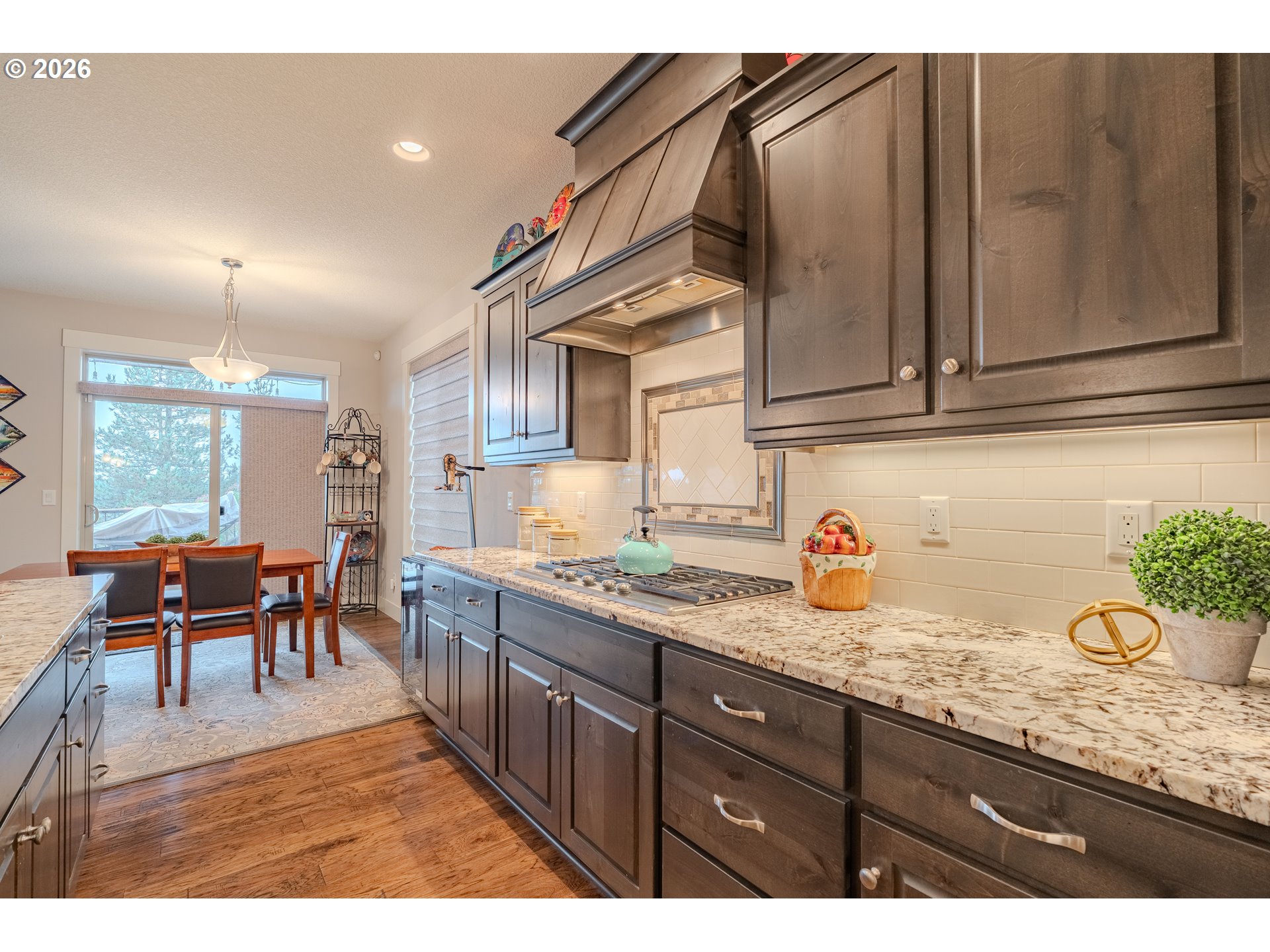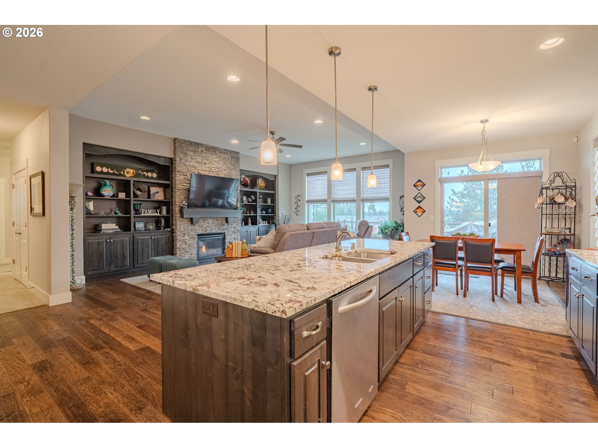 Welcome home to a thoughtfully designed residence where comfort, functionality, and ease of living come together in one of Salmon Creek’s most peaceful, quiet neighborhoods. Originally built as the builder’s model home in 2013, this residence showcases an elevated level of finishes and thoughtful upgrades throughout.A front office/den provides flexible space for working from home or a quiet retreat, while engineered hardwood floors and wide hallways lead into a warm, inviting great room anchored by a floor-to-ceiling stone gas fireplace with custom built-ins—ideal for everyday living and effortless entertaining.The kitchen is both stylish and practical, featuring granite countertops, a large center island, gas cooktop, butler’s pantry, and separate pantry. The adjacent dining area is accented by classic wainscoting, creating an elevated yet comfortable space for gatherings. Thoughtful storage throughout and a laundry room with utility sink and built-in bench add to the home’s everyday ease.The primary suite offers a private retreat with dual closets and a spa-inspired bath. Step outside to enjoy a low-maintenance outdoor living space designed for use—not upkeep—featuring Trex decking, raised garden beds, a covered patio, and a fully equipped outdoor kitchen, all complemented by territorial views and seasonal views of Mt. Hood.All of this is set just minutes from I-5 and I-205, Legacy Salmon Creek Medical Center, and Washington State University Vancouver, offering exceptional convenience without sacrificing tranquility.This is a home designed for buyers who value turn-key living, thoughtful design, and a low-maintenance lifestyle—with more time to enjoy life and less time spent on upkeep.