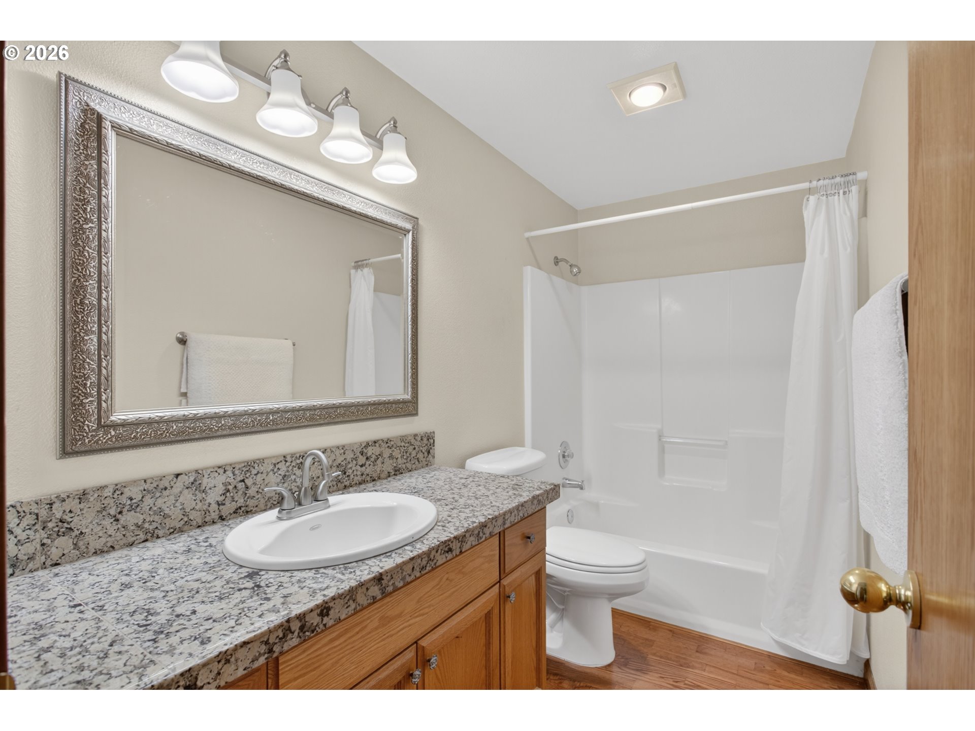 (503) 893-8874This Salishan floor plan is the Family version, nestled a short distance from the clubhouse & Golf. Surrounded by other Village Homes, this Salishan offers easy access, with no step to the front door and no step out back to the patio! Beautiful wood floors throughout, and open to a large Vaulted Living room with towering windows, the warmth and beauty of a sealed gas fireplace with remote. A wall was removed to create an open-concept and a kitchen you would typically find in a larger home, with an island, a pantry, a study desk, a large kitchen-sink window, and a solar tube for natural light. The Primary Suite has a walk-in closet and step-in shower, and the guest bath has a tub/shower. A laundry room with abundant cabinet storage and a deep wash basin. Outback, you will stay dry or in the shade under your covered Patio, overlooking an oversized, low-maintenance composite deck, tucked away in a private setting at one end, then open to an unobstructed golf course view on the other end. Relax on your large covered patio, the electric awning extends the shade as needed. Just a short distance to all amenities! This residence is located within a 55+ master-planned community that provides a comprehensive range of amenities, including a clubhouse, organized activities, fitness facilities, a swimming pool, and various recreational options, fostering an active, engaging lifestyle for its residents.