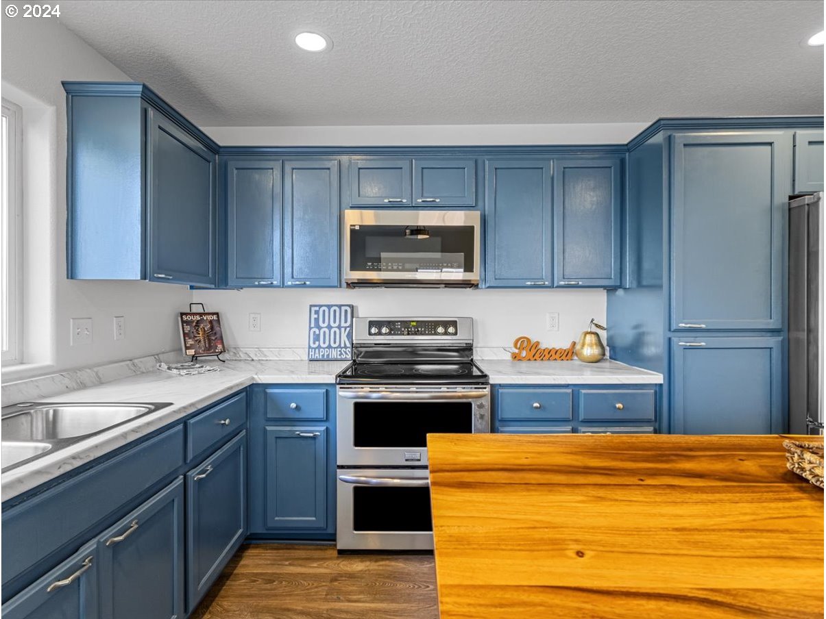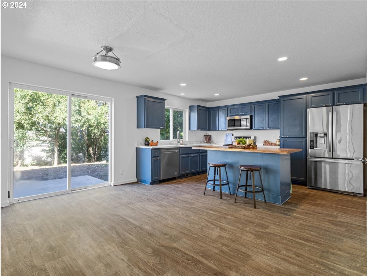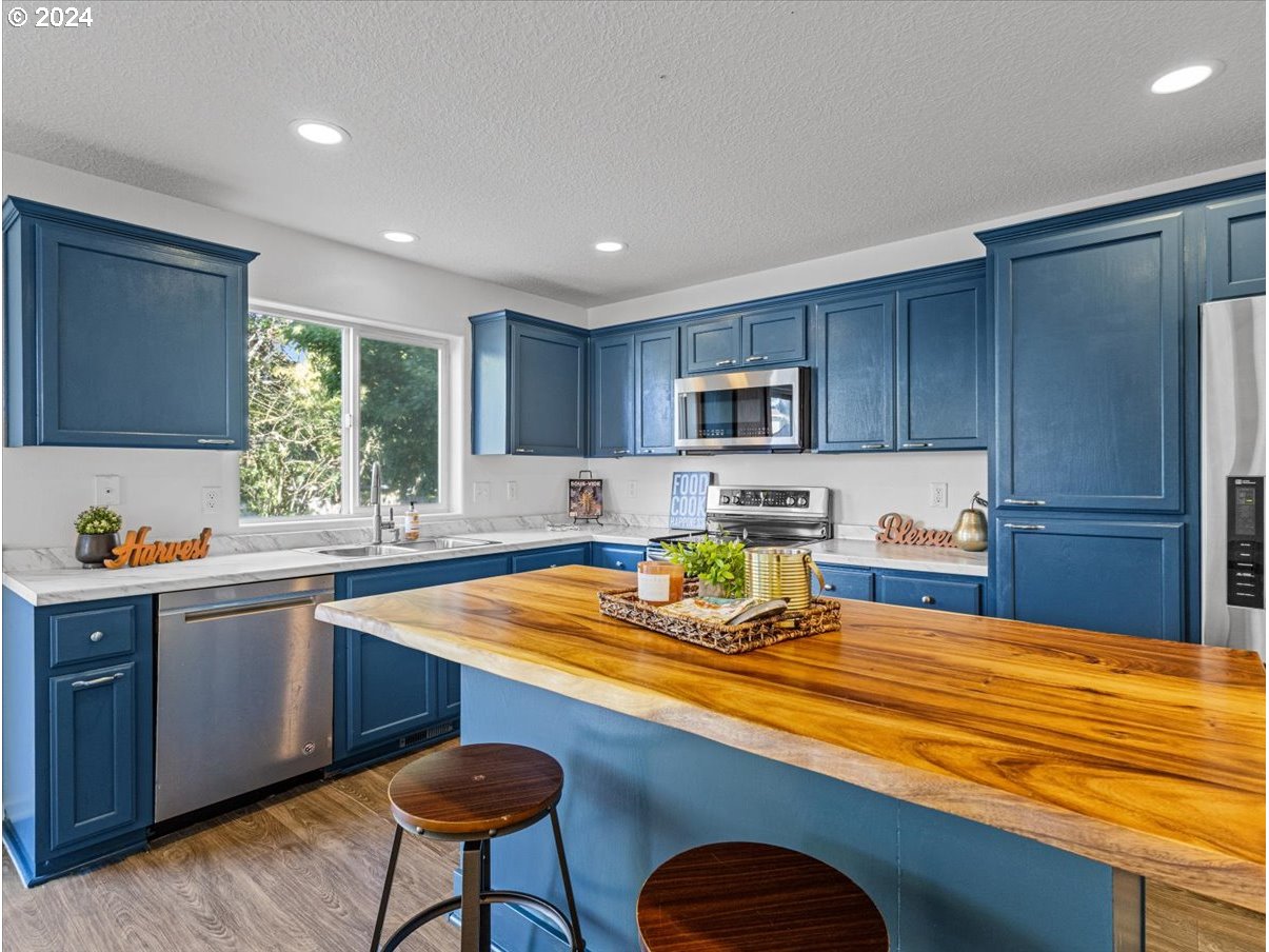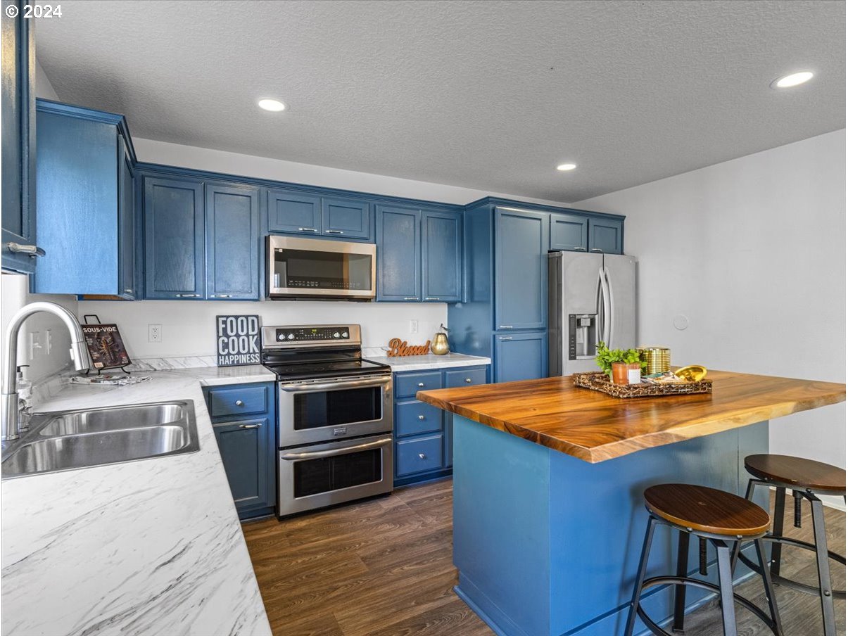 Dishwasher, FreeStandingRange, FreeStandingRefrigerator, Island, Microwave, StainlessSteelAppliance
