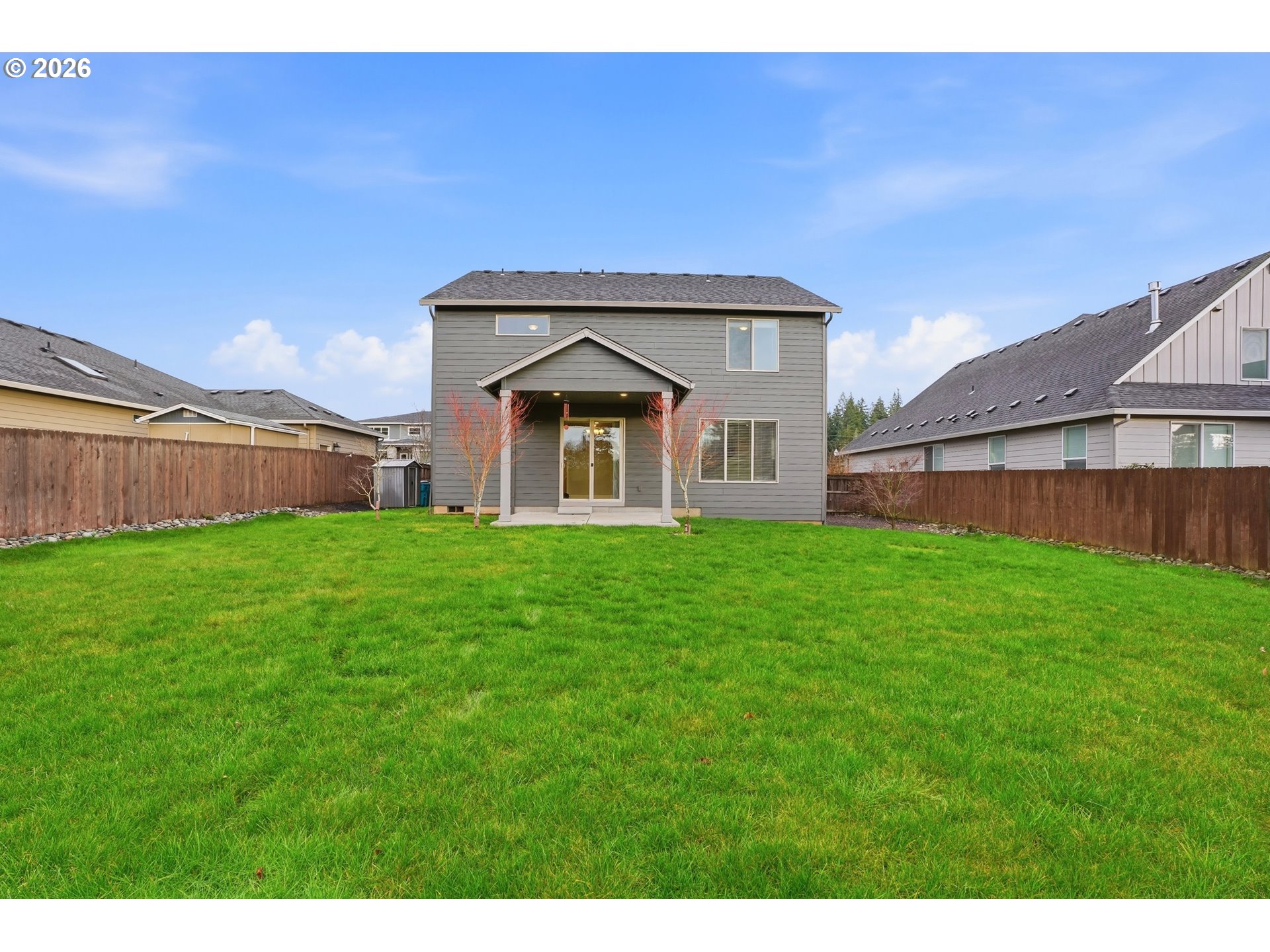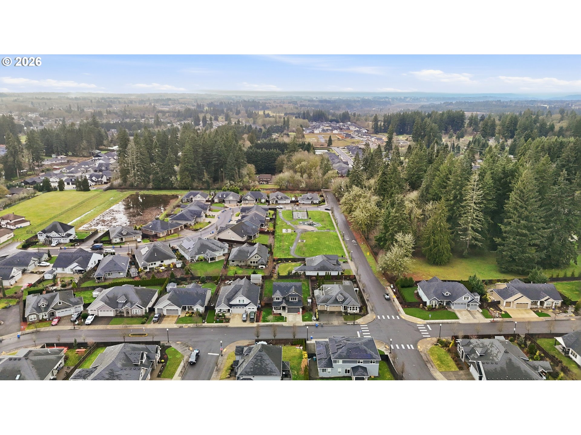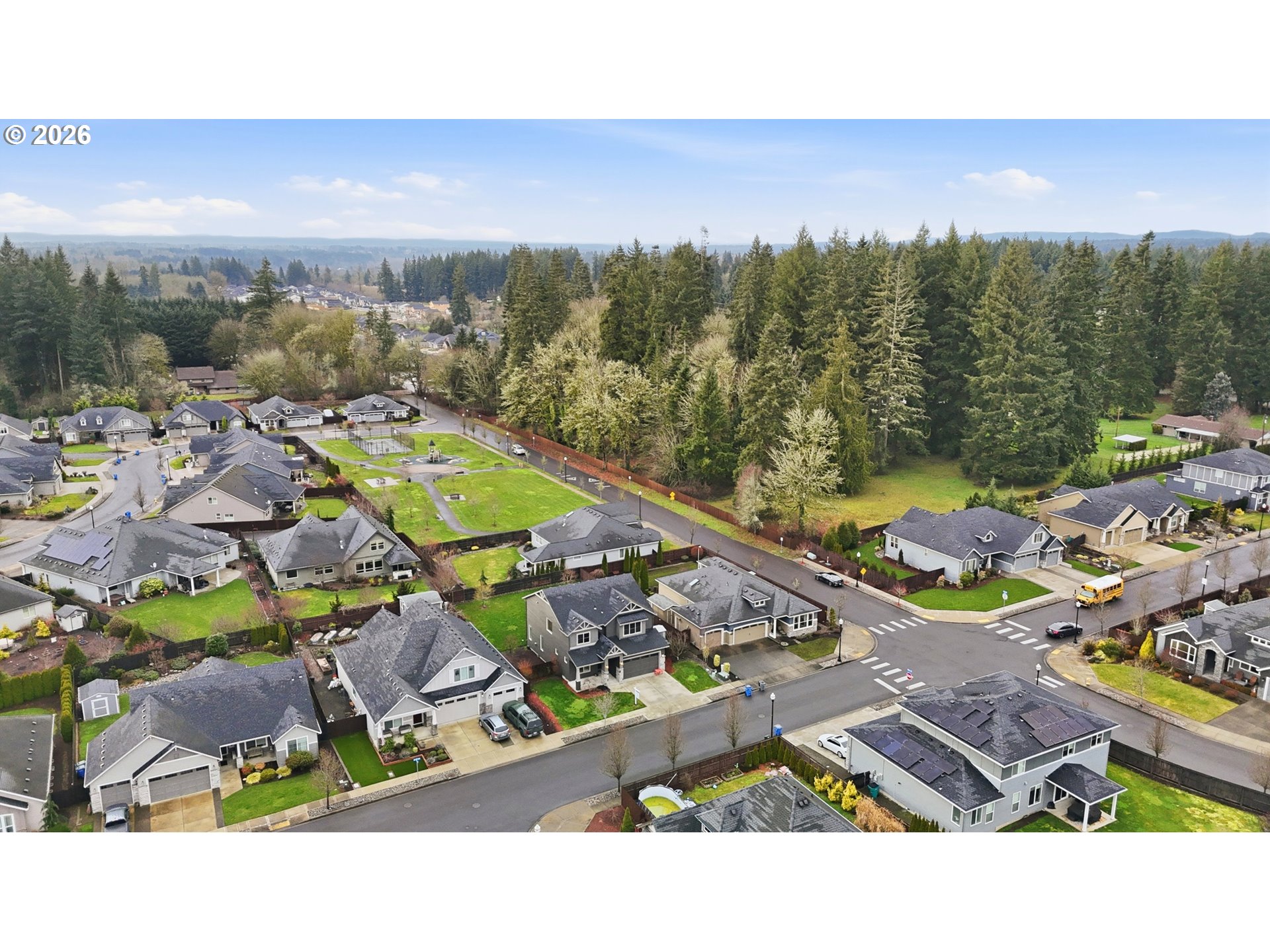 Light-filled and thoughtfully laid out, this **2,523 sq ft, 4 bed/2.5 bath** home was built by **New Tradition Homes**—known for **Built Green & ENERGY STAR** certified construction—and this home is certified for comfort and efficiency. A covered front porch welcomes you in to hardwood floors that run from the foyer through the kitchen and dining areas. Just off the entry, a double-door office offers a quiet, flexible space for work or hobbies. The open great-room design is anchored by a gas fireplace with stone surround and flows into the island kitchen featuring granite countertops, an oversized seating island, walk-in pantry, gas range, and stainless-steel appliances. A spacious utility/mud room adds storage and connects to the garage.Step out from the dining area to a covered patio and a deep, fully fenced backyard—thoughtfully sited on an **8,552 sq ft lot** to maximize usable outdoor space and views. Upstairs, double doors open to a generous primary suite with a large walk-in closet and a travertine-finished bath with dual sinks and abundant counter space, soaking tub, and walk-in shower. Three additional bedrooms include one oversized—ideal as a bonus, media, or guest room—plus a full hall bath with dual sinks.Enjoy wide, quiet streets and a neighborhood park with walking paths, tennis and basketball courts, picnic areas, and a playground—plus quick access to Battle Ground Lake, Lewisville Park, shopping, and dining.