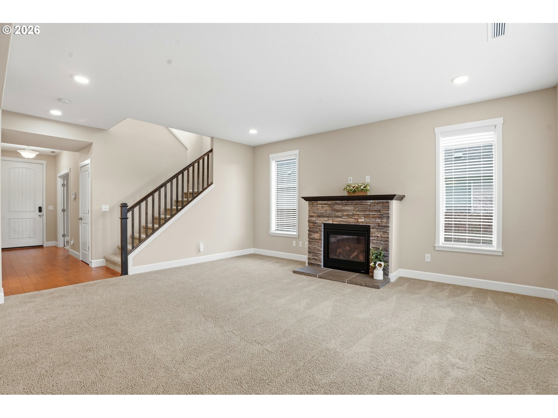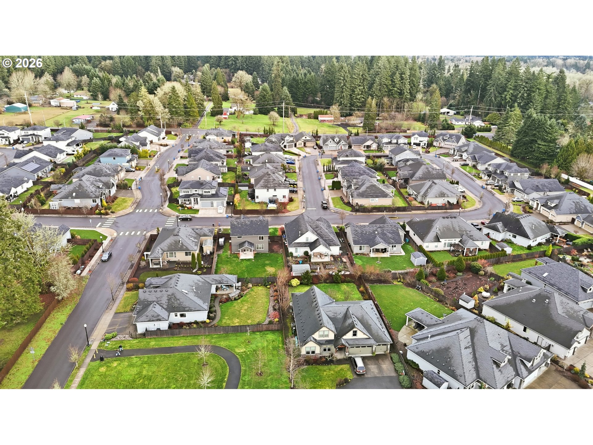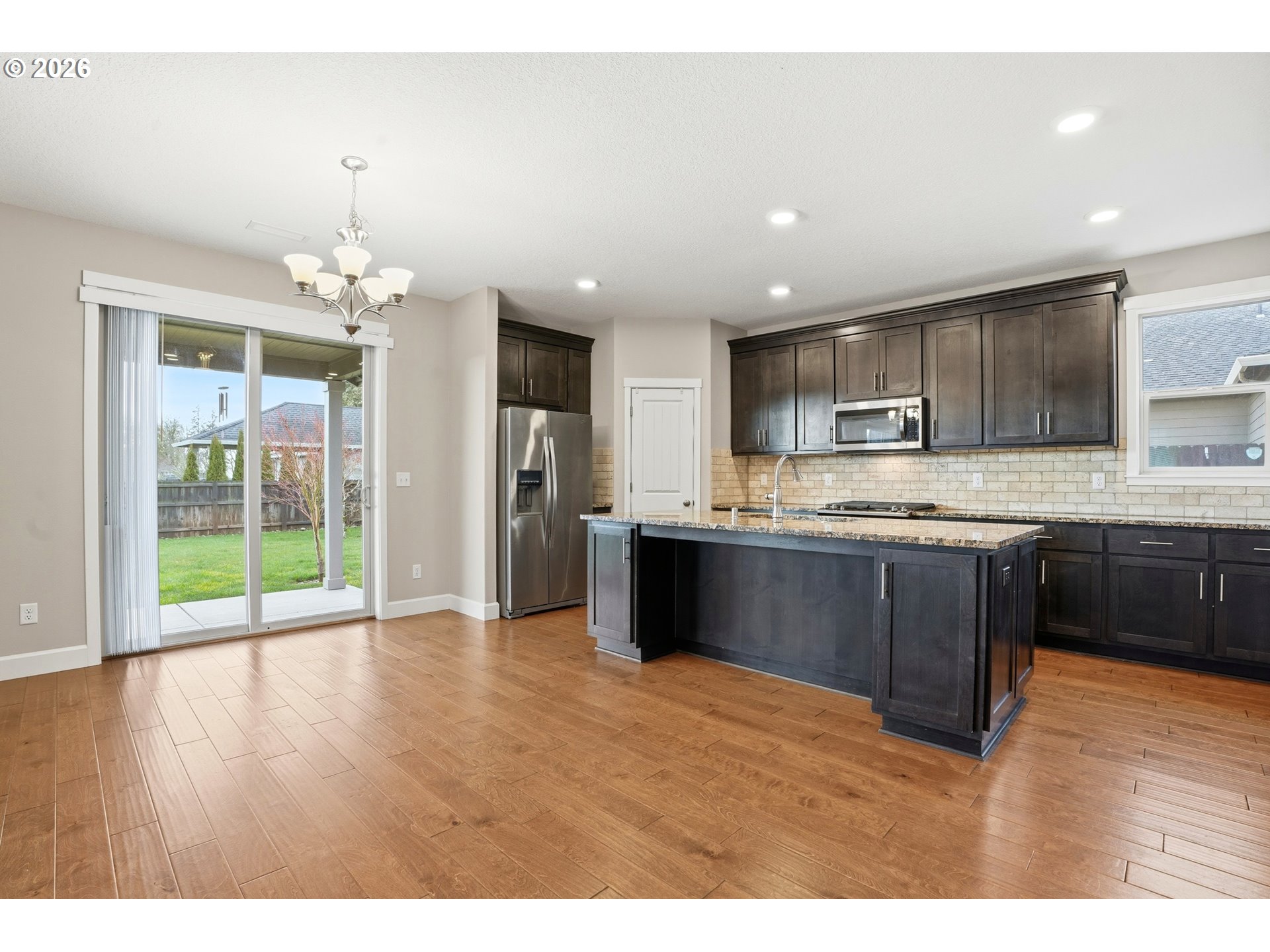 Light-filled and thoughtfully laid out, this **2,523 sq ft, 4 bed/2.5 bath** home was built by **New Tradition Homes**—known for **Built Green & ENERGY STAR** certified construction—and this home is certified for comfort and efficiency. A covered front porch welcomes you in to hardwood floors that run from the foyer through the kitchen and dining areas. Just off the entry, a double-door office offers a quiet, flexible space for work or hobbies. The open great-room design is anchored by a gas fireplace with stone surround and flows into the island kitchen featuring granite countertops, an oversized seating island, walk-in pantry, gas range, and stainless-steel appliances. A spacious utility/mud room adds storage and connects to the garage.Step out from the dining area to a covered patio and a deep, fully fenced backyard—thoughtfully sited on an **8,552 sq ft lot** to maximize usable outdoor space and views. Upstairs, double doors open to a generous primary suite with a large walk-in closet and a travertine-finished bath with dual sinks and abundant counter space, soaking tub, and walk-in shower. Three additional bedrooms include one oversized—ideal as a bonus, media, or guest room—plus a full hall bath with dual sinks.Enjoy wide, quiet streets and a neighborhood park with walking paths, tennis and basketball courts, picnic areas, and a playground—plus quick access to Battle Ground Lake, Lewisville Park, shopping, and dining.
