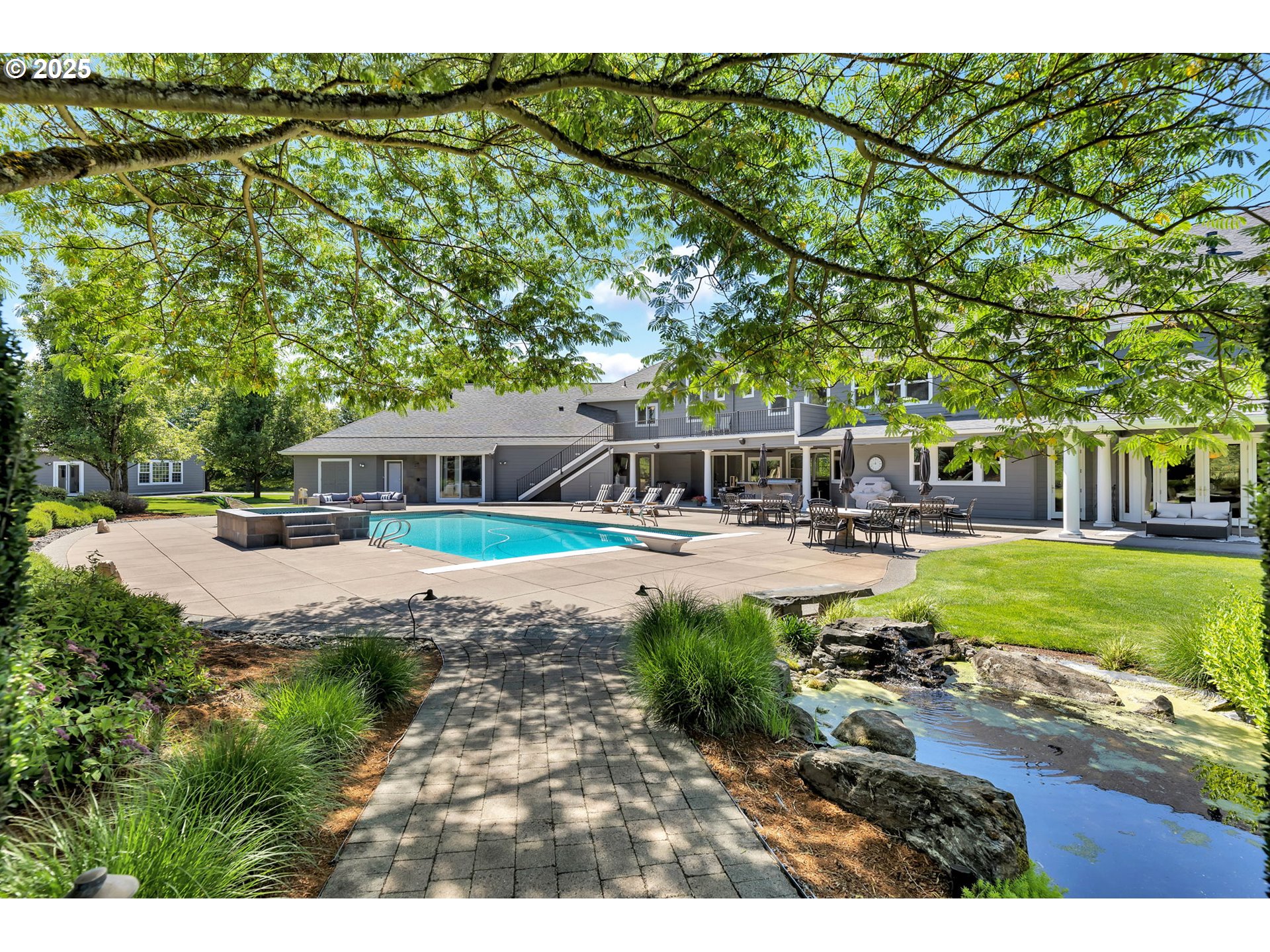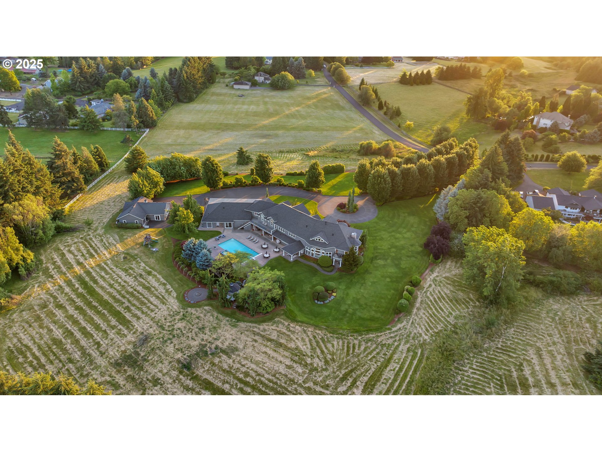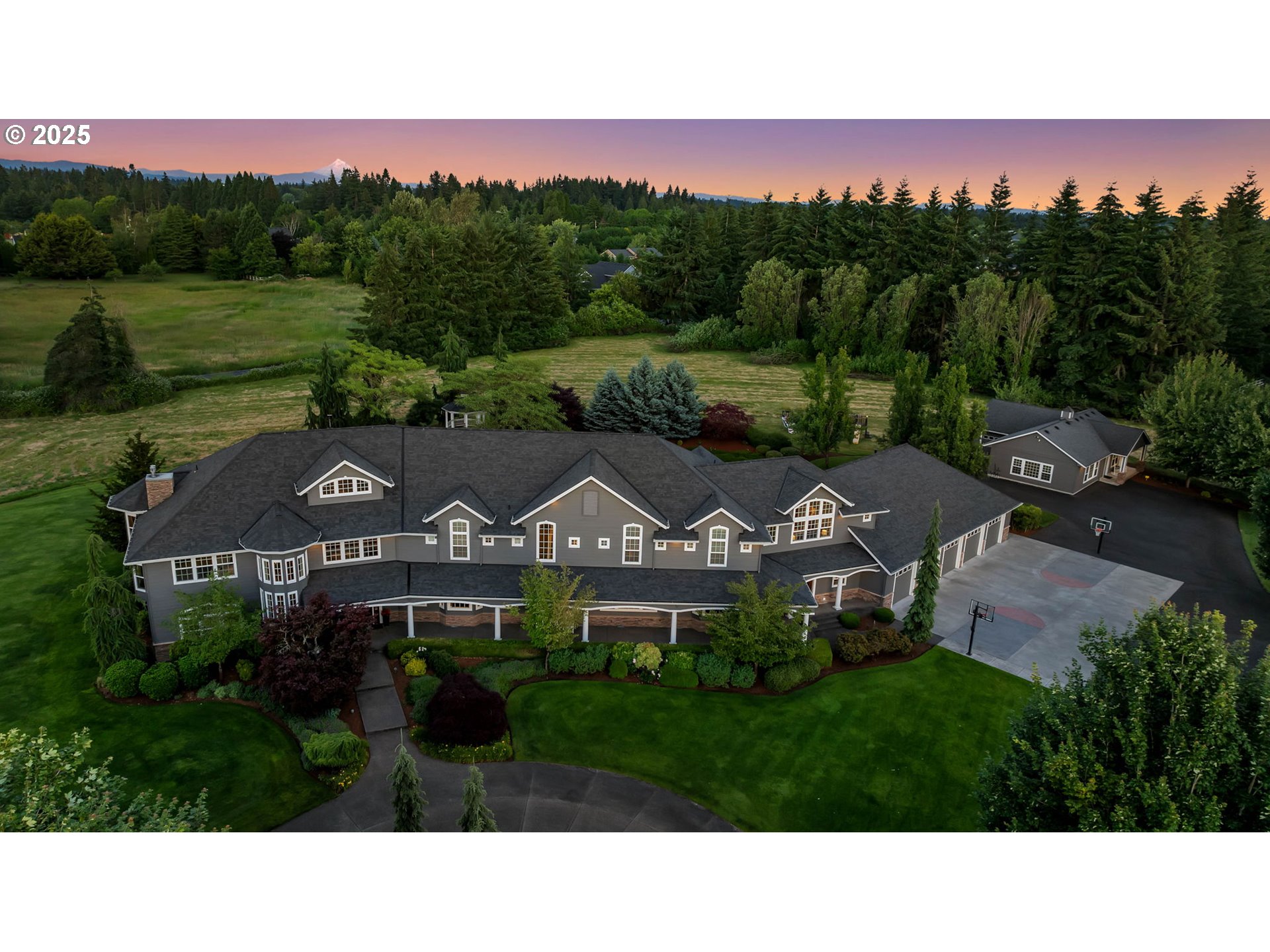 (503) 893-8874Private tree lined drive leads your guests to this stunning 6.53-acre Cape Cod Estate. A retreat designed for comfort, elegance, and unforgettable moments. Two Primary Suites! Main level suite features gas fireplace w/ cherry cabinetry surround & two spacious walk-in closets w/ built ins. Upper-level 2nd primary w/ vaulted beamed ceilings, gas fireplace, flex space w/ bayed window & spacious walk-in closet. 5 additional bedroom suites upstairs including gym/yoga room w/ balcony, spacious laundry room, storage room & back staircase. Second level guest quarters w/ separate entrance, kitchenette, vaulted bedroom, full bath & private balcony. Two story formal living w/ floor to ceiling windows, gas fireplace w/ marble surround. Main level office w/ built-in desk offering three workstations, built-in bookshelves & closet. Chef's kitchen features cherry cabinetry, 6 burner Viking range, expansive solid granite workspace & island w/ bar seating for 7, two dishwashers, built-in kitchen desk & large walk-in pantry. Gorgeous formal dining features cherry boxed beam ceiling, gas fireplace w/ cherry built-ins & French doors to covered patio. Great room w/ bay window and built-in cherry cabinetry is an entertainers dream. Double sliders open to beautiful outdoor covered entertaining w/ bar, infrared BBQ, outdoor fireplace & 1000 sf pool w/ spa. 4 zone HVAC w/ newer A/C units. New 50-year roof. Newer exterior paint. 5 car oversized garage w/ built-in cabinetry & epoxy flooring. Separate 1196 sf guest house/office features kitchenette, bedroom & full bath plus several flex spaces & one car garage.