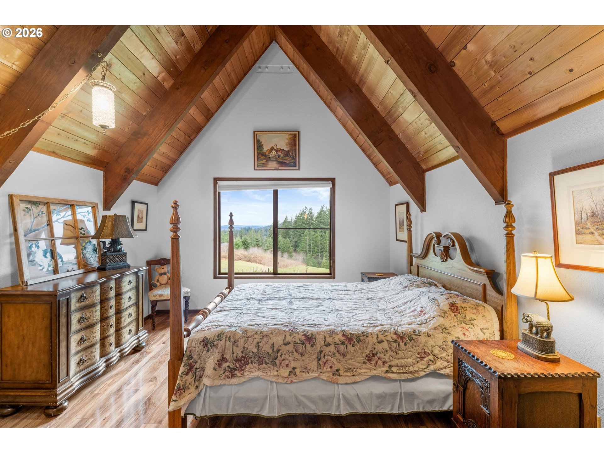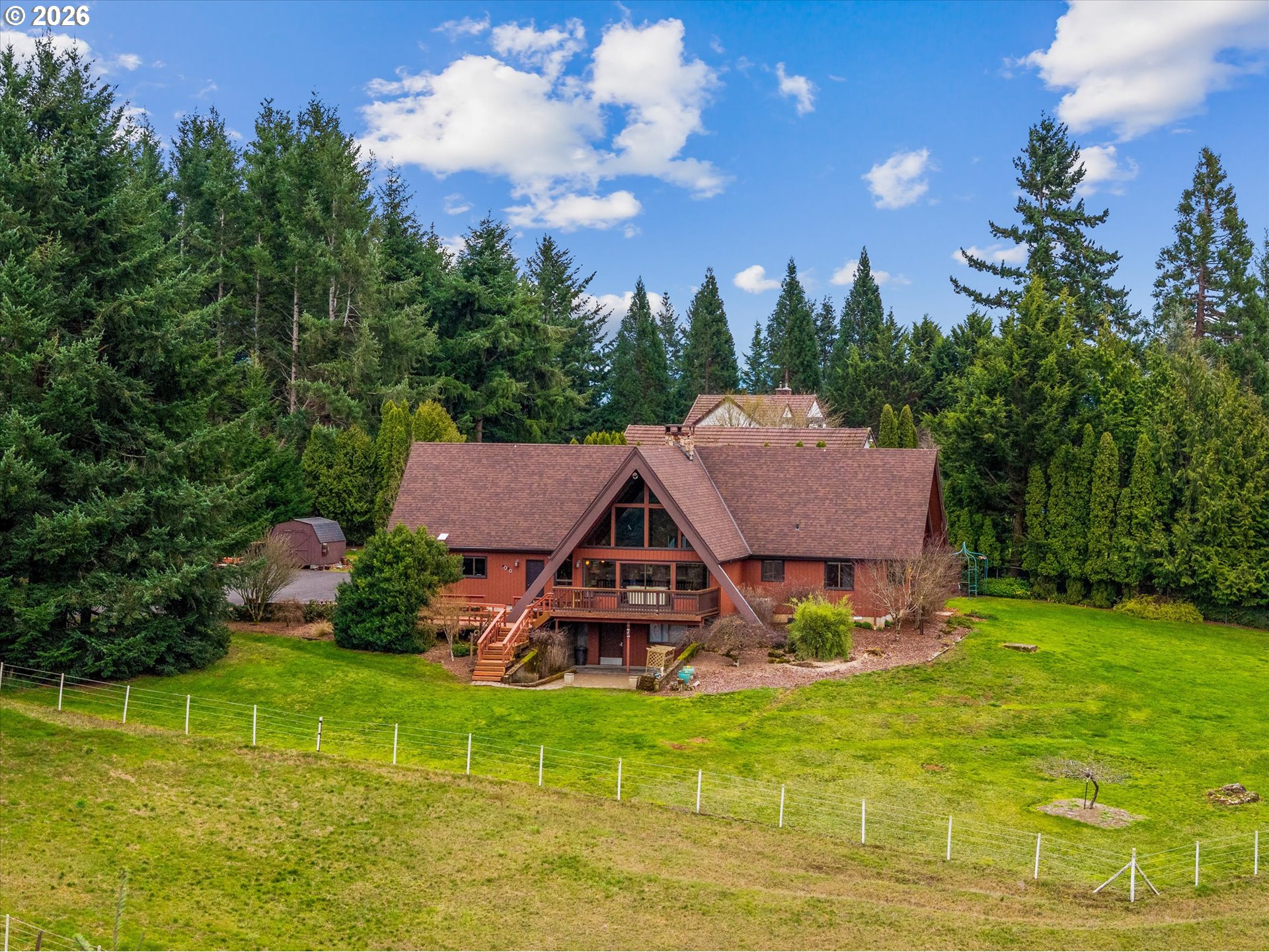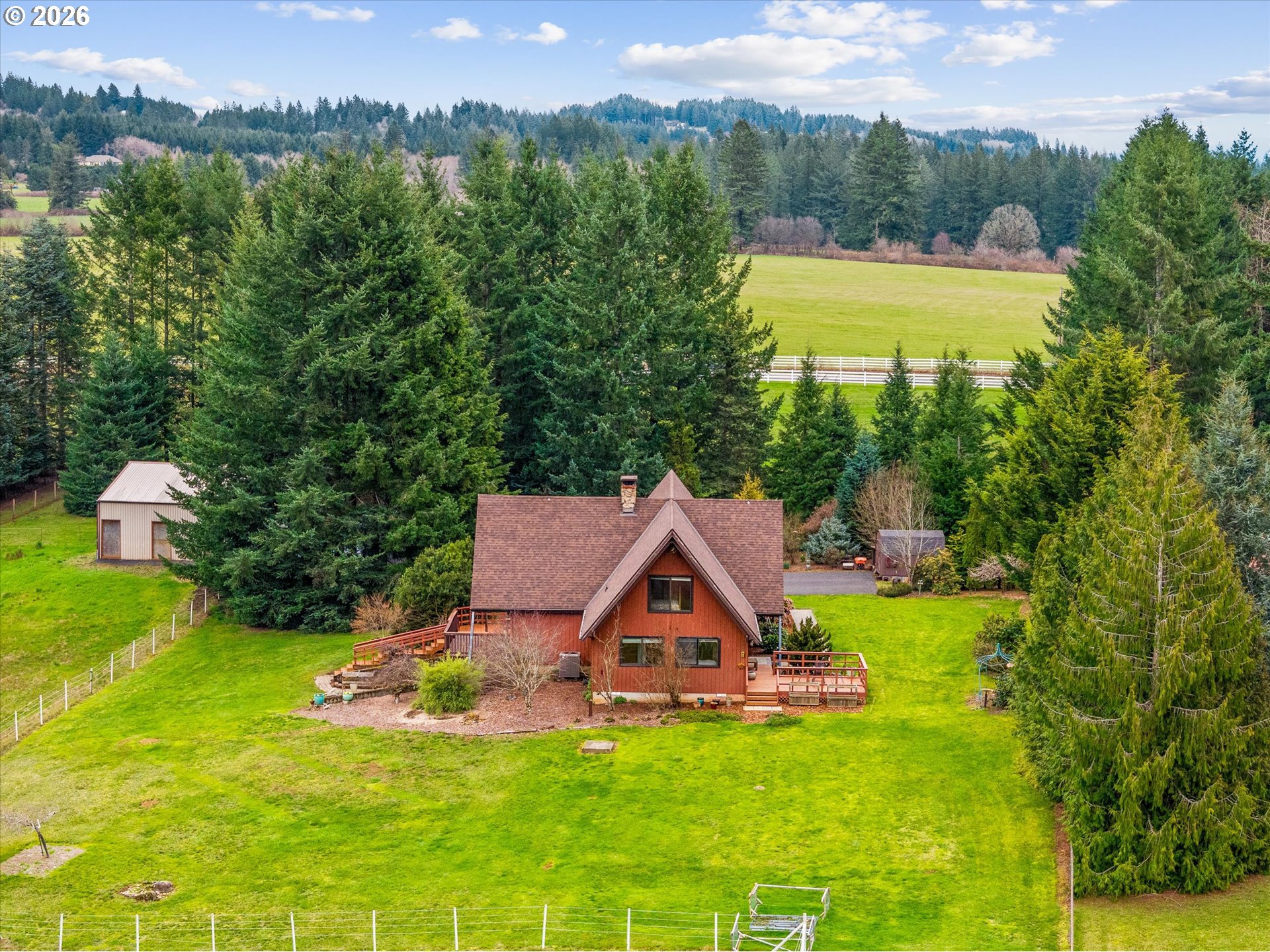 Tucked away at the end of a private drive and surrounded by six scenic acres, this striking A-frame home offers a rare opportunity to own something truly special. With breathtaking views and timeless architectural character, this is a home for those who appreciate craftsmanship and a setting that cannot be replicated. Inside, soaring vaulted ceilings, exposed beams, and walls of glass define the dramatic great room, where natural light pours in and the landscape becomes part of the living space. A stunning stone fireplace anchors the room, creating warmth and a natural gathering place. Rich wood finishes throughout the home reflect the classic Northwest lodge style, while the thoughtful layout offers three bedrooms, two baths, and an office designed for comfortable everyday living. The dining area captures beautiful views of the surrounding countryside, and the expansive deck invites you to relax, entertain, and take in the peaceful surroundings. Outside, the six private acres provide space, privacy, and endless possibilities—from gardening and recreation to simply enjoying the tranquility of nature. The landscaping is a nature enthusiast’s dream, with rare flowering trees, such as Japanese white wisteria, Japanese weeping snowbell and Sargent Tina dwarf crab apple tree. With the woodshop/barn, you will have a place for your hobbies or turn it back into the original home for 3 horses. This is not a typical home. It is a property for someone who values architecture, quality, and the kind of setting that makes every day feel like a retreat.