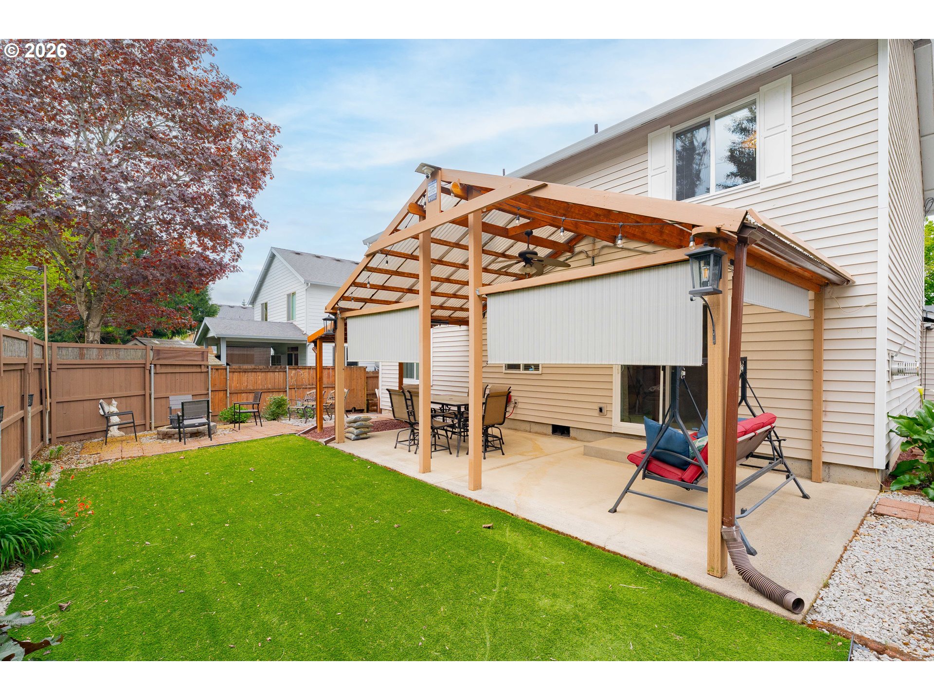 Open House Saturday, April 25 from 12–2pm – Join us! Sitting on a spacious .13 flag lot, this 2,232 sf home offers 4 bedrooms and 2.5 bathrooms with a layout that truly delivers on space, comfort, and everyday livability. The main level features a bayed living room, formal dining area, and a welcoming family room anchored by a cozy gas fireplace, opening through sliders to a covered patio with lighting and ceiling fan - perfect for year-round enjoyment! The open kitchen includes solid surface countertops, an eating bar, full backsplash, pantry, and stainless appliances (refrigerator included). Stylishly updated bathrooms and a large laundry room with built-ins and utility sink add to the home’s thoughtful functionality. Upstairs, you’ll find three nicely sized bedrooms plus a spacious, vaulted owner’s suite with a bay window, two closets, and a beautifully updated, spa-inspired ensuite featuring double sinks, a walk-in shower, and large walk-in closet. The backyard is a true highlight -lovingly manicured, low maintenance, and designed for gathering and play with pathways, turf, fire pit, multiple seating areas, and a tool shed for added utility. Attached 2-car garage plus valuable additional covered parking offers flexibility for vehicles, hobbies, or storage. Centrally located and convenient to parks, schools, shopping, dining, and everyday amenities.