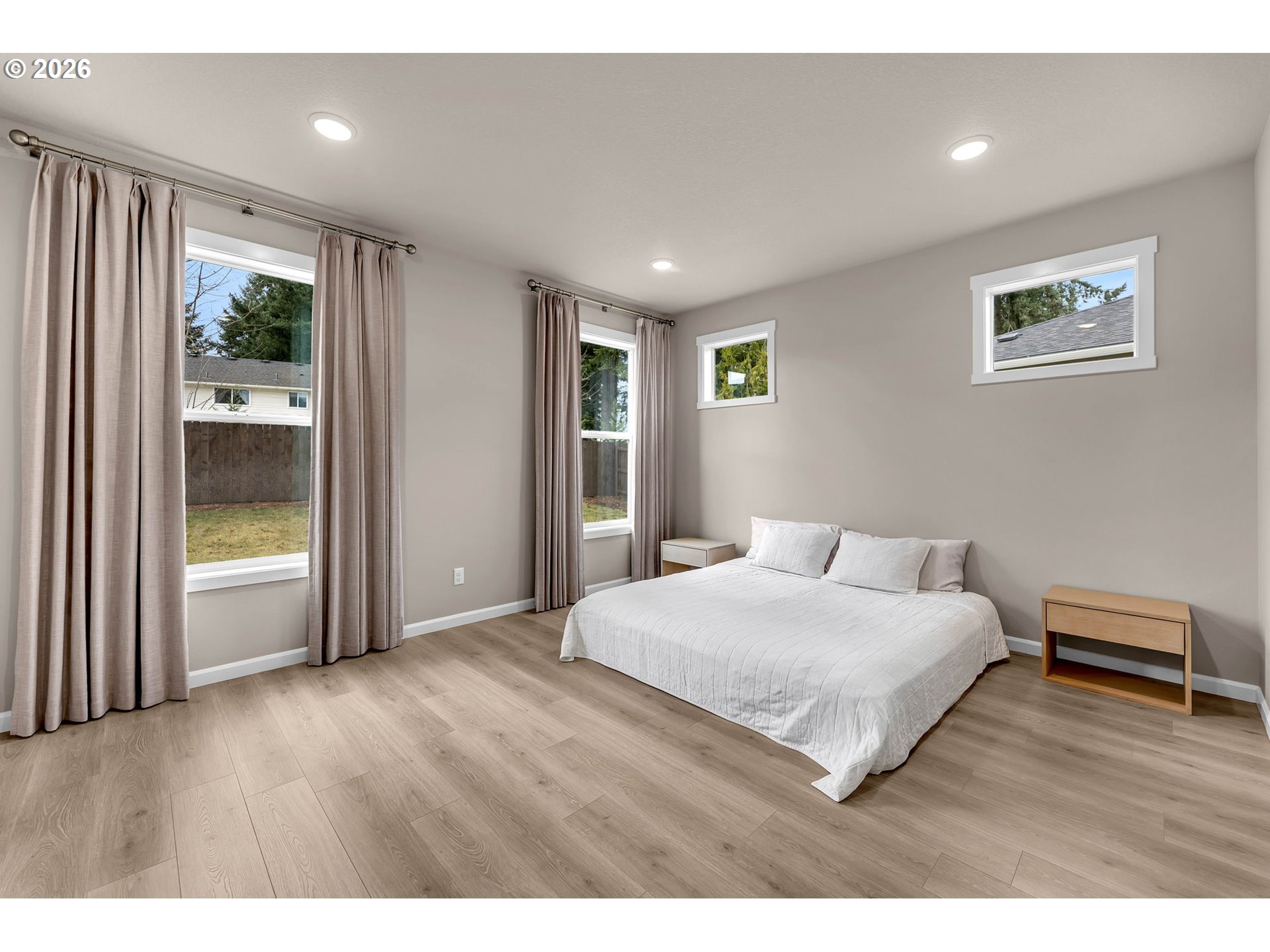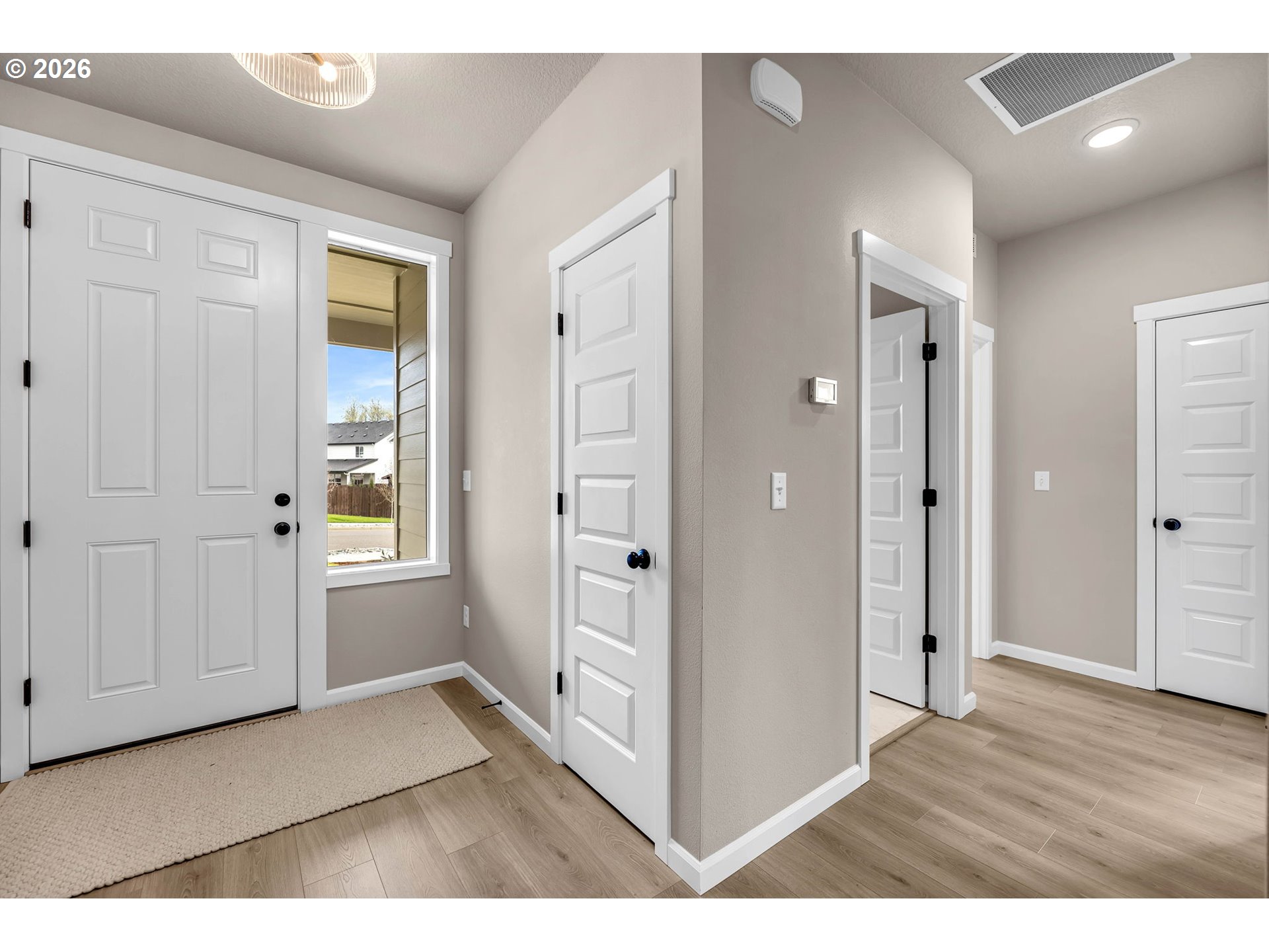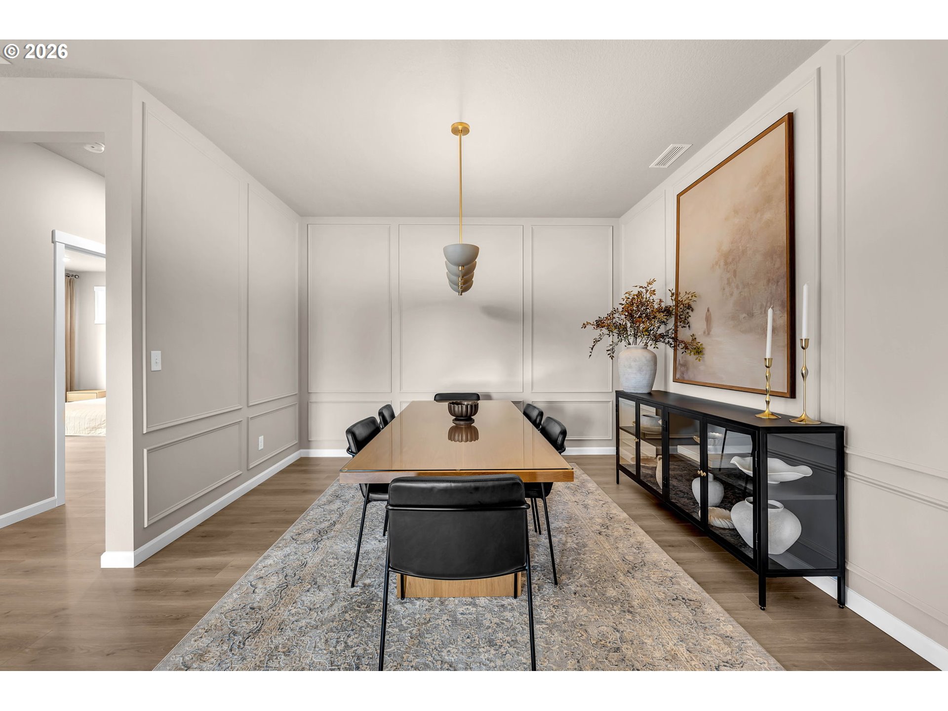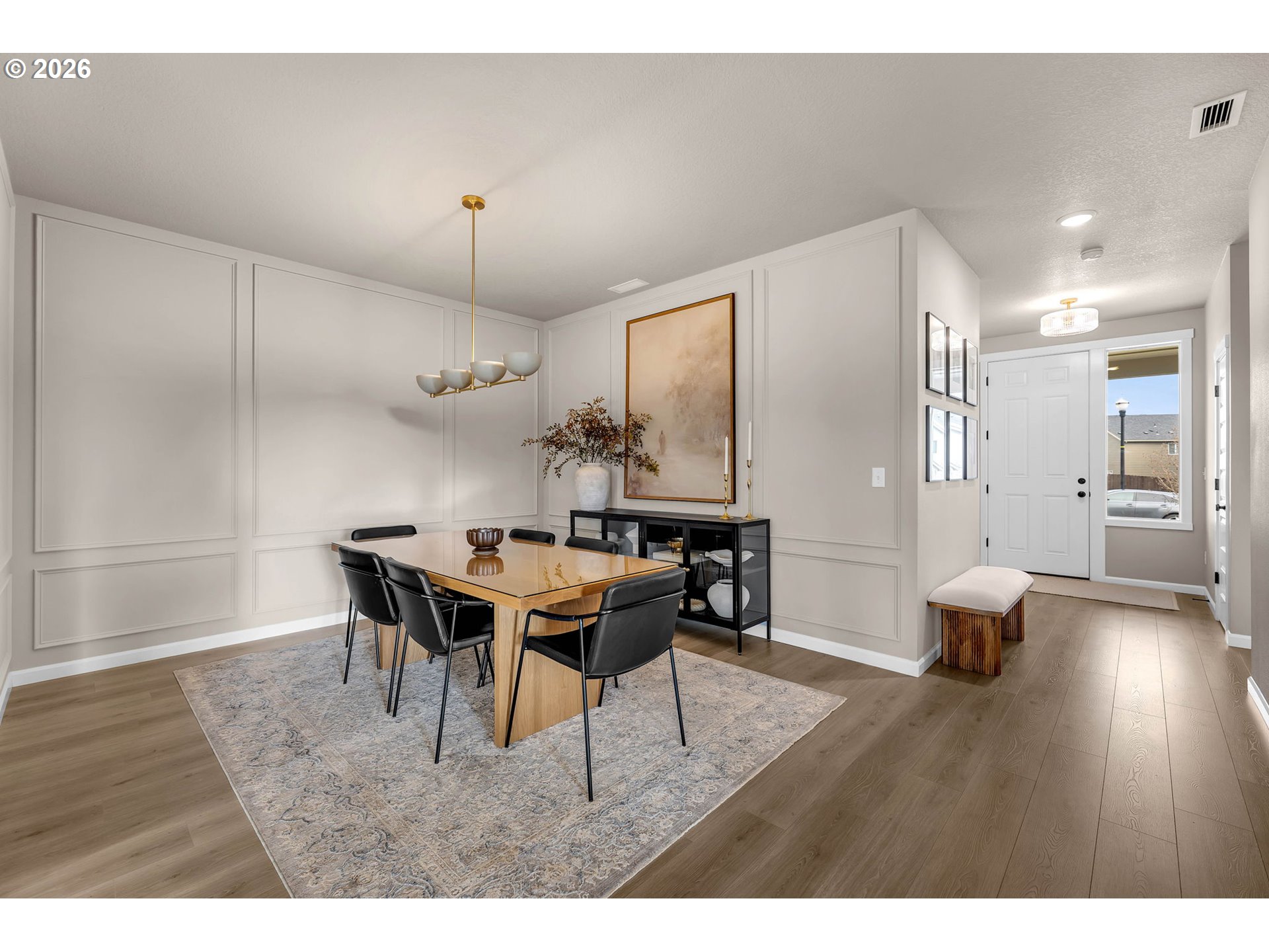 Extra-large 10,468 sqft lot. Single Level with Over-Sized Kitchen Island. Custom Added Wall Paneling in the Dining Room and Living Room. Custom Limestone Plaster Fireplace Surround and Mantel. Added Garage Cabinets for Storage. Amenities include a Covered Patio (with gas hook-up), 9ft Ceilings, Painted White Cabinets, Quartz Slab Countertops in Kitchen and Bathrooms/Laundry, Stainless Gas Appliances, Full Height 4 by 16-Inch Subway Style Backsplash, Under Cabinet and Pendant Lighting, Linear Style fireplace in the Great Room, Laundry Cabinets with Sink, Laminate Plank Flooring throughout. Tile Bathroom Floors and Master Shower. Upgraded flooring in the primary bedroom and closet. Full landscaping, Yard sprinkler system, fencing, garage door opener, and an electric car charger plug. Schedule a showing today! 3D Scan and Tour available. All installed appliances stay!