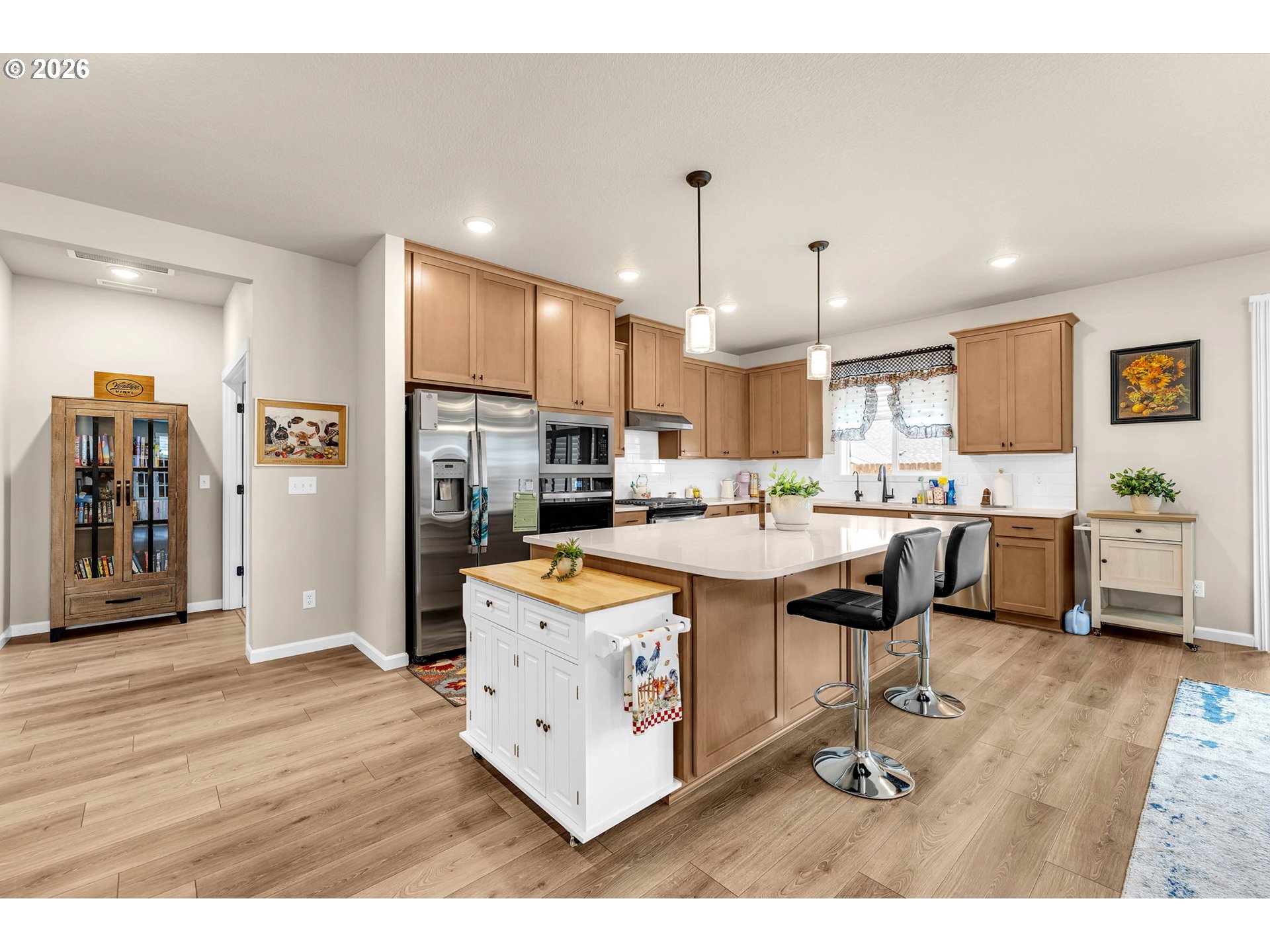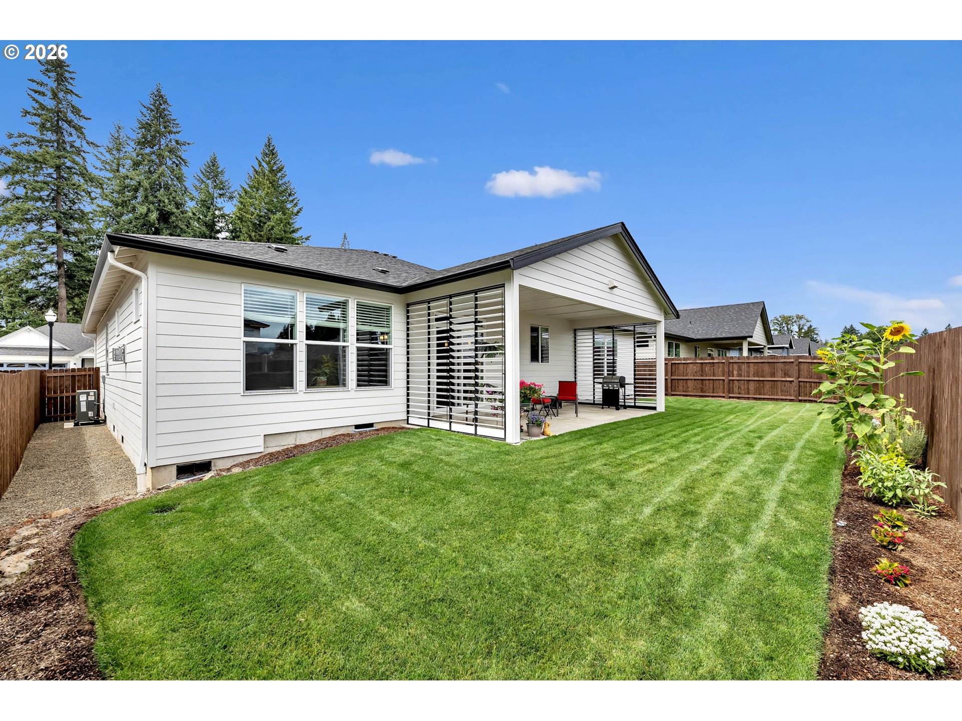 (503) 893-8874Stylish, Spacious Single-Level Living with Premium Upgrades!This beautifully designed 4-bedroom home delivers the perfect blend of efficiency, comfort, and upscale finishes, all on one level. Featuring a rare 3-car garage and an expansive covered patio, this property is built for both everyday living and effortless entertaining. Inside, enjoy 9-foot ceilings, durable laminate plank flooring, and an open-concept layout centered around a sleek linear gas fireplace. The chef’s kitchen stands out with quartz slab countertops, full-height subway tile backsplash, stained cabinetry, under-cabinet and pendant lighting, and stainless steel gas appliances with a built-in wall oven. Recent upgrades include a top-tier Culligan water softener, enhancing long-term system performance and water quality. Bathrooms feature tile flooring, while the primary suite offers a spa-inspired retreat with a tiled walk-in shower. Additional highlights include a functional laundry room with sink and cabinetry, plus a fully landscaped backyard with plantation shutters for added privacy. Low-maintenance, high-comfort living homes like this don’t sit long. Schedule your showing today.