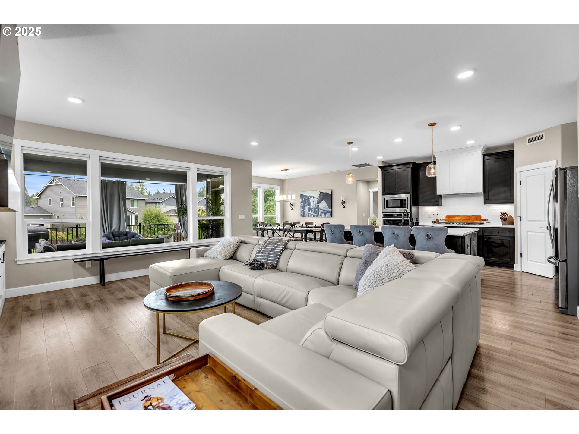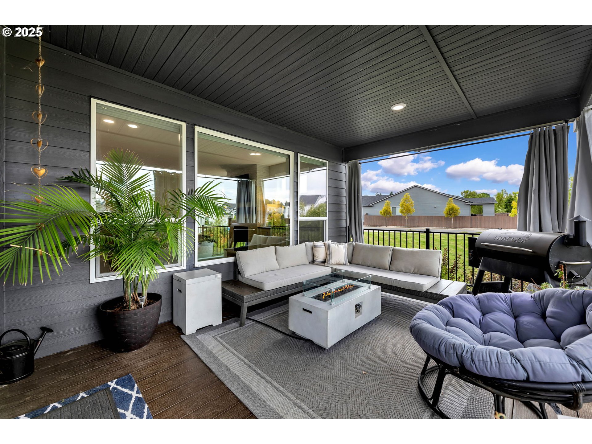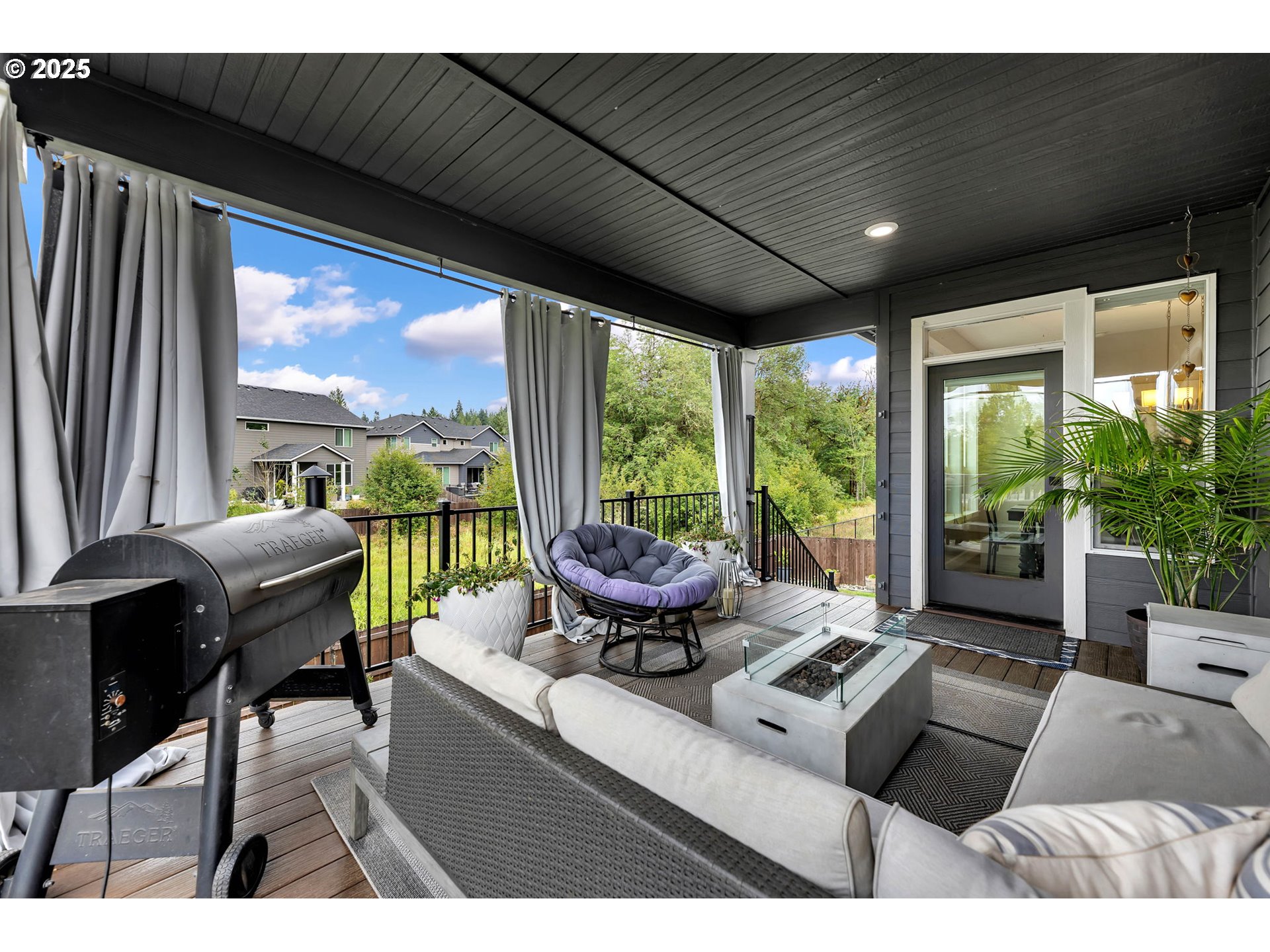Home Sweet Home! Welcome to style and elegance with this beautiful home! The open-concept great room steals the spotlight with custom built-ins, a sleek wine fridge, and a warm gas fireplace that invites you to stay awhile. The chef’s kitchen is a culinary dream—featuring a large Quartz island, full tile backsplash, pantry and premium stainless steel appliances, including a built-in oven, microwave and gas cooktop. The owner’s suite is pure luxury, with a spa-like tiled shower, dual undermount sinks, Quartz counters, and thoughtful upgrades at every turn. Outside, you'll enjoy the 17x12 covered deck and a lush landscaped, fully fenced backyard that backs to a serene greenbelt. Relax in the hot tub on the patio below or spend time gardening in the raised garden beds for enjoyment. This home delivers modern elegance, comfort, and a dash of wow factor you’ll love coming home to.