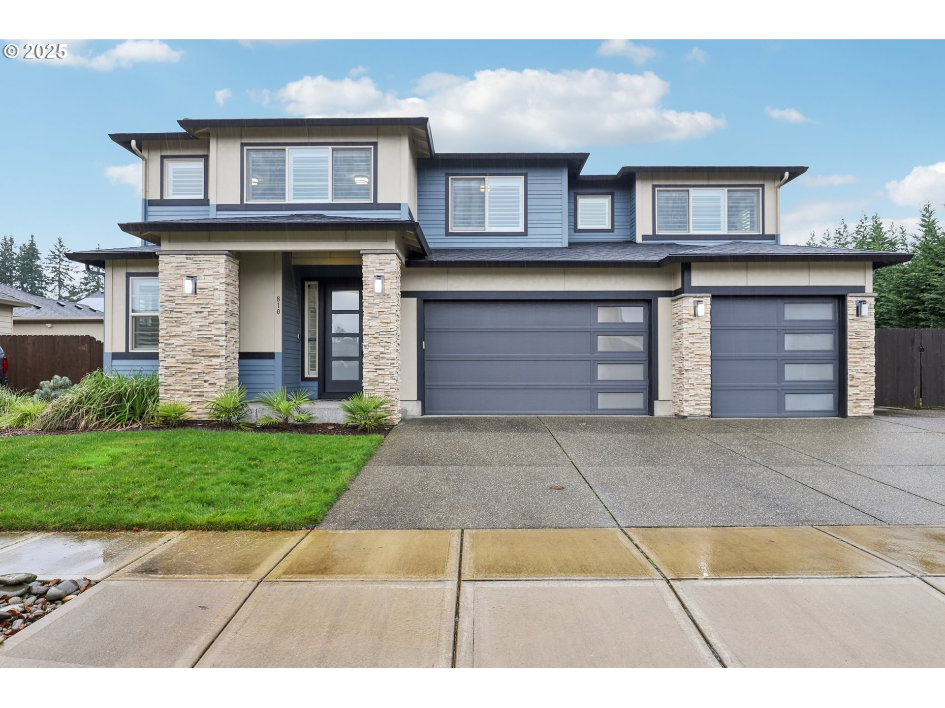 Inspired by Prairie-style architecture, this custom designed home on 9.02 serene acres offers exceptional space and flexibility with a main house AND separate guest apartment. Built in 2003 with quality craftsmanship, the main house features 6 bedrooms and 3.5 bathrooms—with one oversized bedroom that can easily divide into two (potential 7th bedroom). The main level features stained concrete floors with radiant heat, an open-concept kitchen, dining room, family room, and guest bedroom. The spacious kitchen includes a large center eat-in table, custom cherry cabinetry, 5 burner gas cooktop, double ovens, and expansive territorial views. Solid mahogany railings accent the stairwell and upstairs overlook. Tall ceilings—9'6" downstairs and 9' upstairs—combine with wide hallways and large windows (plus transoms) to create an airy, light-filled home characteristic of Prairie design. The luxurious primary suite boasts a soaking tub, double shower, and a private second-story deck with expansive, uninterrupted views. The SEPARATE 692 sq ft guest apartment includes its own bedroom, full bathroom, kitchen, and laundry hookups, attached to a 3-car garage. Outside, enjoy a fenced garden with raised beds, garden shed, play structure, hot tub, large covered patio, and 500 sq ft barn. This thoughtfully designed property offers flexible living arrangements with complete independence between spaces in a peaceful rural setting just minutes from town.