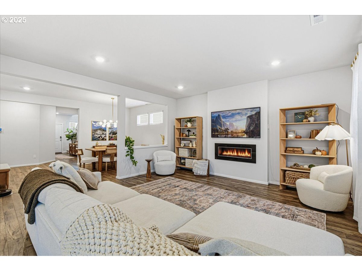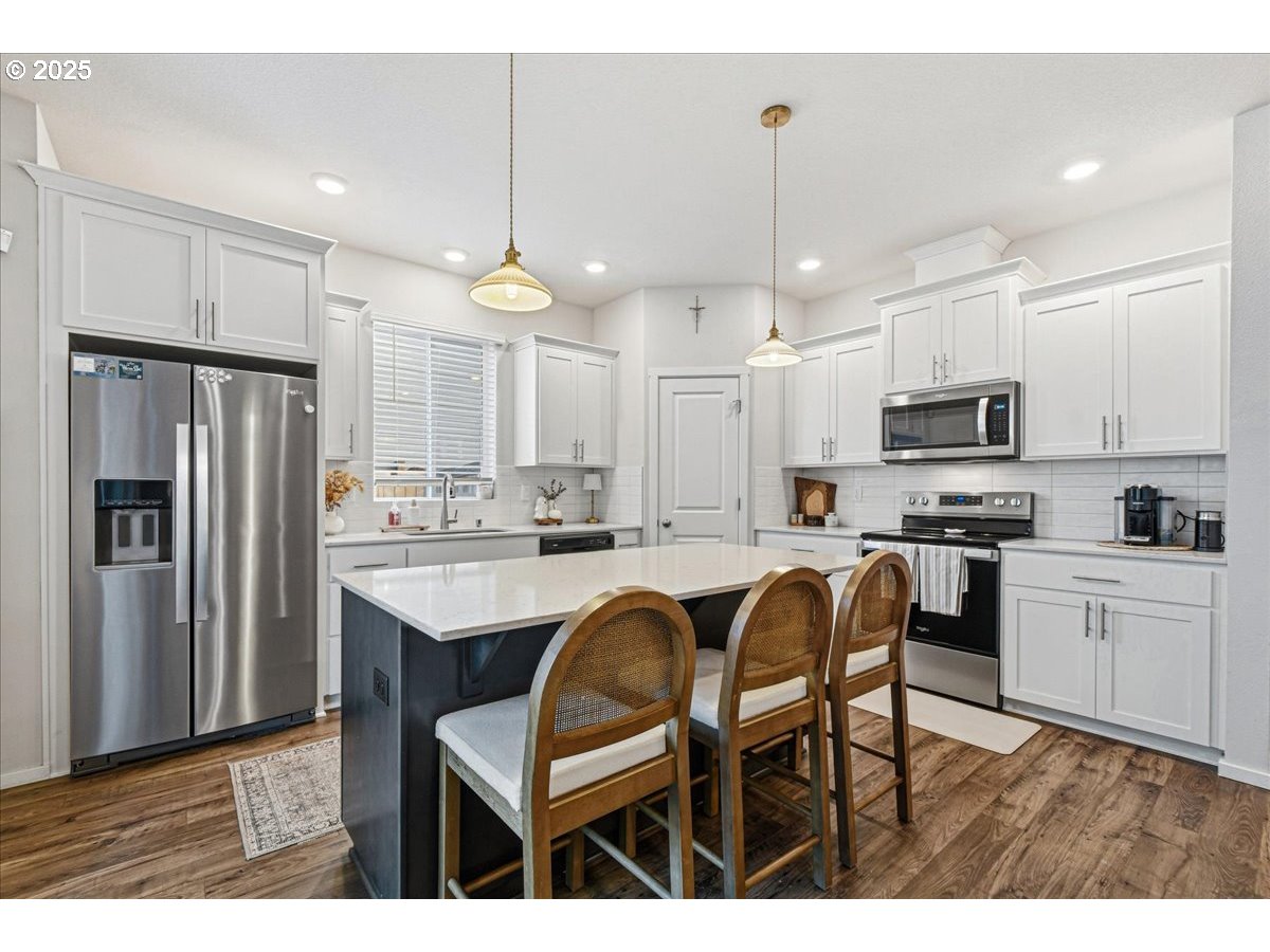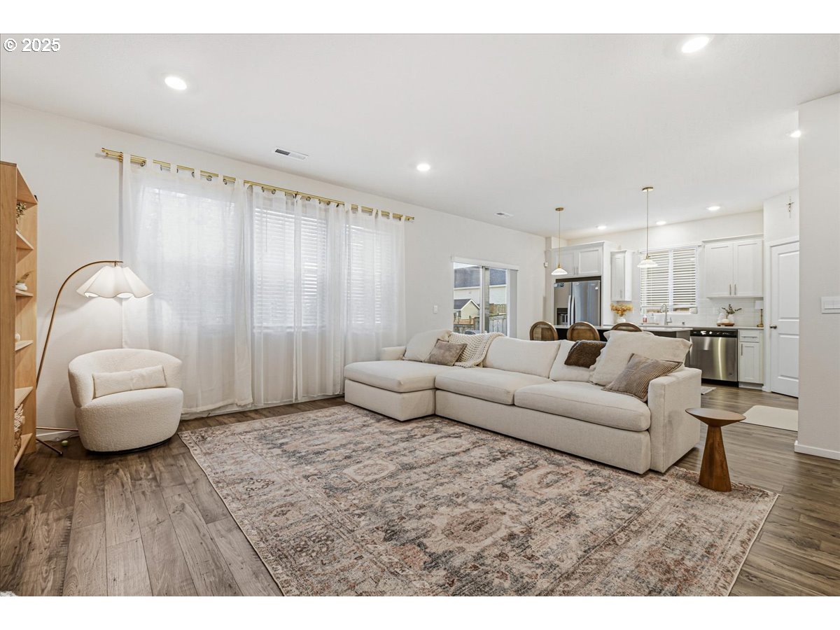 Motivated Seller! Versitle living with a Main-Level bedroom and full bath perfect for guests. This 5-bed, 3-bath home with den, in Kemper Grove backs to greenspace! This home feels and looks brand new! Features 9’ ceilings, laminate flooring, and open great room with fireplace. Kitchen includes quartz counters, stainless appliances, large island & pantry. Upstairs offers primary suite with dual vanity, walk-in closet, loft & laundry. Fenced backyard with covered patio. HOA includes front landscaping, parks & trails. Convenient Ridgefield location and I-5.