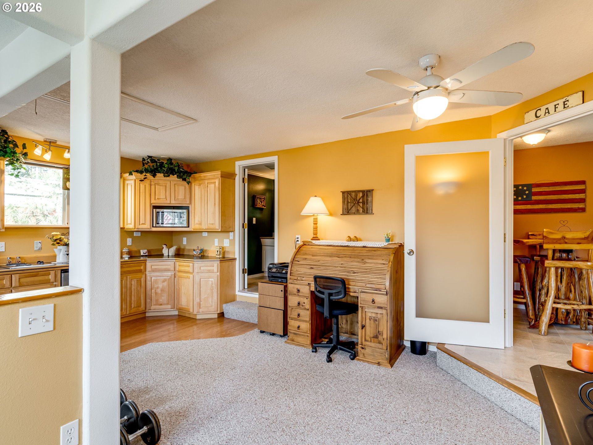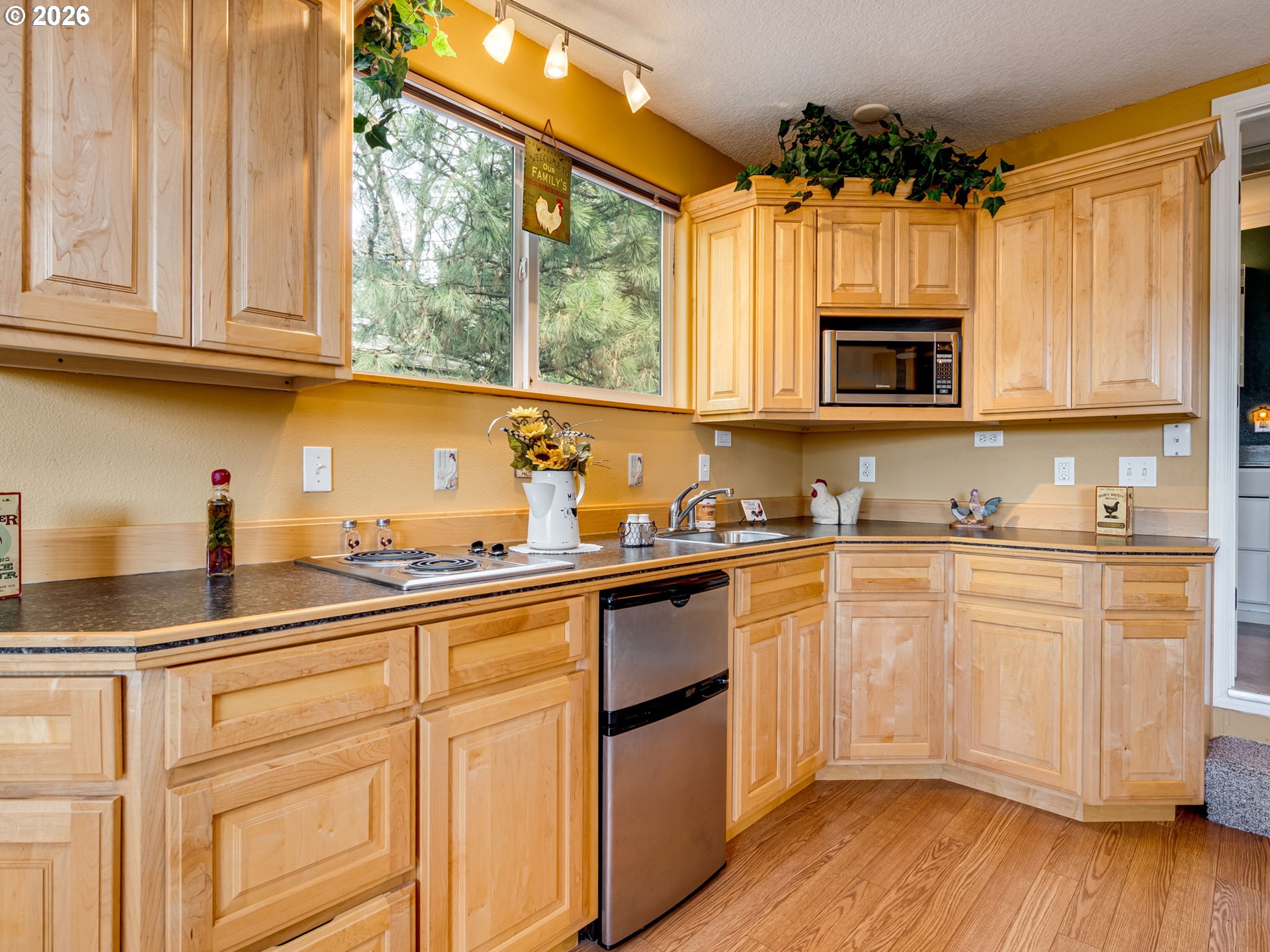 (503) 893-8874This completely updated 1970's ranch sits on a spacious half-acre lot and offers a versatile layout with numerous improvements. Key updates include a 2019 roof with transferable warranty, vinyl windows, updated interior and exterior paint and air conditioning for year-round comfort. The kitchen features butcher block countertops, updated cabinetry, an eating bar off the living area, and an L-shaped counter providing additional seating and storage. The main bathroom includes a tiled tub surround and a custom vanity with granite counters. The primary bedroom offers an extra-wide closet for added convenience. An attached studio ADU with a gas fireplace and separate exterior entrance provides flexible options for guests, AirBNB income or additional living space. The property includes ample parking with an extra-wide gate allowing for vehicle access and parking behind the fence, along with a covered carport suitable for an RV or boat. Outdoor features include a large covered deck, fully fenced yard, garden shed, raised garden beds with mature blueberry and strawberry plants and multiple fruit trees all supported by sprinkler and drip systems. Zoned R6, this property offers future potential to divide with a separate sewer connection already extended to the back yard, allowing for the possibility of a detached ADU or additional homes or shop. Situated on a cul-de-sac street with no HOA. Located just south of Royal Oaks Country Club and within walking distance to the newly renovated Oakbrook Park featuring two play structures, walking trails, pickleball and tennis courts and just a short bike ride to Beaver Marsh, a 32-acre natural trails site with seasonal creeks while also providing convenient access to major commuter routes and nearby hospitals. Open Houses this weekend come by and check it out!! Friday 4/17 & Sunday 4/19 4pm to 6pm and Saturday 4/18 3pm to 5pm