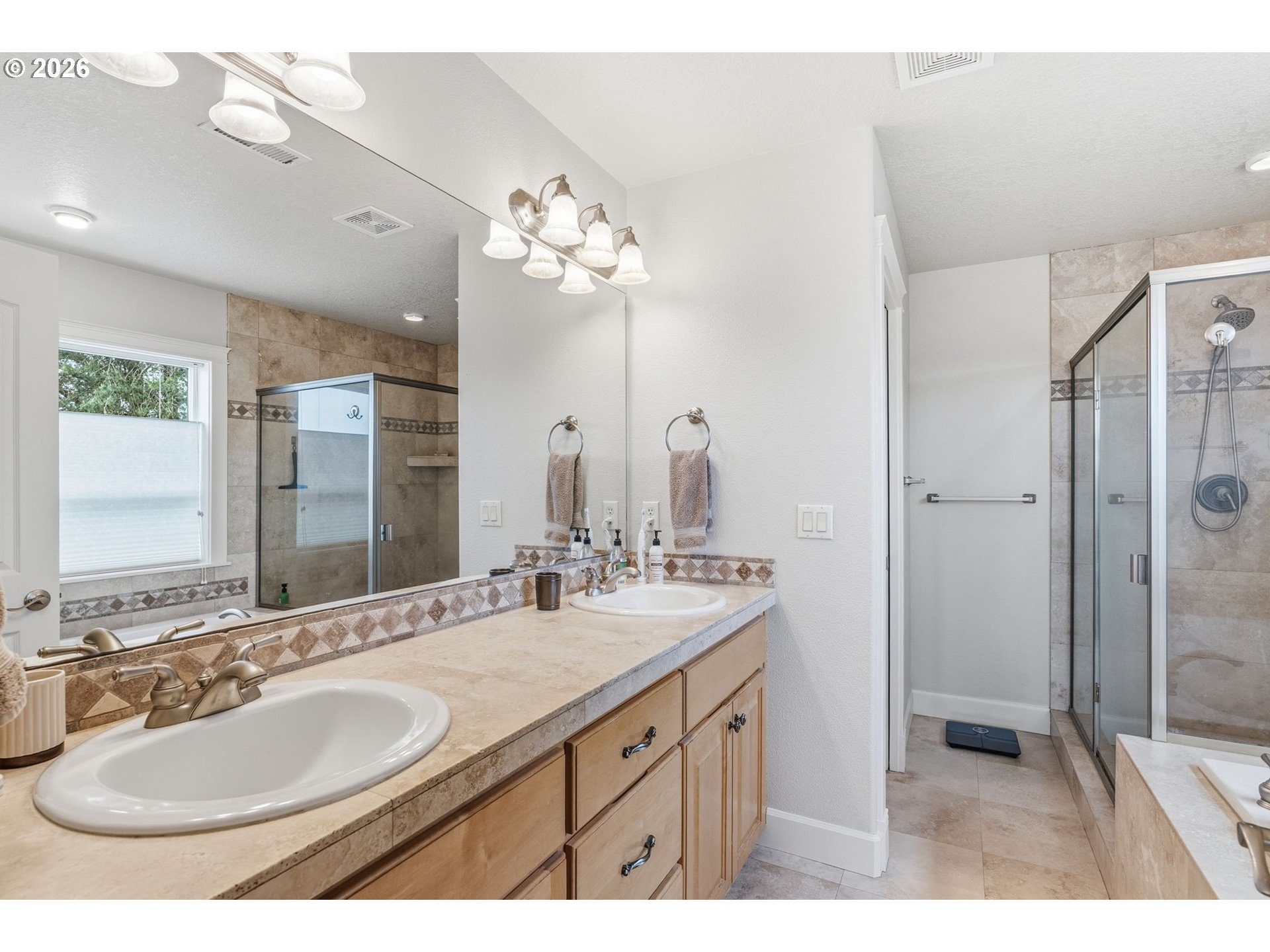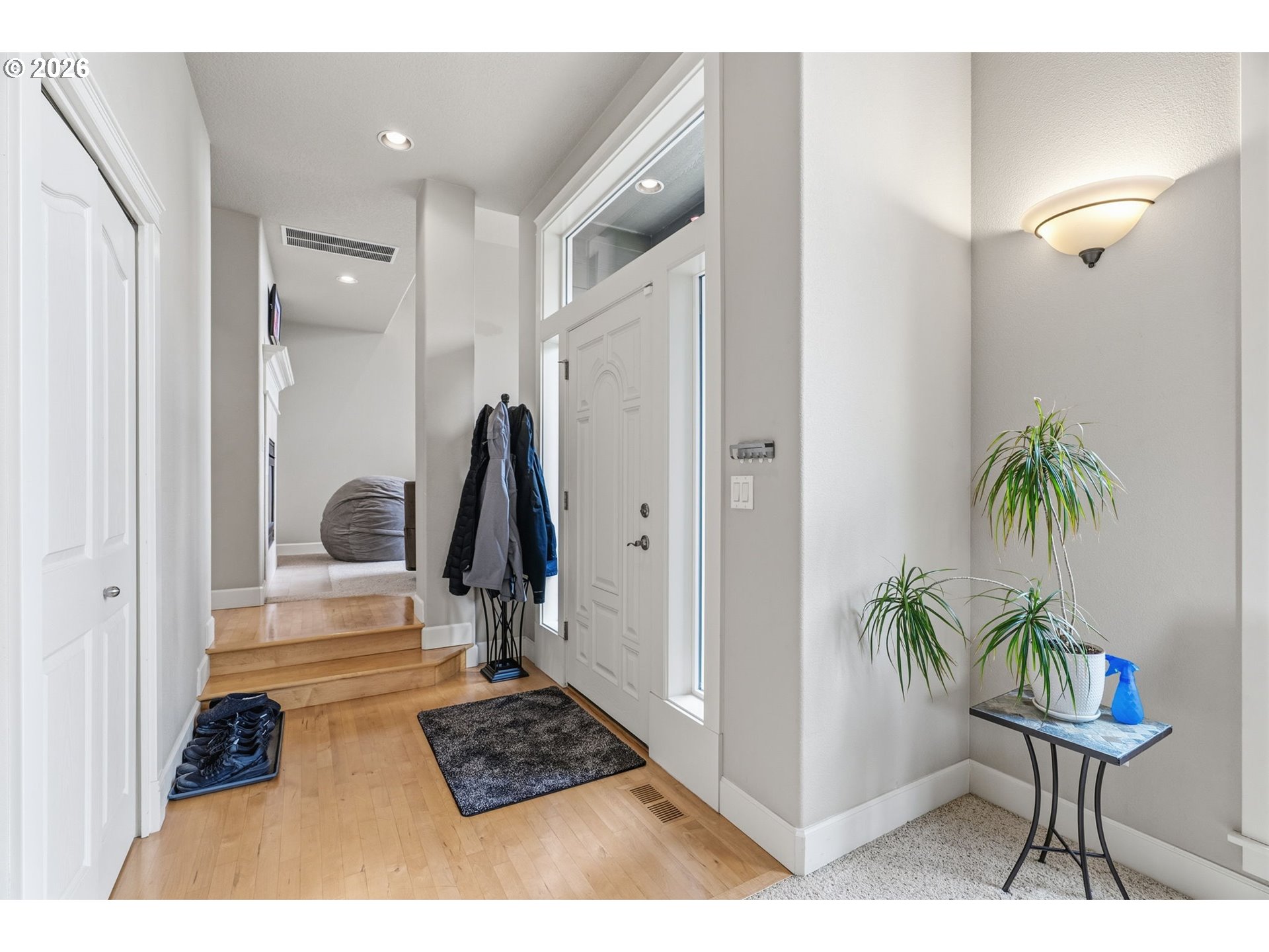 This Northwest Contemporary home makes a striking first impression with its commanding curb appeal. The popular Felida area of Vancouver offers a peaceful, country-like setting while remaining conveniently close to everyday amenities. Inside, vaulted ceilings and expansive windows showcase stunning territorial vistas, including a seasonal lake view. Enjoy easy neighborhood access to the Kline Line Trail. Hardwood floors and thoughtful updates include a new roof in 2024. The spacious kitchen features a large cook island and sunny eating nook, flowing seamlessly into the cozy great room. An inviting living room with a double-sided fireplace connects with the dining room. The living room and versatile office/den share a balcony. An oversized covered deck feels private and relaxing, perfect for year-round enjoyment. The lower level offers a generous storage room to keep everything organized, plus a dedicated nook inside the garage for a workspace or additional storage. Ideally located near top-rated schools, parks, local pubs, and bistros, with convenient access to I-5 and I-205.