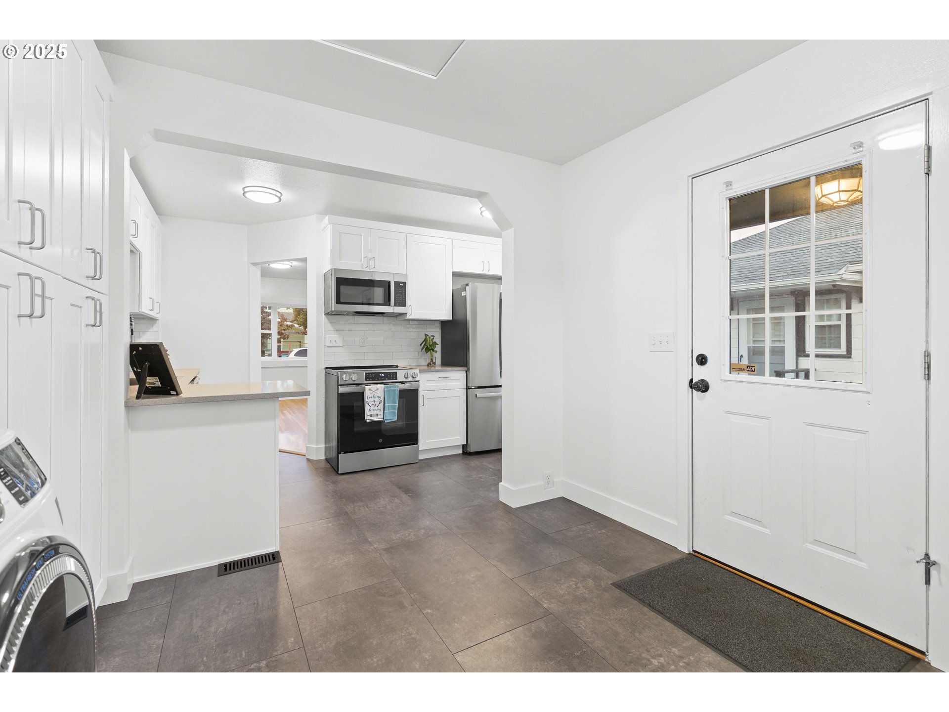 Move-In Ready Perfection Step inside and leave your to-do list at the door. This stunning home has been beautifully updated. Featuring a gorgeous remodeled kitchen with new tile floor, elegant stone counters, and a generous supply of soft-close cabinets. All major appliances are sparkling new, including a full suite of stainless steel appliances, a refrigerator, and a brand-new front-load washer and dryer set—all included! The bathroom continues the theme of luxury with a high end tile shower.The mid century charm is retained with the newly refinished hardwood floors, adorable window seat & built in storage throughout. Bedrooms are comfortably sized, with the primary suite offering a large walk-in closet. Outside, enjoy the fully fenced backyard complete with a garden tool shed. Hobbyists will appreciate the flexibility of the detached garage, featuring pull-down tables for projects, plus additional great project & storage spaces in the basement. This home is situated in a desirable neighborhood with an excellent Walk & Bike Score of 78. Commuting is easy, with quick access to freeways and Clark College is just 5 minutes away. Best of all, major maintenance is already taken care of: Roof is 9 years young, exterior has been freshly painted and the home features a super high-efficiency furnace. Brand new trex front deck with decorative wire fence makes for great curb appeal. Simply move in and unpack! Dont wait on this one! Come see it at the Open House SUNDAY 12/14 1 TO 3PM. Home for the holidays!!
