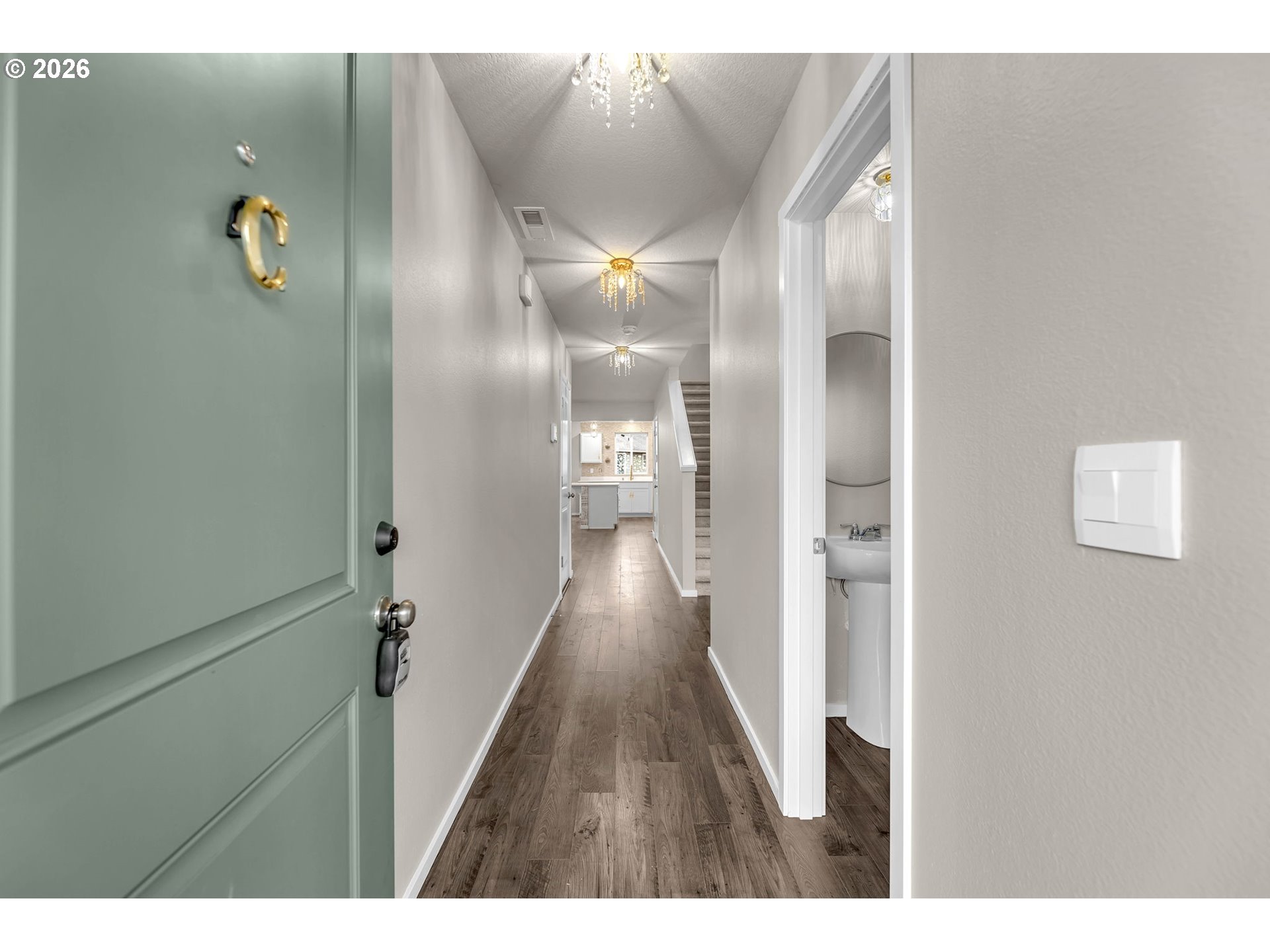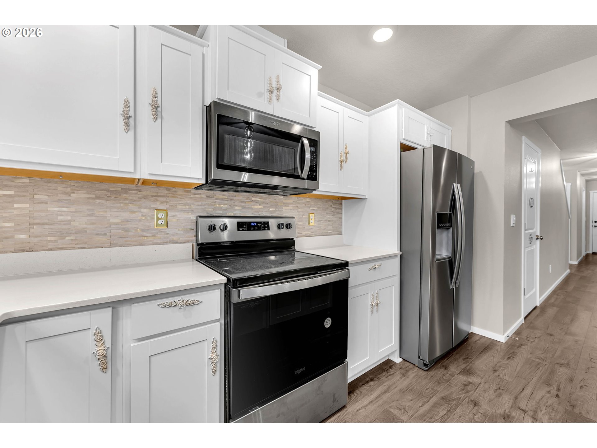 Like new, 3 bed 2.5 bathroom home in quiet Kemper Grove Neighborhood. This 2023 built home has luxury laminate flooring that leads to an open concept living space. The kitchen boasts quartz countertops, fully tiled backsplash and stainless steel appliances including fridge. All three bedrooms are located upstairs. The spacious master bedroom has an adjacent ensuite bathroom. Laundry room is conveniently located in upstairs hall. High efficiency HVAC system with smart home technology thermostat. Completely move-in ready. Fully fenced backyard. Minutes drive from downtown Ridgefield or I5 freeway.