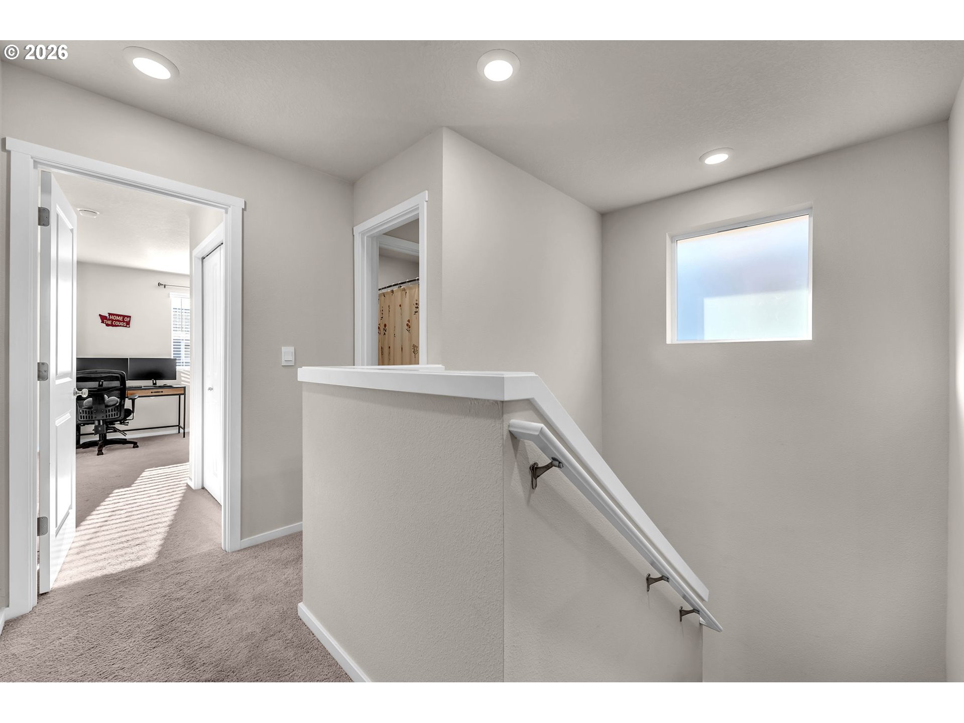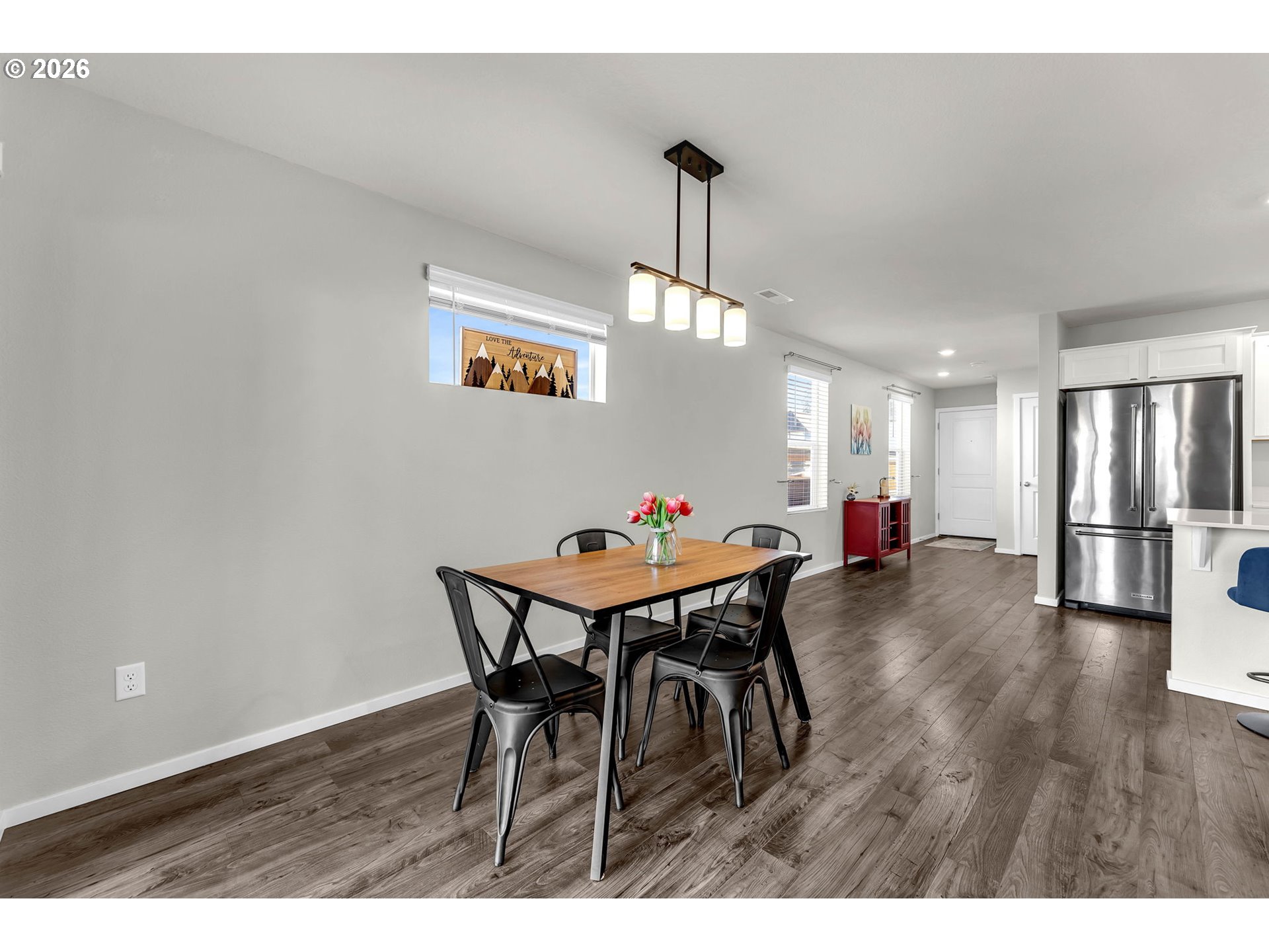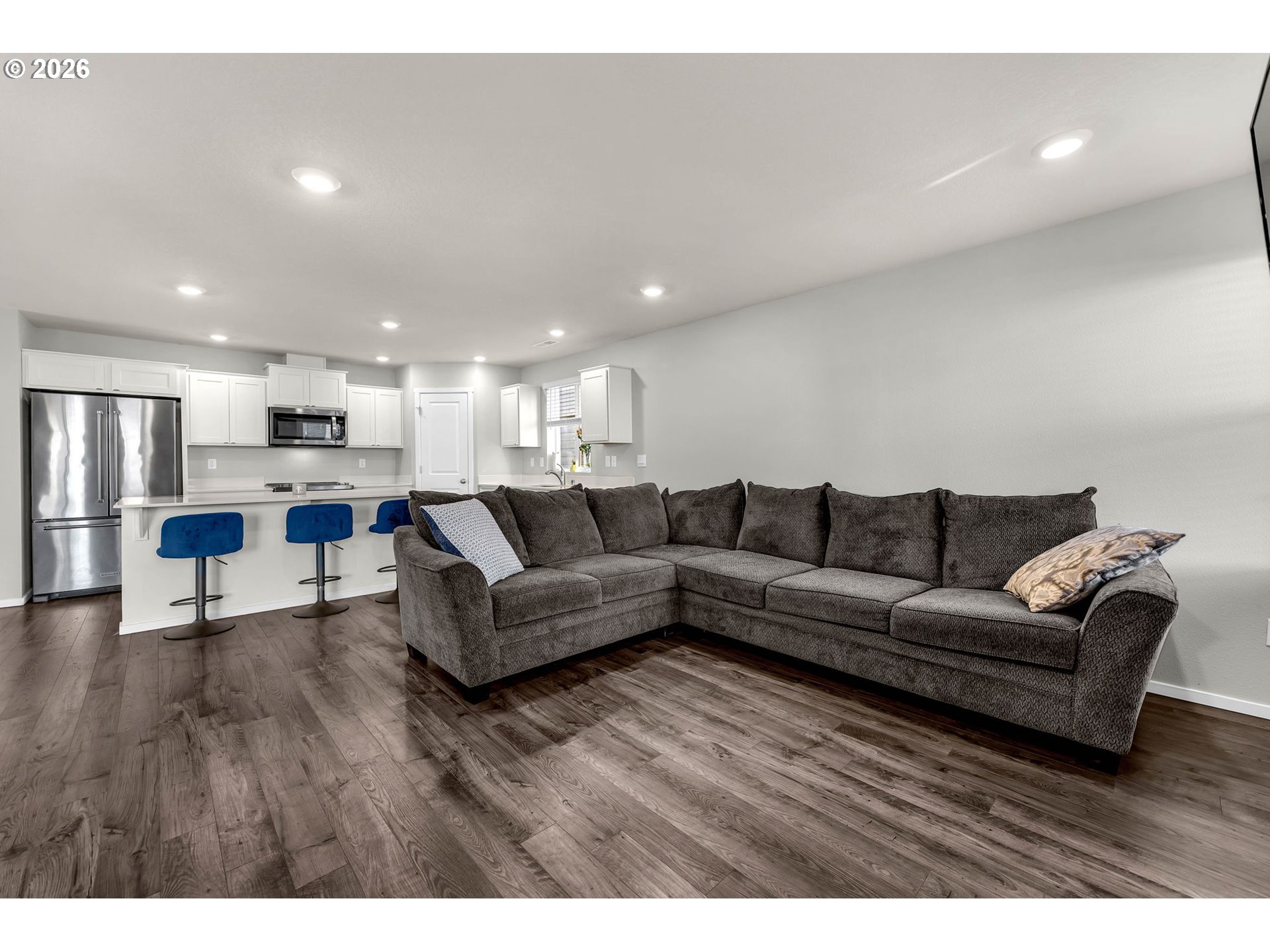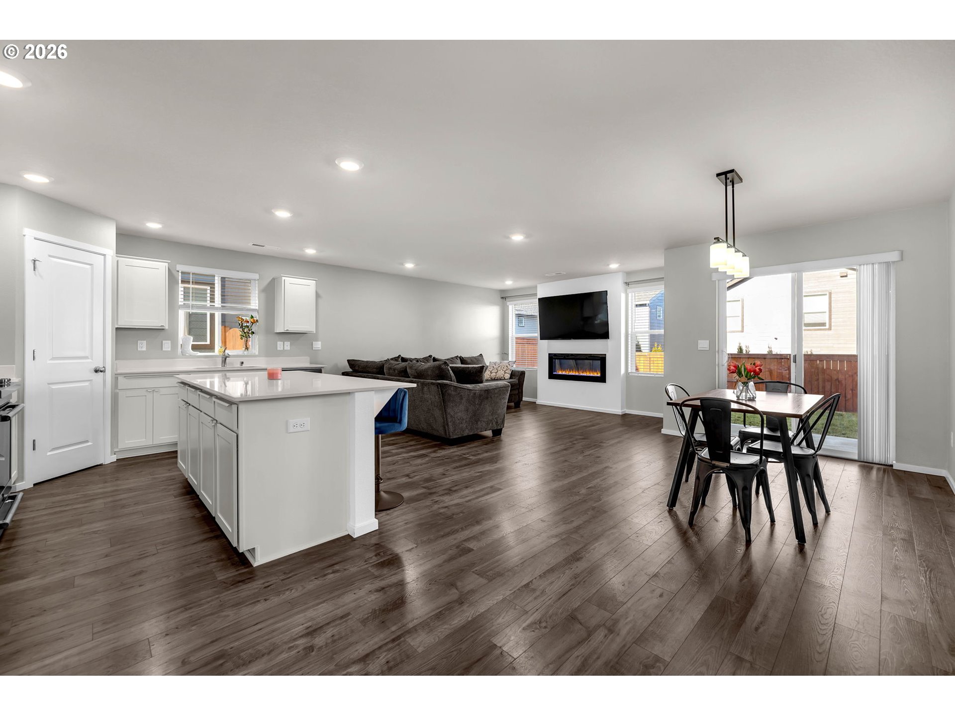 Welcome home to this beautiful 4-bedroom, 2.5-bath property in the desirable Ridgefield community, perfectly located just minutes from the freeway, dining, and shopping. The main level features engineered hardwood floors and an open floor plan ideal for modern living and entertaining. The spacious living room offers a cozy fireplace and flows seamlessly into the dining area with a slider leading to the backyard patio. The kitchen is a standout with stainless steel appliances, quartz countertops, a large island with eat bar, and a corner pantry for plenty of storage.Upstairs, you’ll find a versatile large 4th bedroom or bonus room, a loft space, and carpeted bedrooms for added comfort. The primary suite includes a walk-in shower and a relaxing retreat feel. The laundry room is conveniently located upstairs and features engineered hardwood floors.Outside, enjoy a fully fenced backyard with a large patio, perfect for summer BBQs or quiet evenings. Additional highlights include a 2-car attached garage and a location that blends comfort with convenience.This home checks all the boxes—don’t miss your chance to make it yours!