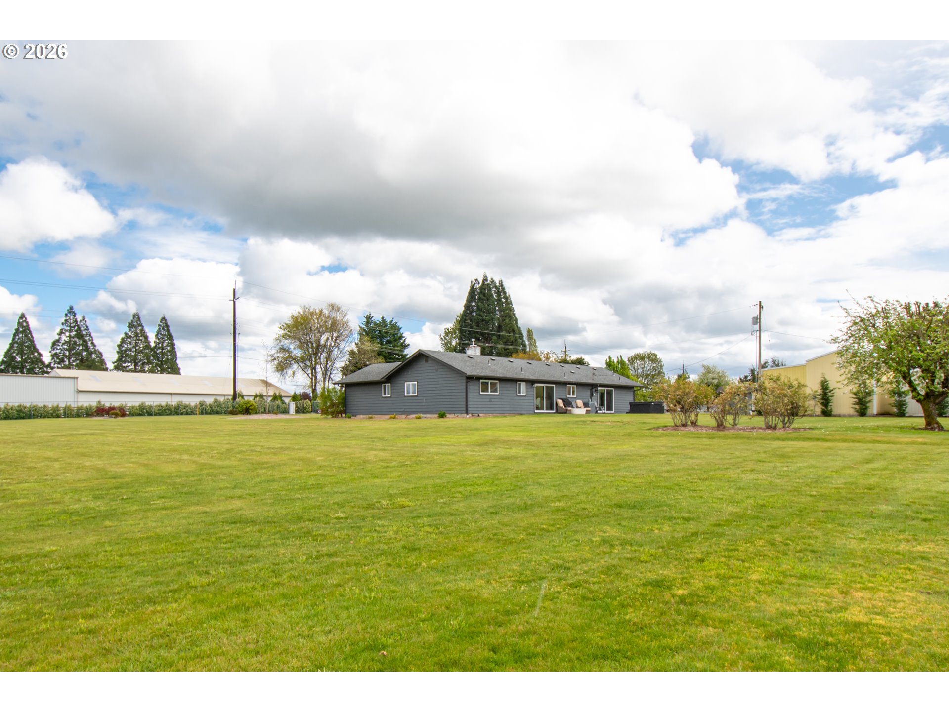 Nestled on a beautifully flat and fully usable two-acre lot, this stunning single-level home offers the perfect combination of comfort, space, and convenience. Recently and thoughtfully remodeled from top to bottom, the home features three spacious bedrooms and three full bathrooms, each updated with modern finishes and a clean, timeless design. The open-concept living area is filled with natural light and flows seamlessly into a stylish kitchen complete with quartz countertops and custom cabinetry—perfect for entertaining or relaxing evenings at home.Backing directly onto the golf course, the property provides sweeping views and a peaceful setting, all while being just three minutes from freeway access, making your commute or quick trips to town effortless. Outside, the flat two-acre yard offers endless possibilities—whether you're dreaming of a garden, a play area, or simply wide-open space to enjoy. Two large detached shops on the property provide incredible flexibility for hobbies or storage.Move-in ready and set in a desirable location, this rare offering blends rural tranquility with modern luxury and accessibility, making it the ideal place to call home.