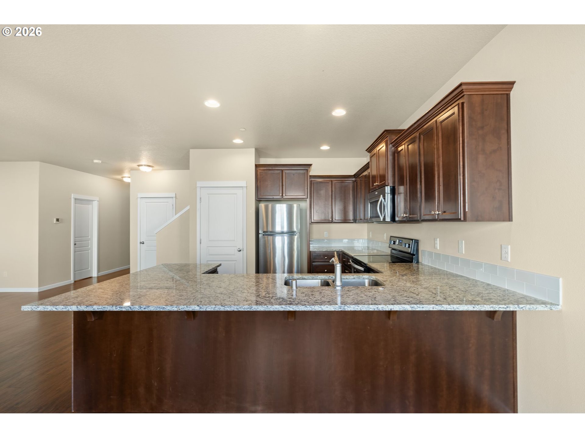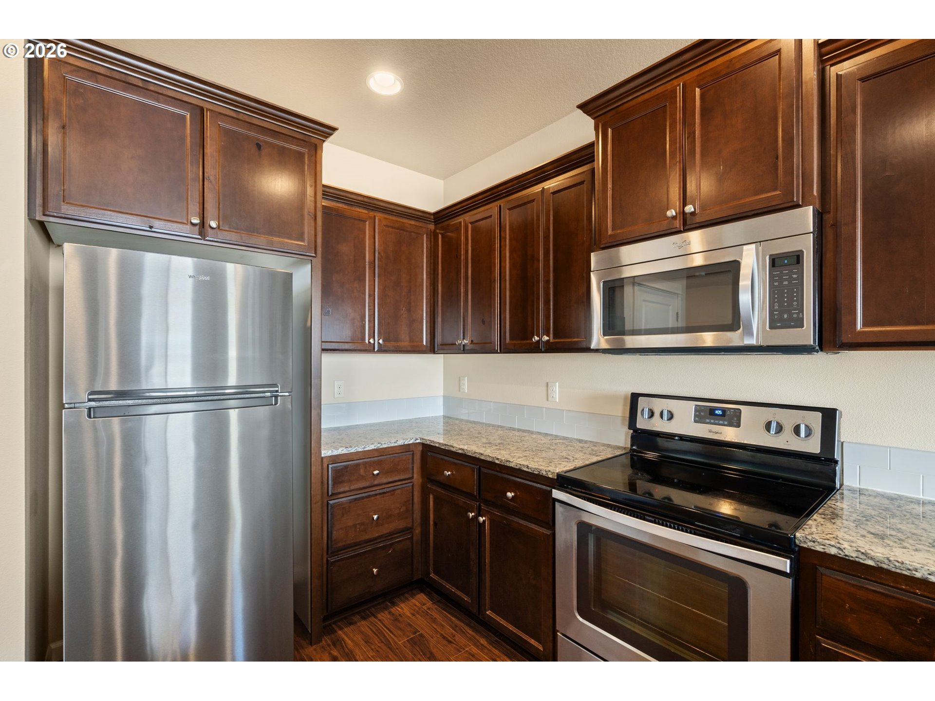 Dishwasher, FreeStandingRefrigerator, Granite, Island, Microwave, Pantry, StainlessSteelAppliance