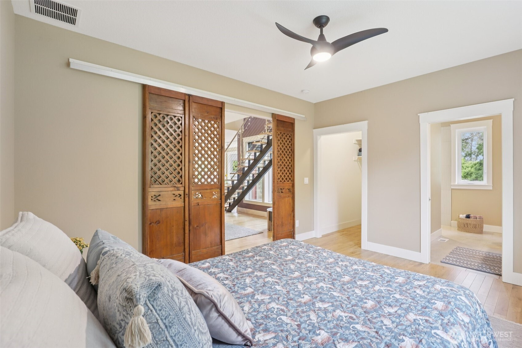 Welcome to this stunning custom-built retreat perfectly situated on a beautiful 1/3-acre lot in the highly sought-after Dubois Park community. Designed w/ comfort, efficiency, & timeless style in mind, this home gives you solar power, geothermal heating & cooling, a Heat Recovery Ventilation syst, & enhanced insulation—for year-round comfort & energy savings. The moment you step inside, you’re greeted by a light-filled, open-concept home w/ expansive windows for natural light & serene views. The spacious LR flows effortlessly into your kitchen creating the perfect setting for entertaining. The main-level prim suite is a peaceful escape, complete w/ a beautifully designed WI shower & WI closet. Upstairs, you’ll find 2 generously sized bdrms & a well-appointed full bath, along w/ a versatile loft space & a cozy nook—ideal for a home office, reading retreat, or creative corner. Rich hardwood floors run throughout both levels, adding warmth & elegance to every room. Outside discover your own private sanctuary—landscaped w/ a tranquil water feature, cust fencing, privacy screens, decorative iron arches, w/ a delightful variety of fruit & nut trees. Your new composite deck is perfect for relaxing or entertaining outside & your oversized two-car garage offers extra space for a workshop or storage as well. All of this, just a short stroll to the neighborhood park—this is a rare opportunity to own a truly special home that blends thoughtful design, modern efficiency, & natural beauty.