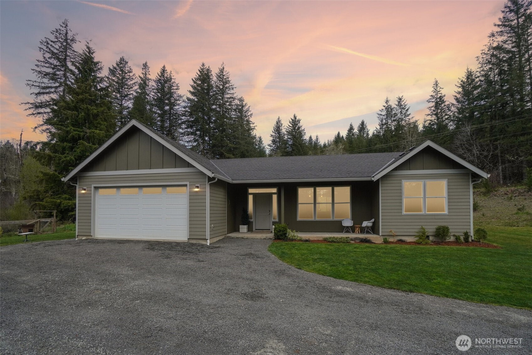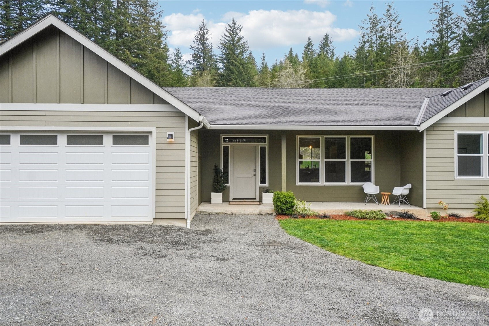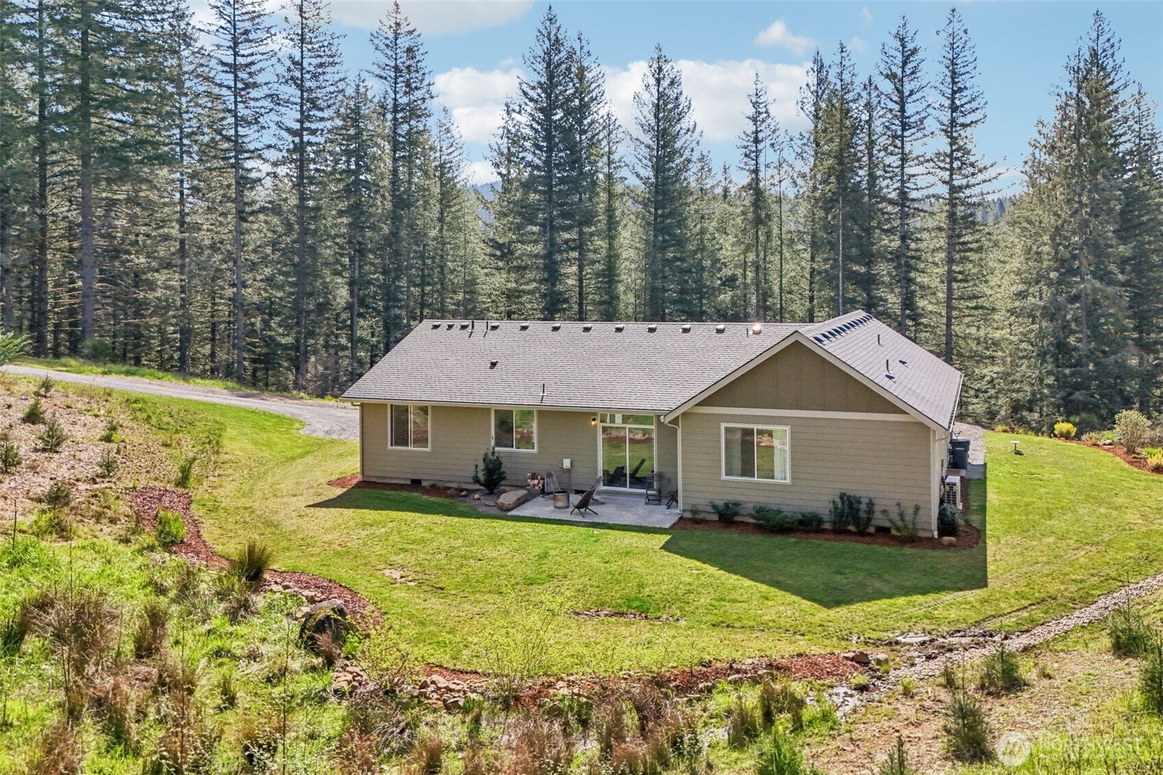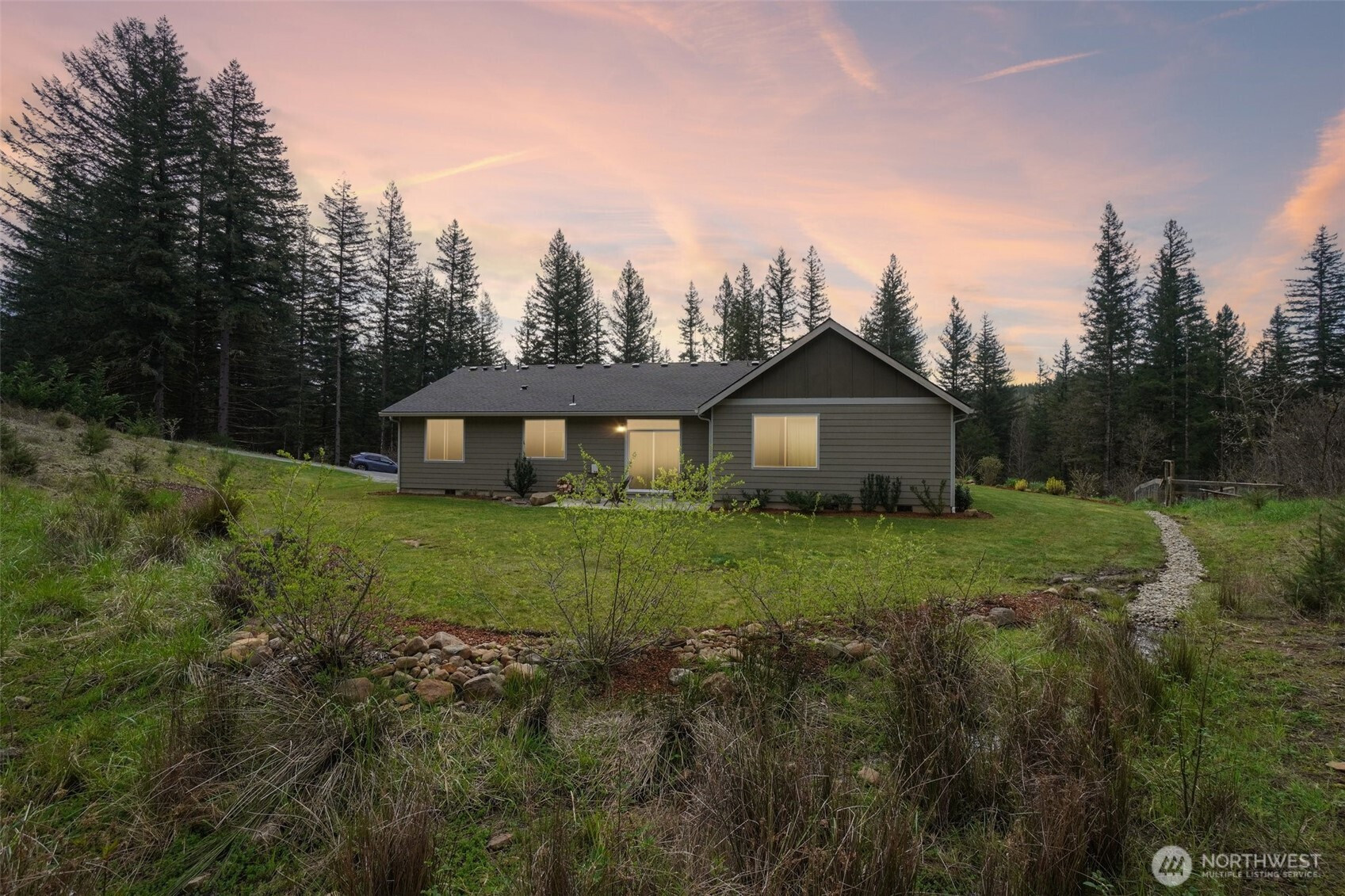 A peaceful, park-like setting, this beautiful 1-level home on 3.42 acres offers the perfect blend of comfort, privacy, and natural beauty with coveted East Fork Lewis River frontage. Right down road from Moulton Falls and Hantwick and Sunset Falls trail heads. Spanning 1,714 sq ft, this 3-bedroom, 2-bath home features a vaulted, open-concept main living area that feels bright and spacious. The thoughtful layout places the primary suite on one end of the home for added privacy, with two additional bedrooms on the opposite side. The kitchen is designed for both function and style, complete with an island, stainless steel appliances, tile backsplash, and abundant cabinet space. The dining area opens to a back patio through a sliding glass door—perfect for enjoying the serene surroundings and sounds of the river. Energy-efficient mini splits provide year-round comfort with both heating and cooling. Whether you're relaxing at home or exploring nearby outdoor recreation, this property offers a rare opportunity to enjoy riverfront living in a truly tranquil setting.