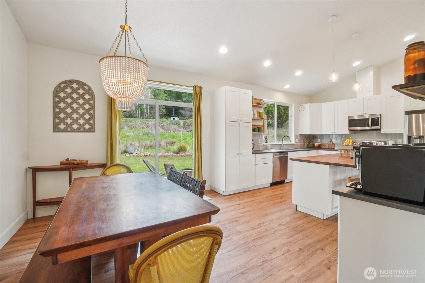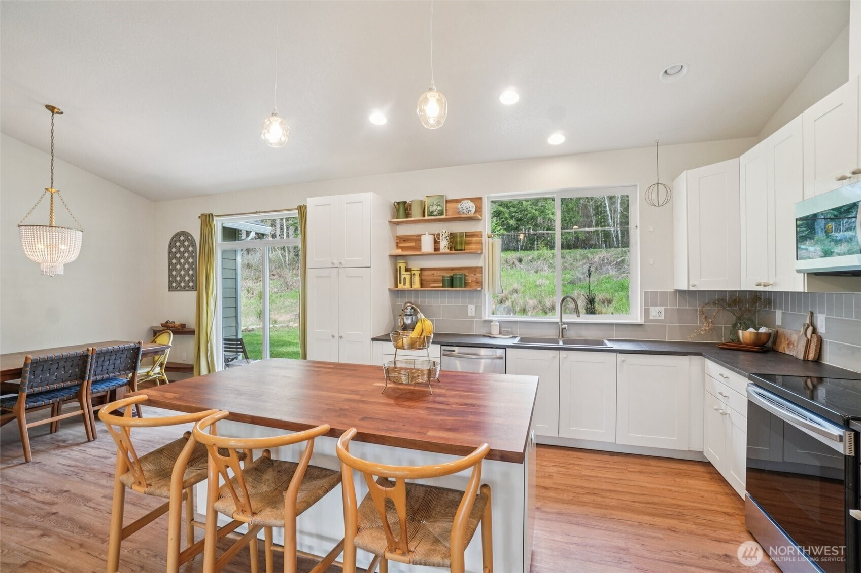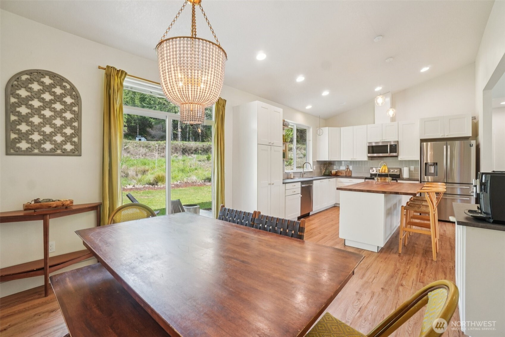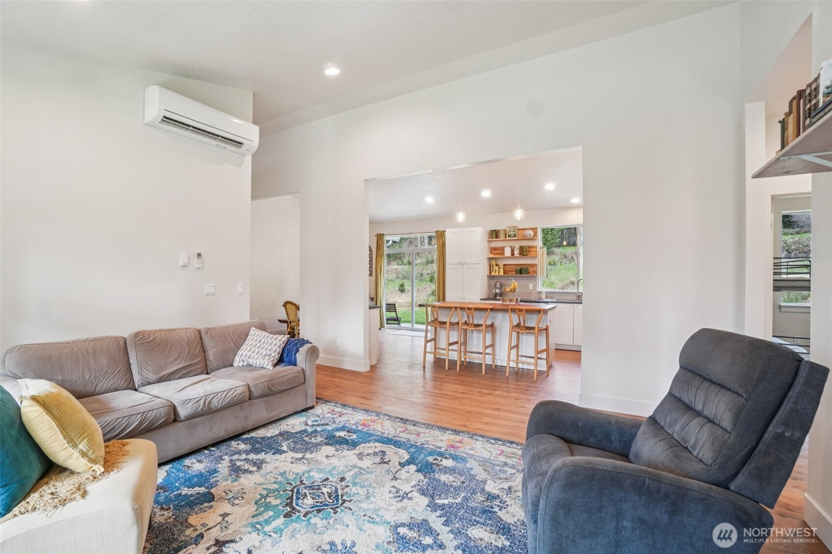 A peaceful, park-like setting, this beautiful 1-level home on 3.42 acres offers the perfect blend of comfort, privacy, and natural beauty with coveted East Fork Lewis River frontage. Right down road from Moulton Falls and Hantwick and Sunset Falls trail heads. Spanning 1,714 sq ft, this 3-bedroom, 2-bath home features a vaulted, open-concept main living area that feels bright and spacious. The thoughtful layout places the primary suite on one end of the home for added privacy, with two additional bedrooms on the opposite side. The kitchen is designed for both function and style, complete with an island, stainless steel appliances, tile backsplash, and abundant cabinet space. The dining area opens to a back patio through a sliding glass door—perfect for enjoying the serene surroundings and sounds of the river. Energy-efficient mini splits provide year-round comfort with both heating and cooling. Whether you're relaxing at home or exploring nearby outdoor recreation, this property offers a rare opportunity to enjoy riverfront living in a truly tranquil setting.