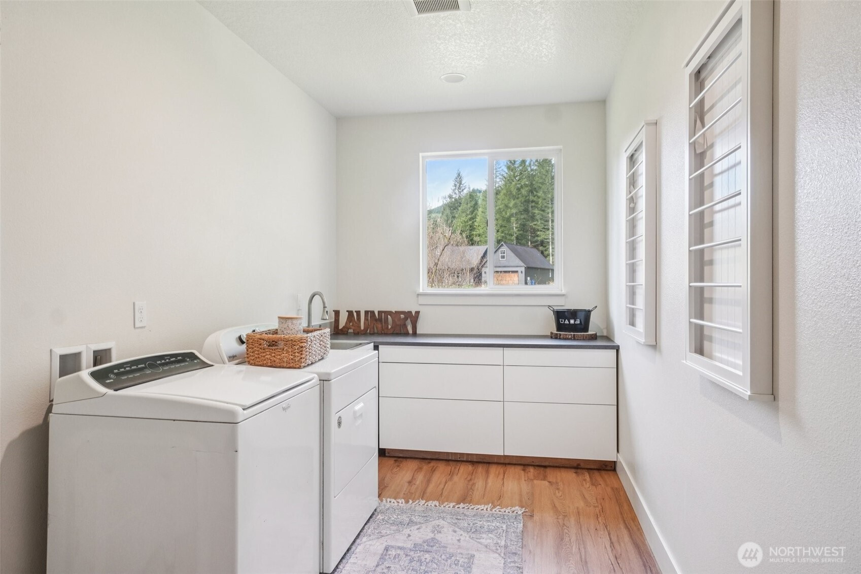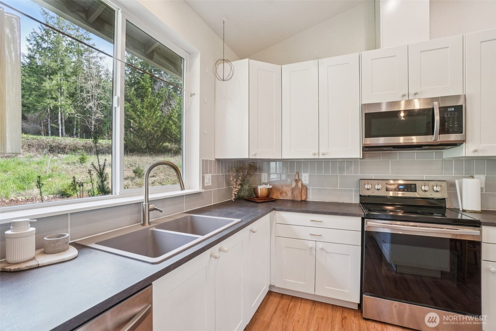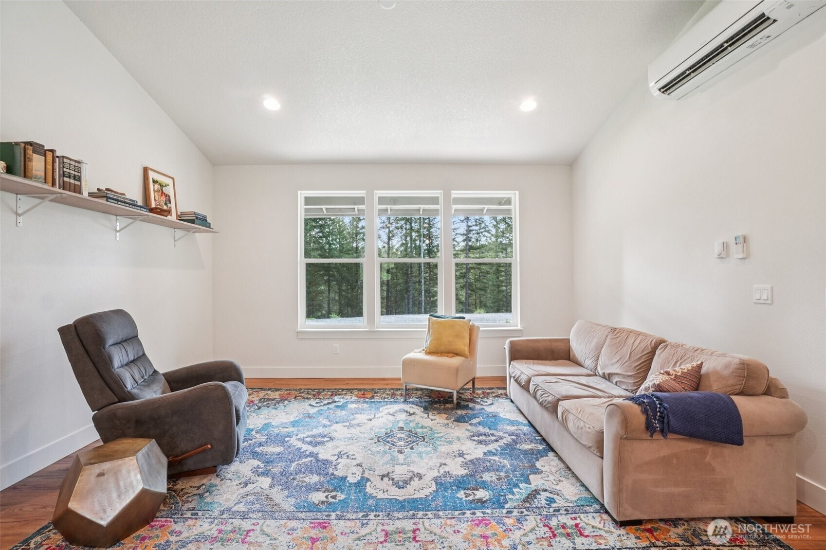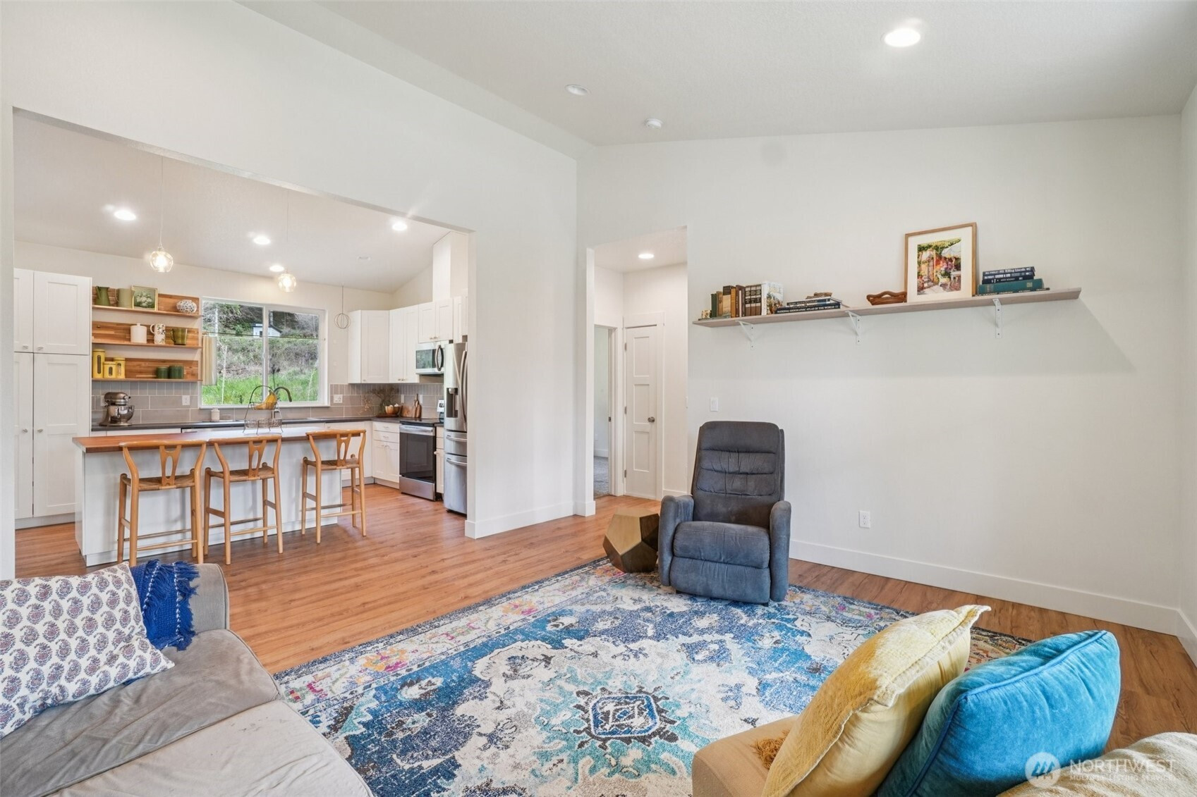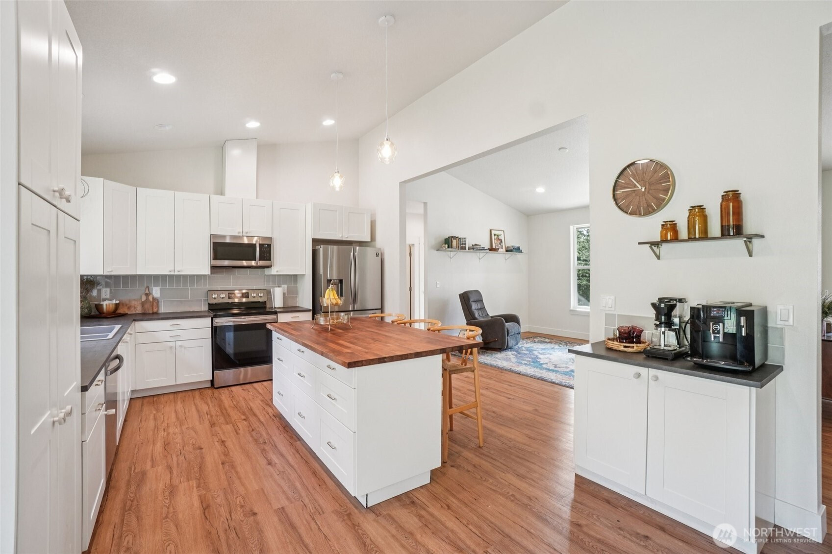 A peaceful, park-like setting, this beautiful 1-level home on 3.42 acres offers the perfect blend of comfort, privacy, and natural beauty with coveted East Fork Lewis River frontage. Right down road from Moulton Falls and Hantwick and Sunset Falls trail heads. Spanning 1,714 sq ft, this 3-bedroom, 2-bath home features a vaulted, open-concept main living area that feels bright and spacious. The thoughtful layout places the primary suite on one end of the home for added privacy, with two additional bedrooms on the opposite side. The kitchen is designed for both function and style, complete with an island, stainless steel appliances, tile backsplash, and abundant cabinet space. The dining area opens to a back patio through a sliding glass door—perfect for enjoying the serene surroundings and sounds of the river. Energy-efficient mini splits provide year-round comfort with both heating and cooling. Whether you're relaxing at home or exploring nearby outdoor recreation, this property offers a rare opportunity to enjoy riverfront living in a truly tranquil setting.