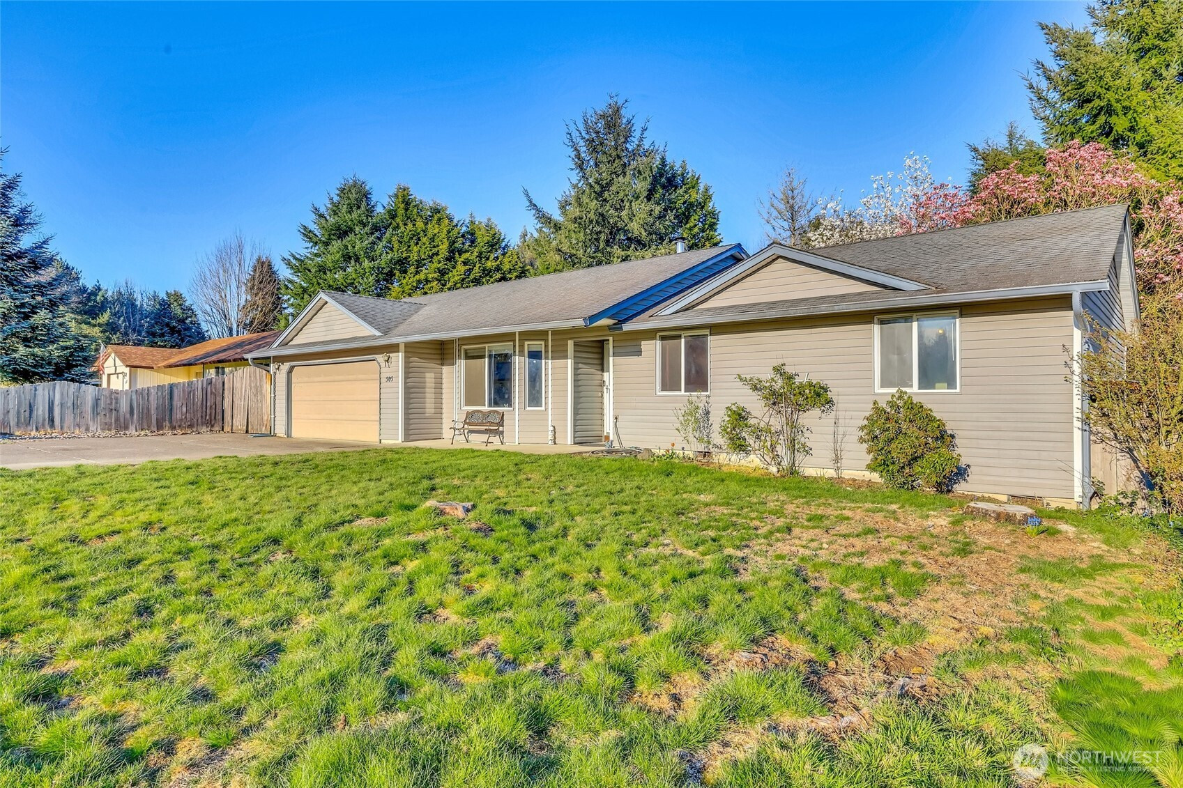 WOW. Fall in love with this beautifully updated ranch home, where comfort, charm, and easy one-level living come together perfectly. With 3 bed, 2 bath, and an easy-to-maintain layout, this home invites you to slow down, settle in, and imagine the life you’ve been craving. Welcoming entry flows into a quaint dining, cozy living room, and stunning kitchen (heart of the home). The kitchen is full of style and personality, featuring wood block countertops, perfectly placed island, clean modern lines, apron sink, and gorgeous gold finishes that bring a fresh feel. And just so we’re clear... no, the décor does not stay. Throughout the home, you’ll find light, airy flooring, warm paint tones, and thoughtful touches that make the space feel polished and personal. The guest bath is charming and a must see! The primary suite steals the show. Filled with natural light, it offers an oversized closet connected to the private bath, where you’ll find a large tiled shower with two shower heads. Yes, really. Two. The third bedroom adds flexibility, perfect as a bedroom, office, playroom, or creative space, with convenient access from both the house and garage. Step outside to the covered back patio, sip your morning coffee, and enjoy the fully fenced backyard—ready for garden beds, play space, gatherings, or peaceful evenings. All of this is tucked into charming Yacolt, close to the dog park, skate park, city park, pizza, and coffee—small-town touches that make this house feel like home.