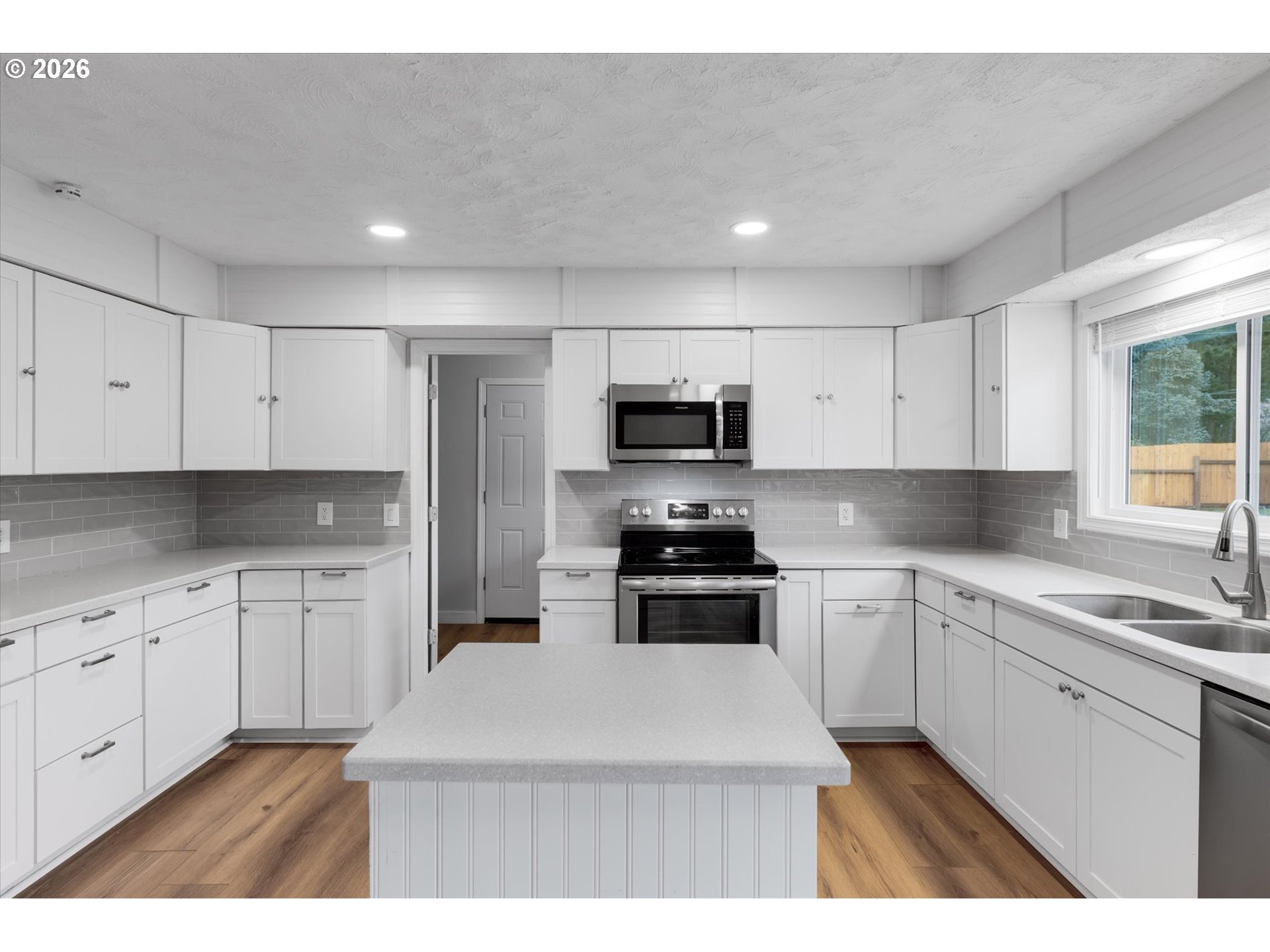 Discover this single-level 3 bed, 2 bath home situated on an expansive .25-acre corner lot in the prime Salmon Creek area. This stylishly updated home blends comfort, character, a functional floor plan which makes for easy everyday living. The comfortable family room features a classic brick wood-burning fireplace and brand new carpet. The light and bright kitchen is the home’s centerpiece featuring stunning quartz countertops and island, tile backsplash, newer appliances and spacious cabinetry. The primary suite includes a walk-in closet and an elegantly updated bath with beautiful tile work. Outside you’ll find a brand-new custom shed, a large fully fenced yard that can be transformed into your dream landscape and enough space for RV parking! Enjoy the added convenience of the attached oversized 2 car garage with plenty of storage. Newer roof (2.5 years), new exterior/interior paint, new durable LVP flooring, new vinyl windows and an upgraded electric panel. All appliances stay. Close to freeway, shopping, restaurants and schools. This is a wonderful opportunity to own a well-maintained, updated ranch home with modern finishes in a prime location.