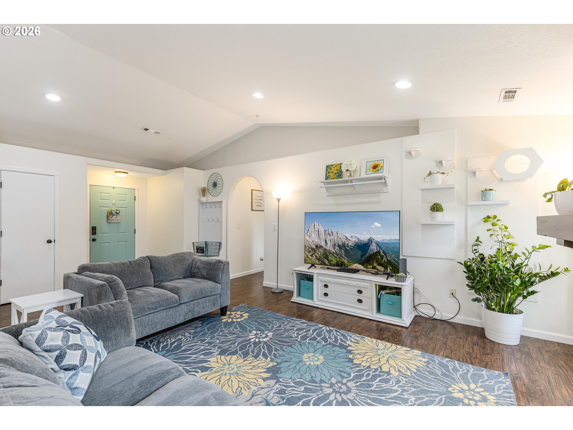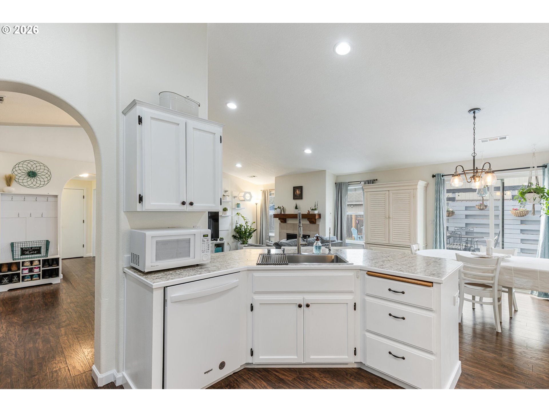 Stunning one-level home on an oversized corner lot offering privacy and space for everyone, including a shed on there side of the home. This turnkey, move-in-ready property features a newer roof (approx. 5 years old), gas forced air with A/C, newer laminate flooring, and fresh trim exterior paint. Enjoy beautifully updated bathrooms and a light-filled great room with a cozy fireplace. The open inviting kitchen is ideal for entertaining. Situated adjacent to a greenspace and conveniently located near shopping, dining, freeways, A perfect blend of comfort, functionality, and location.