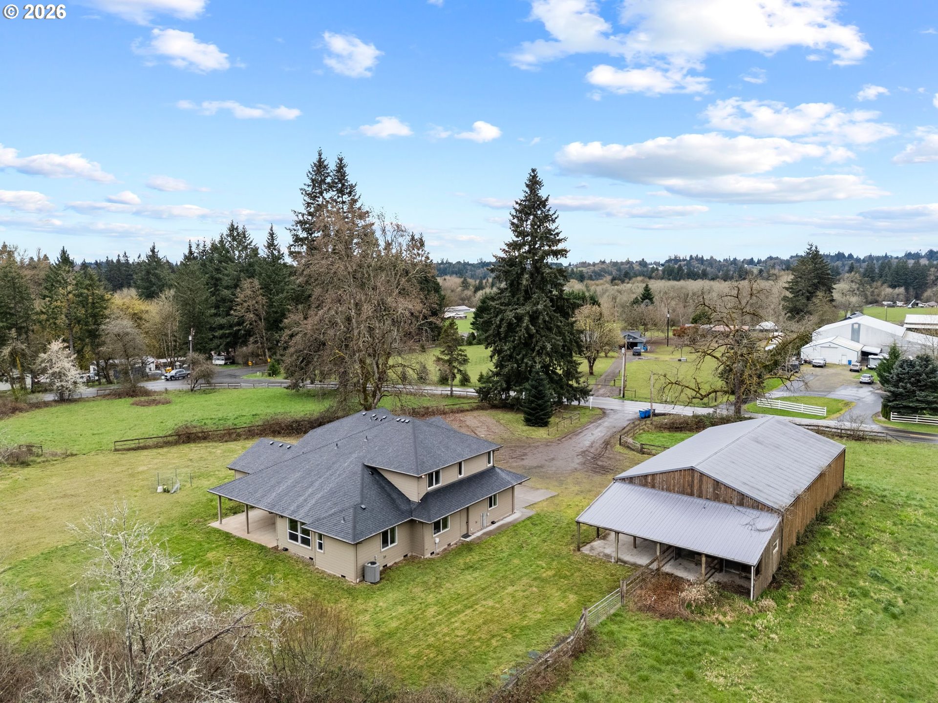 (503) 893-8874New Roof, just replace it in Feb. 2026! Newer HeatPump and Water heater in 2024. Enjoy the best of country living on 5 flat, beautiful acres—ideal for animals and hobbies. This custom home features a bright, open great room that connects to a stunning kitchen with granite countertops, build-in double oven and a pantry—perfect for entertaining. The spacious primary suite on the main level offers a spa tub and walk-in closet. A large laundry room provides excellent storage. Outside, you’ll find a 2,800 sq ft cedar shop, with a 800 sq ft. Livestock shelter, and a separate 576 sq. ft outbuilding, offering endless possibilities for work or play.