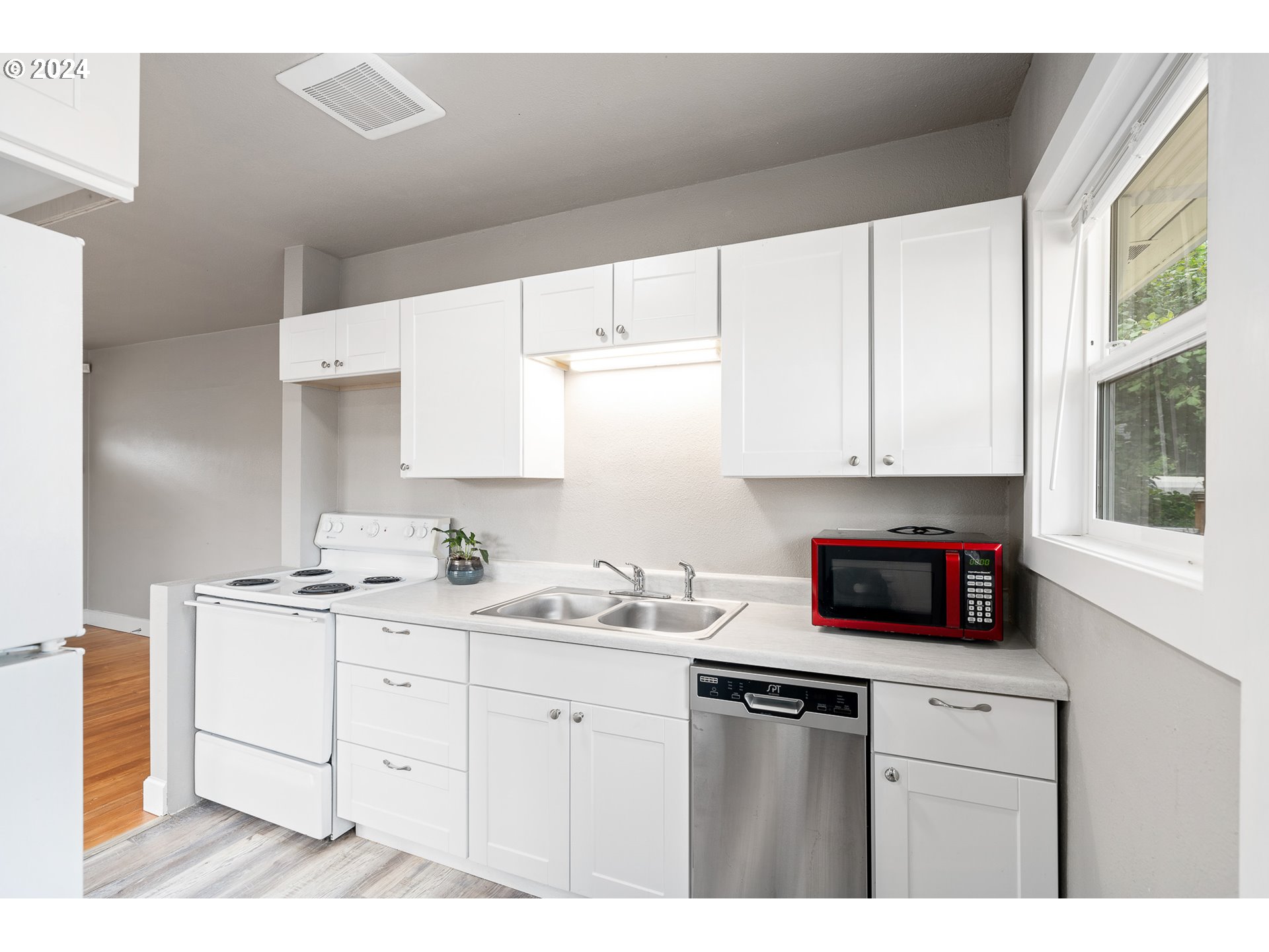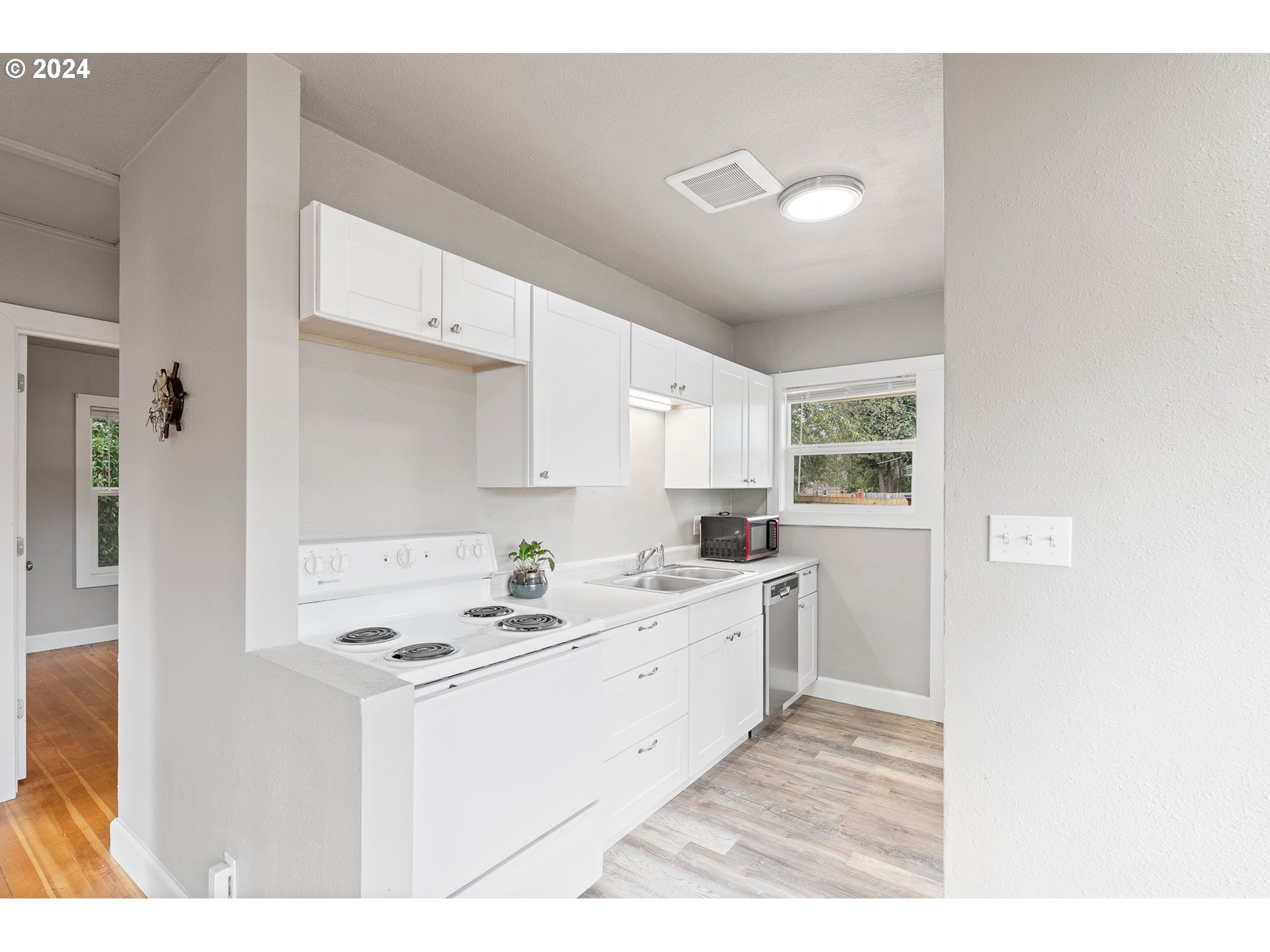 Charming bungalow with original hardwood floors, and a ton of updates! The living room features high ceilings, hardwoods, and a mini split that provides year-round comfort with both heat and air conditioning. The kitchen has updated cabinets, laminate flooring, and a stainless dishwasher. Convenient inside laundry area with lots of cabinet space. The bathroom has been updated within the last few years with a tub/shoer and surround, vanity & sink, and flooring. Both bedrooms have high ceilings, hardwood floors, and wall heaters. Outside you will find a nice sized fenced backyard, storage shed, a deck, and ample parking in the driveway. Open house - Sunday 09/01/24 from 1-3pm!!!