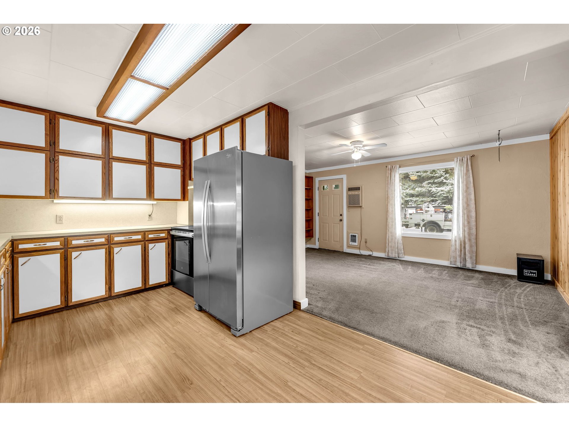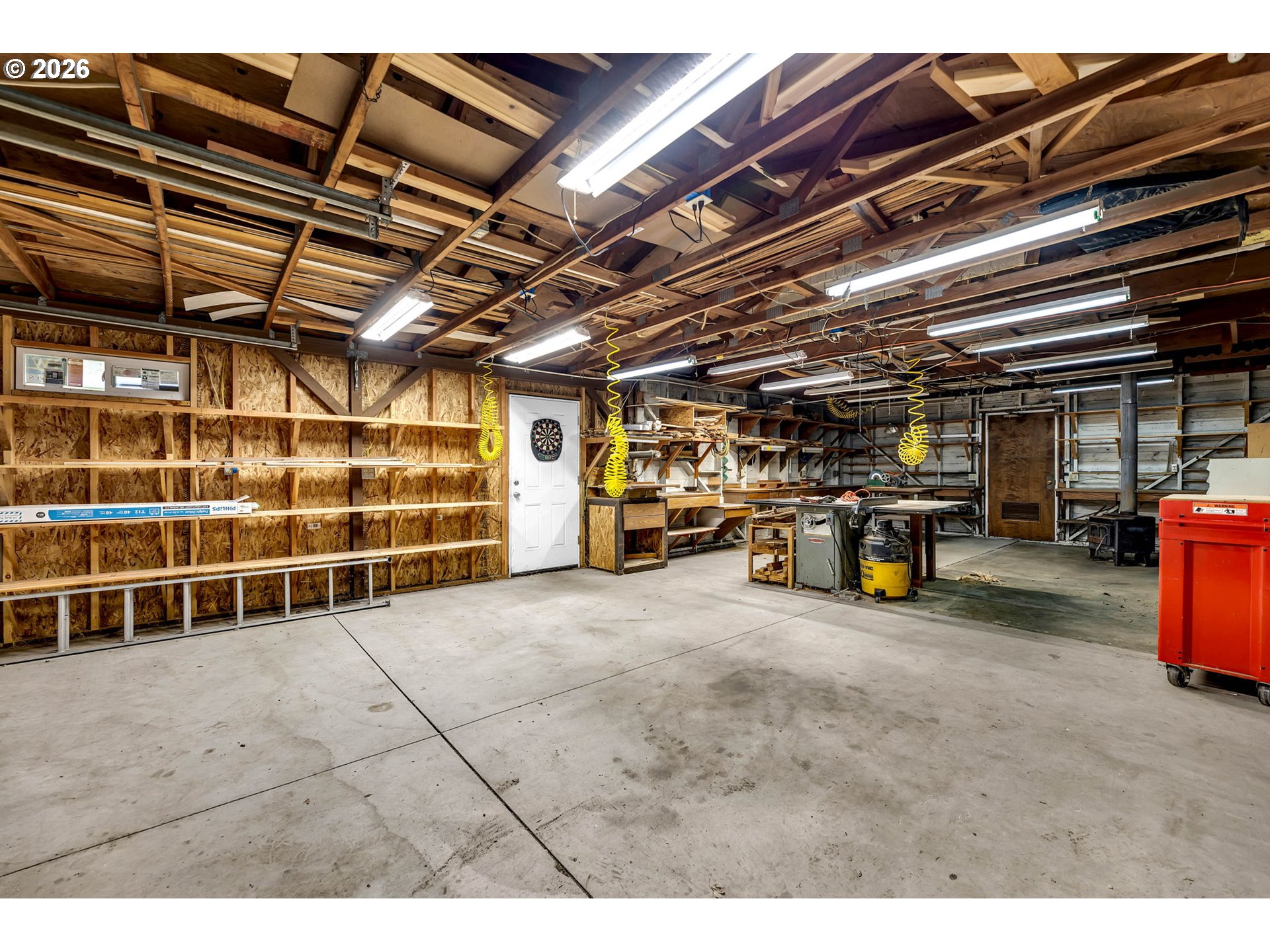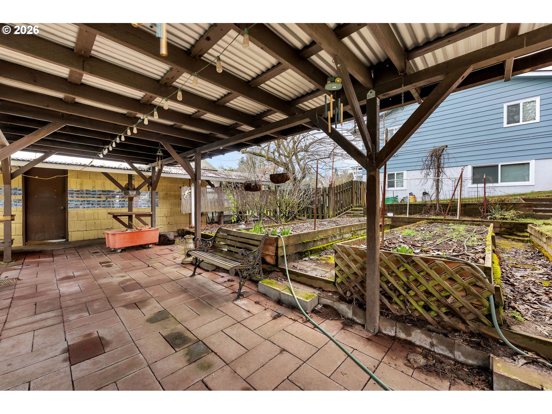 Built in 1938 and brimming with potential, this adorable cottage sits on a sprawling .28-acre corner lot where the possibilities truly outshine the footprint. A project for someone with vision, this home showcases charming period details including knotty pine wall paneling and a graceful arched doorway — a nod to its history. The kitchen features a bay window, built-ins, and an abundance of full-height cabinetry, with the freestanding refrigerator and range included. The spacious primary bedroom offers a walk-in closet and a bathroom complete with a dual-flush toilet and walk-in shower. An additional large office/utility room provides flexible workspace and extra built-in storage. A generous vaulted addition expands the livable space with abundant windows, a cozy electric fireplace, and exterior entry — ideal for guest quarters, a home gym, creative studio, or private office. Outside is where this property truly shines: multiple raised garden beds, a greenhouse for year-round growing, a huge covered patio for all-season enjoyment, a darling little red barn shed, and plenty of room to play, entertain, or relax. The impressive outbuilding/shop includes electricity, extensive lighting, tons of built-ins for storage, and large doors for easy access — ready for projects, storage, hobbies, or your next big idea. No HOA and RV parking add even more flexibility. With room to expand, garden, or reimagine, this is an opportunity to create something truly special. Schedule your showing today!