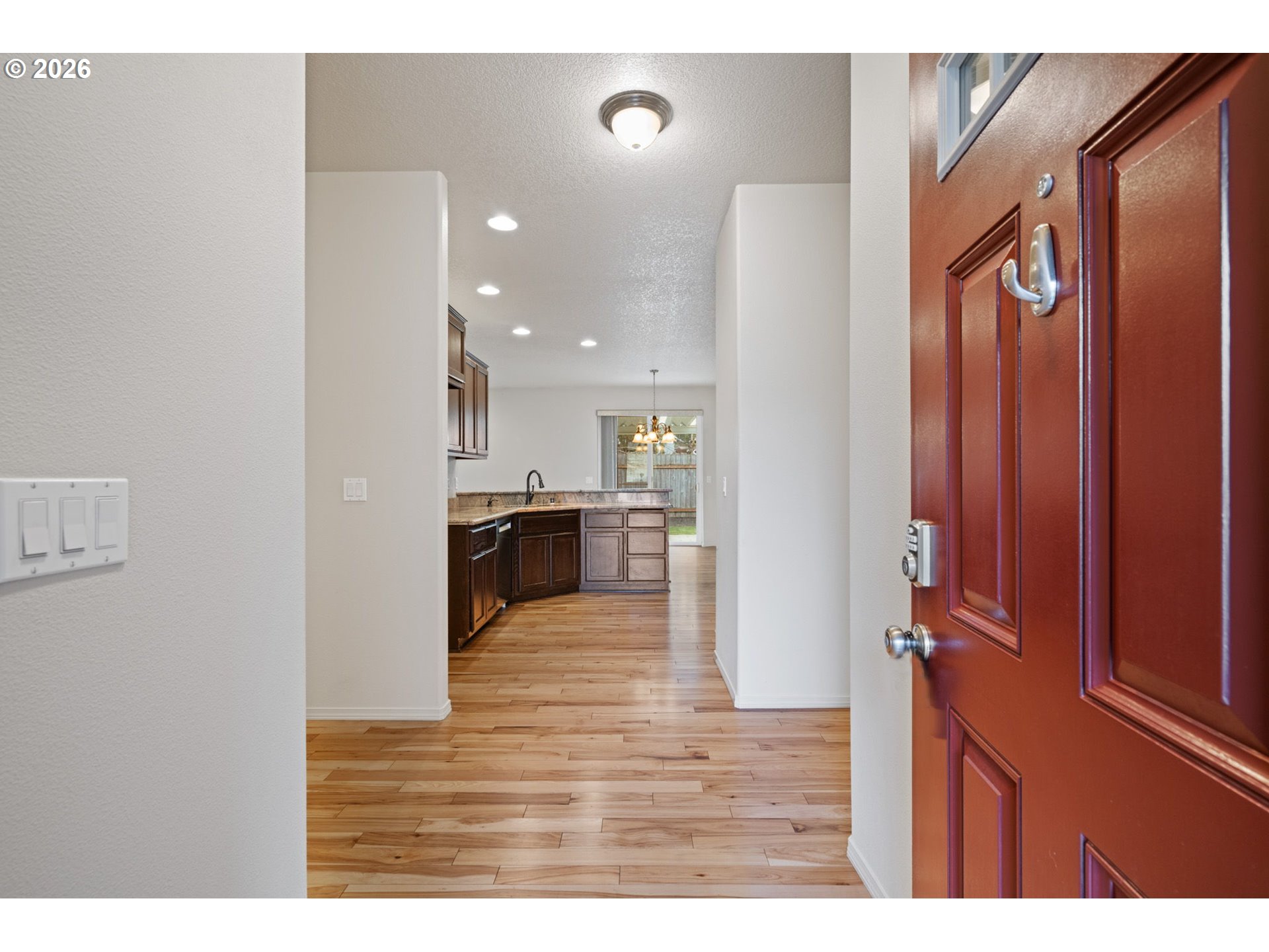 Beautifully maintained 1-level home built in 2009 with lots of upgrades, including beautiful hickory floors, upgraded cabinets in kitchen & baths, granite in kitchen & bathrooms, 9' high ceilings, New Lennox HVAC 2021, Water Heater, and Kitchen appliances 2024, finished garage w/man door and garage door opener, 6 panel doors throughout, locking glass front storm door, and 12x18 patio w/patio cover.