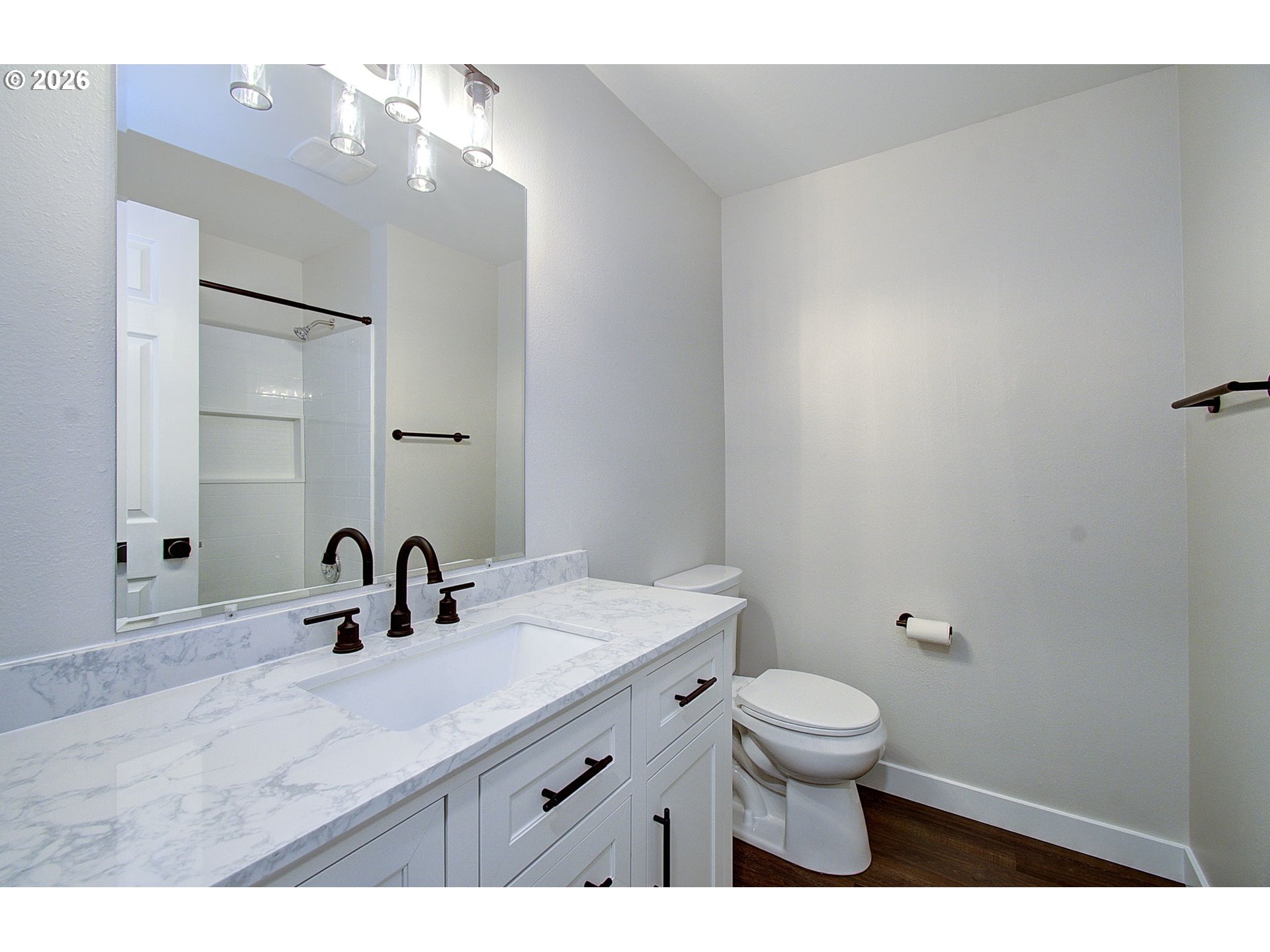 Welcome to this beautifully fully remodeled 3-bedroom home located within a well-established neighborhood within the highly desirable Evergreen School District. Situated on a spacious corner lot, this move-in-ready property has been thoughtfully updated from top to bottom with current finishes, major system upgrades, and a fully landscaped yard designed for outdoor living. Inside, you’ll find a bright and inviting floor plan featuring all new LVP flooring throughout, fresh interior paint, and updated lighting fixtures, giving the home a clean, contemporary feel. The kitchen has been refreshed and comes complete with all new appliances, making it ready for everyday living and entertaining. Both bathrooms have been fully upgraded with new fixtures, vanities, and finishes, providing a polished look.This home also offers peace of mind with important mechanical improvements, including an upgraded electrical panel, new heat pump, and mini-split system, ensuring efficient heating and cooling year-round.Step outside to enjoy the large, fully landscaped yard with a brand-new sprinkler system and fence, perfect for maintaining the lush lawn with ease. The covered patio creates a great space for outdoor dining, relaxing, or hosting gatherings, while the oversized corner lot provides extra privacy, additional parking potential, and plenty of room to enjoy the outdoors.Additional features include washer and dryer hookups in the garage, ample storage space, and a layout that is both functional and comfortable.Located in the Evergreen School District and in a high-demand area close to shopping, dining, parks, and major commuter routes, this home offers the perfect combination of location, upgrades, and move-in-ready convenience.This is a rare opportunity to own a fully updated home on a large corner lot!