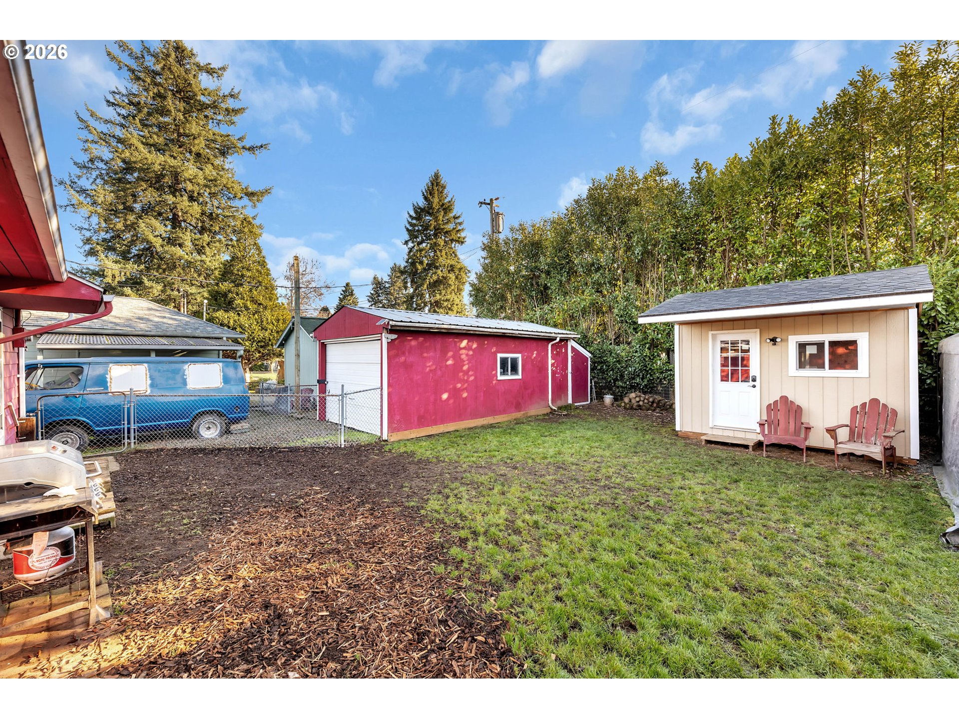 Charming move-in ready bungalow with detached garage and 2nd driveway with portable carport, perfect for storage and RV parking. Home has been updated throughout with newer LVP flooring. Remodeled kitchen with pantry area, including a Stainless Steel fridge and stackable washer/dryer. Dining room with built-in bench seating. Updated bathroom with tile floor. Newer hot water heater. Private fenced back yard with an adorable garden shed.