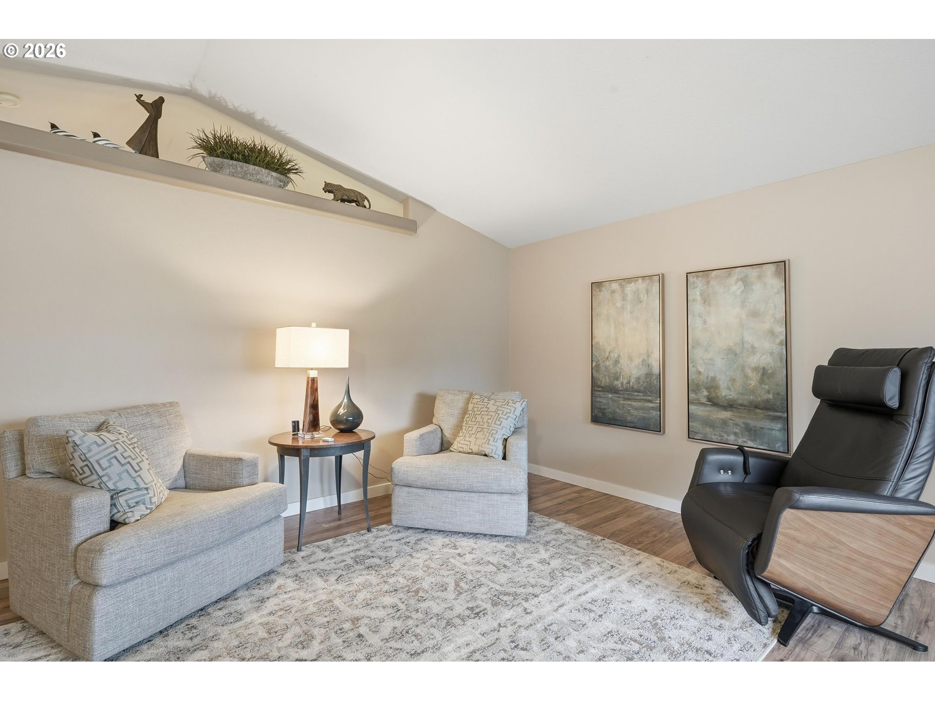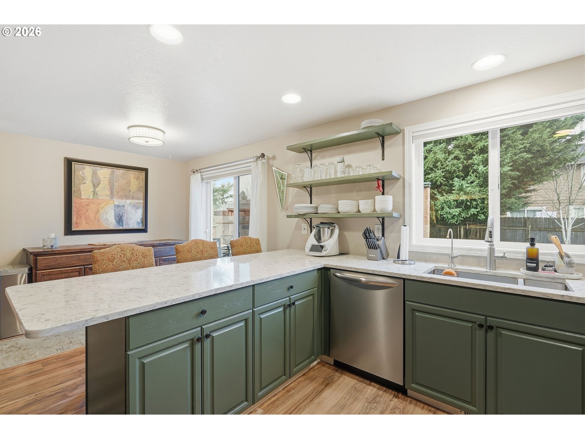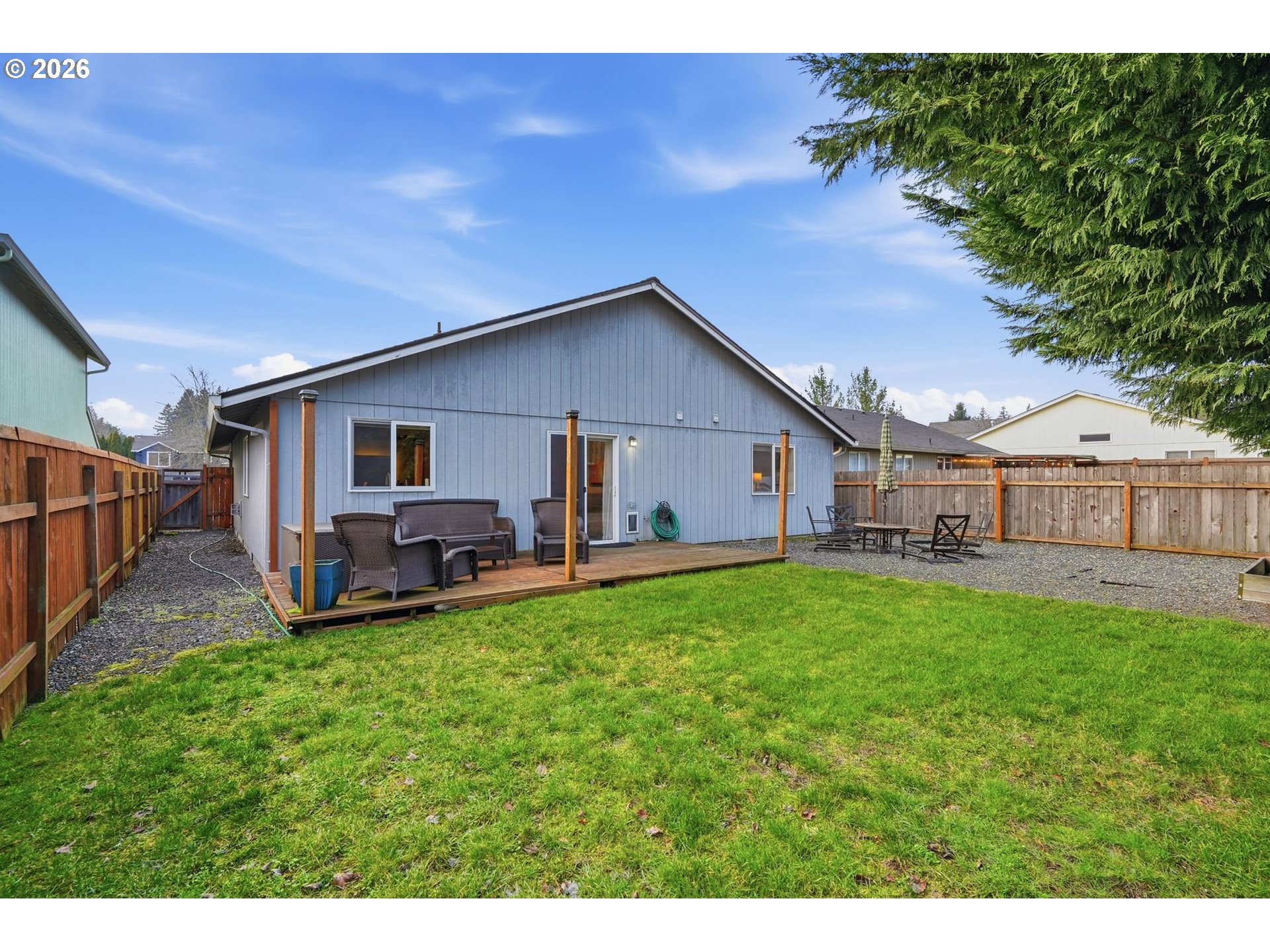 (503) 893-8874Well-maintained home with a new roof in 2021, brand new HVAC system, newer interior paint, and a newer whole-house water filtration system. Covered front patio welcomes you into a bright living room with vaulted ceilings. The open layout continues into a cozy family room with a gas fireplace, vaulted ceilings, a dining area, and built-in cabinetry for buffet and storage. The kitchen is beautifully updated with quartz countertops and stainless steel appliances.Laminate flooring runs throughout the main living areas, with carpeted bedrooms for added comfort. The primary bedroom includes an updated bathroom with wainscoting, quartz countertops, and newer laminate flooring. The private, fenced backyard features mature landscaping, a large deck, and raised garden beds.