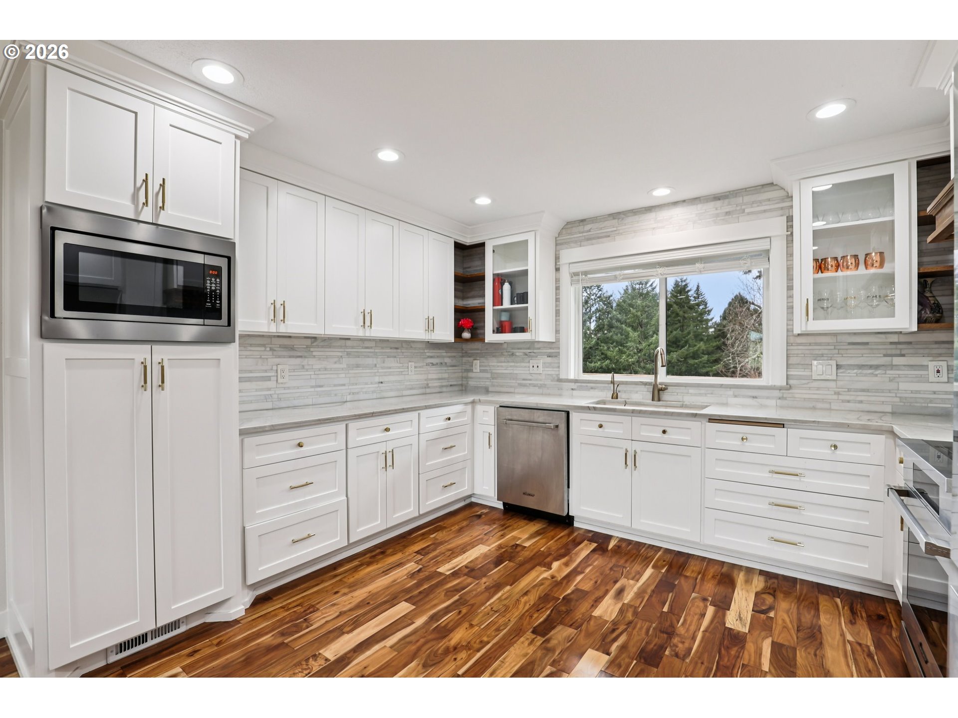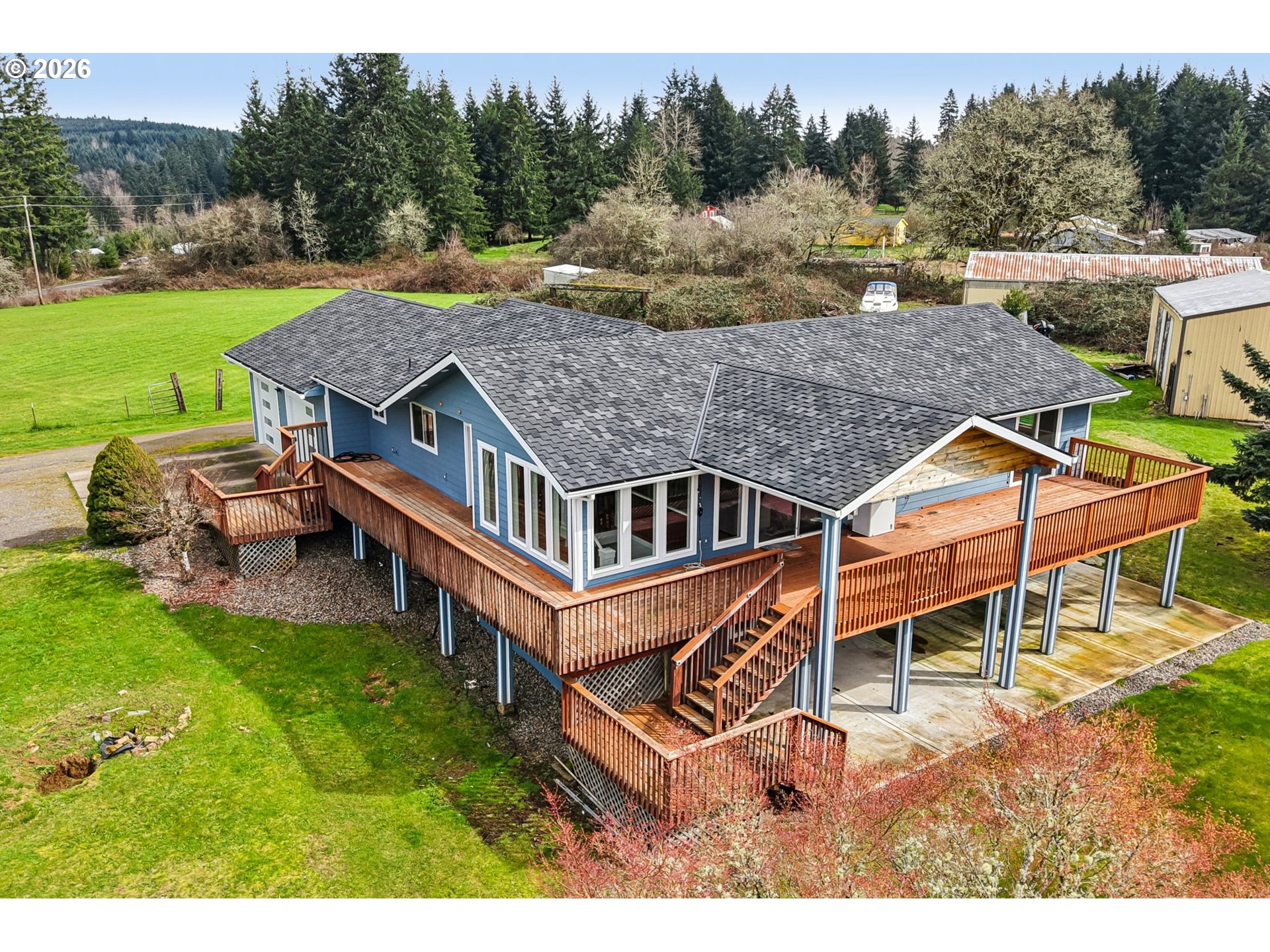 (503) 893-8874Beautifully designed home with exceptional space both inside and out. Ideal horse property, including 2 tax lots totaling 7.43 acres. Welcoming wrap-around deck opens to great room family room, windows frame sweeping territorial views of surrounding property, sliding door access to covered deck, creating seamless indoor-outdoor living. Gourmet stainless kitchen well-appointed with some Dacor appliances. Granite countertops and marble tile backsplash complement abundant shaker-style soft-close cabinetry, some with glass panes and pull-outs, plus open shelving. Adjacent to kitchen is the dining area. Main-level primary en-suite offers deck access, and spacious walk-in closet with California Closet organizer. Luxurious bath includes a dual vessel sink granite floating vanity, frameless shower with marble tile up to ceiling, private water closet. Second bedroom and full bath are also located on the main. Lower level expands living space with two additional bedrooms, fifth non-conforming bedroom ideal for media room/office, huge bonus room pre-plumbed for wet bar, abundant windows with territorial views and slider access to covered patio. Additional conveniences include 2 laundry rooms, one fully equipped on the main with built-ins and granite counters, another on lower level pre-plumbed with washer and dryer. Interior highlights: All appliances remain, floating vanities in all bathrooms, granite countertops, hardwood, marble tile and carpet flooring, recessed lighting, 80-gal hot water heater. Hughes Network internet available. Outdoor amenities: wrap-around deck, covered patio, oversized two-car garage, new Hardi Plank siding, new 50-year roof. Substantial shop of approx 1800 sq ft plus a 300 sq ft loft, electricity, security lighting, concrete floor, two tall garage doors, and mechanics service pit. 30x60 pole barn, electricity, security lighting, previously housed five stalls. Four cross-fenced pastures. Mortgage savings may be available for buyers of this listing.