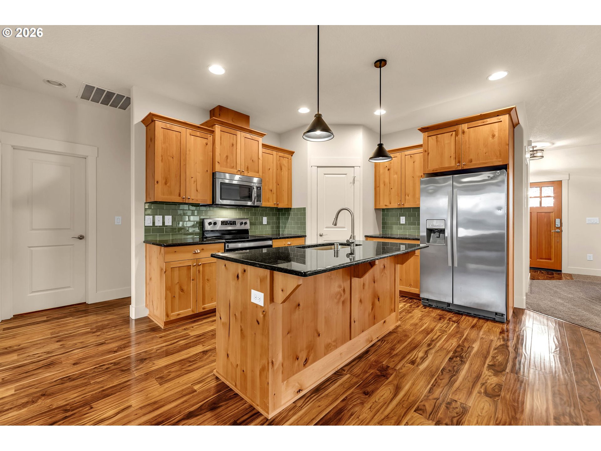 Perched along the edge of the city limits, this beautifully maintained single-level Craftsman offers a rare balance of everyday comfort and peaceful rural charm. With over 1,500 square feet of thoughtfully designed living space, this 3-bedroom, 2-bath home blends character with quality finishes and easy functionality.Inside, you’ll find a bright, welcoming layout with generous living areas, abundant natural light, and seamless flow throughout. The well-appointed kitchen connects effortlessly to the main living space, ideal for gathering with friends or enjoying relaxed evenings at home.Positioned to capture stunning westward views, the home showcases breathtaking sunsets framed by mature evergreen trees, often accompanied by eagles perched above. Its elevated setting enhances privacy and creates a calm, retreat-like atmosphere.The spacious primary suite offers a comfortable haven at day’s end, while two additional bedrooms provide flexibility for family, guests, or a dedicated home office. A double garage adds practical convenience and ample storage.Located in a quiet, friendly neighborhood at the boundary of city conveniences, this home provides easy access to shopping, dining, and schools while maintaining the openness and slower pace of country living.If you’re searching for a home that delivers quality, comfort, and memorable views, all in an exceptional setting, this Craftsman is one you won’t want to miss!