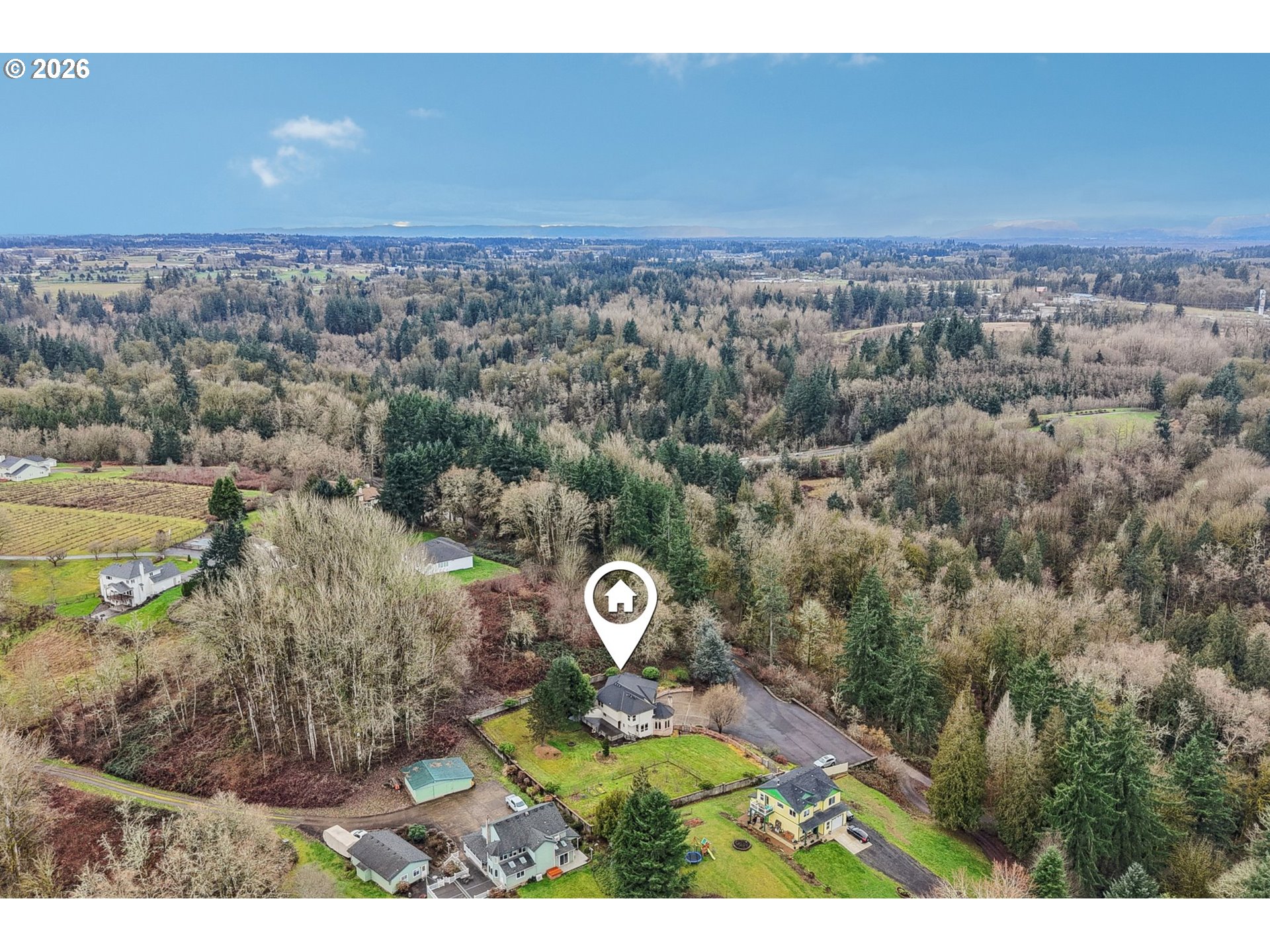 (503) 893-8874Grand double-door entry with sidelites and radius transom opens to foyer featuring a half-turn staircase with oak balusters, accessory shelf, soaring ceiling. Formal living room is filled with natural light from view windows and clerestory windows, wood-burning fireplace with stone surround, flowing seamlessly into the formal dining room with built-in buffet cabinetry some with glass panes and convenient kitchen access. Great room family room showcases a beveled glass French door entry, wall of windows including clerestory windows, vaulted ceiling, and ceiling fan. Wet bar with granite countertops, built-in cabinetry, conveniently adjacent to family room and kitchen. Kitchen is equipped with a dishwasher, microwave, oven, Jenn-Air glass cooktop with downdraft, stainless refrigerator, granite counters, abundant cabinetry with pullouts, walk-in pantry, and desk area. Separate kitchen dining features a bay windowed wall, adjacent slider access to wrap-around deck. Main-level primary en-suite offers French door entry, walk-in closet, slider to deck, and recessed lighting, bath includes beveled glass French door entry, dual granite vanity, jet tub with tile surround, and shower. Upper level includes second and third bedrooms with walk-in closets and shared full bath with dual granite vanity and tub/shower combo. Bonus room/loft overlooks the family room. Main-level laundry/mud room with sink, shower, and built-ins, plus a powder room with granite vanity. Additional interior highlights include oak hardwood floors and interior doors, carpet, marble and ceramic tile floors, silhouette blinds, and central vacuum system. Exterior features include a fully landscaped, terraced, gated and block-walled yard with drive-in access, wrap-around deck, koi pond, mini fruit tree orchard, forested area with mature trees and edible mushrooms. An oversized, extra-deep 3-car garage with staircase entry into home. Mortgage savings may be available for buyers of this listing.