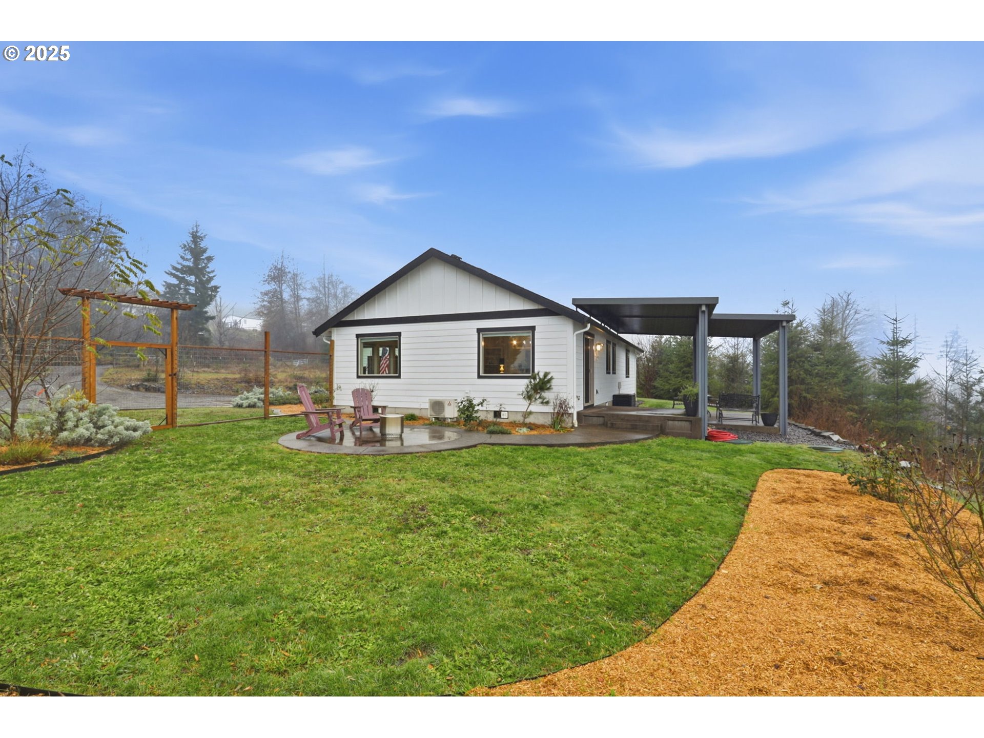 Welcome to this beautiful 3-bedroom, 2-bathroom home situated on just over 8 private, sloped acres of wooded land in Yacolt. Inside, the bright, open-concept floor plan is instantly inviting, with vaulted ceilings and abundant windows that fill the space with natural light and showcase serene year-round tree views. The property is an outdoor enthusiast's and homesteader's dream. It features invaluable direct river front access and a highly productive outdoor setup, including an established orchard, ready-to-use raised garden beds, a functional chicken coop, and a large hoop house for extended-season growing. All of this is protected within a fully enclosed, deer-fenced yard. The beautiful outdoor patio with a view is perfect for relaxation, and the spacious 20x24 detached garage provides excellent secure parking and outstanding potential for a dedicated workshop