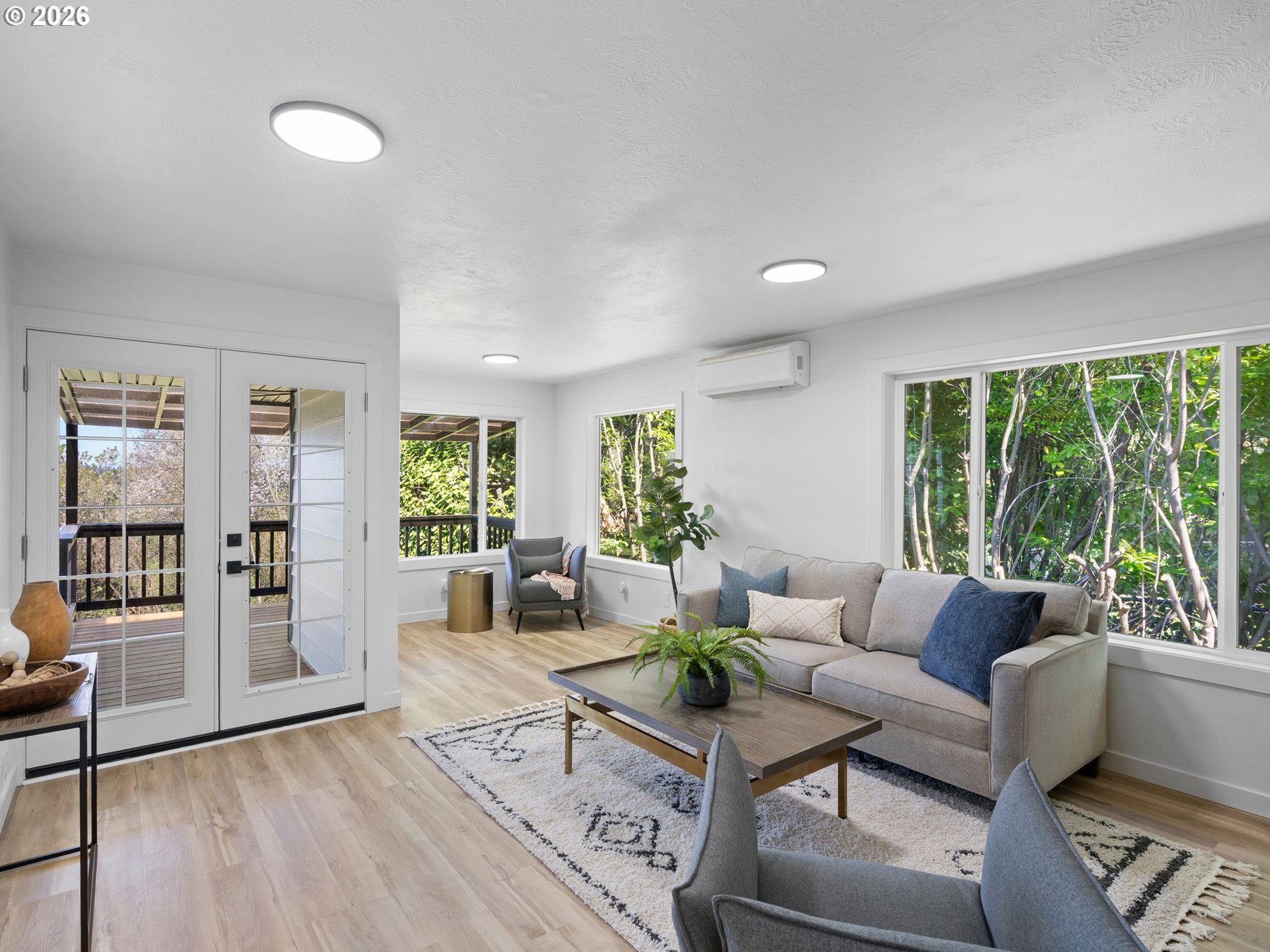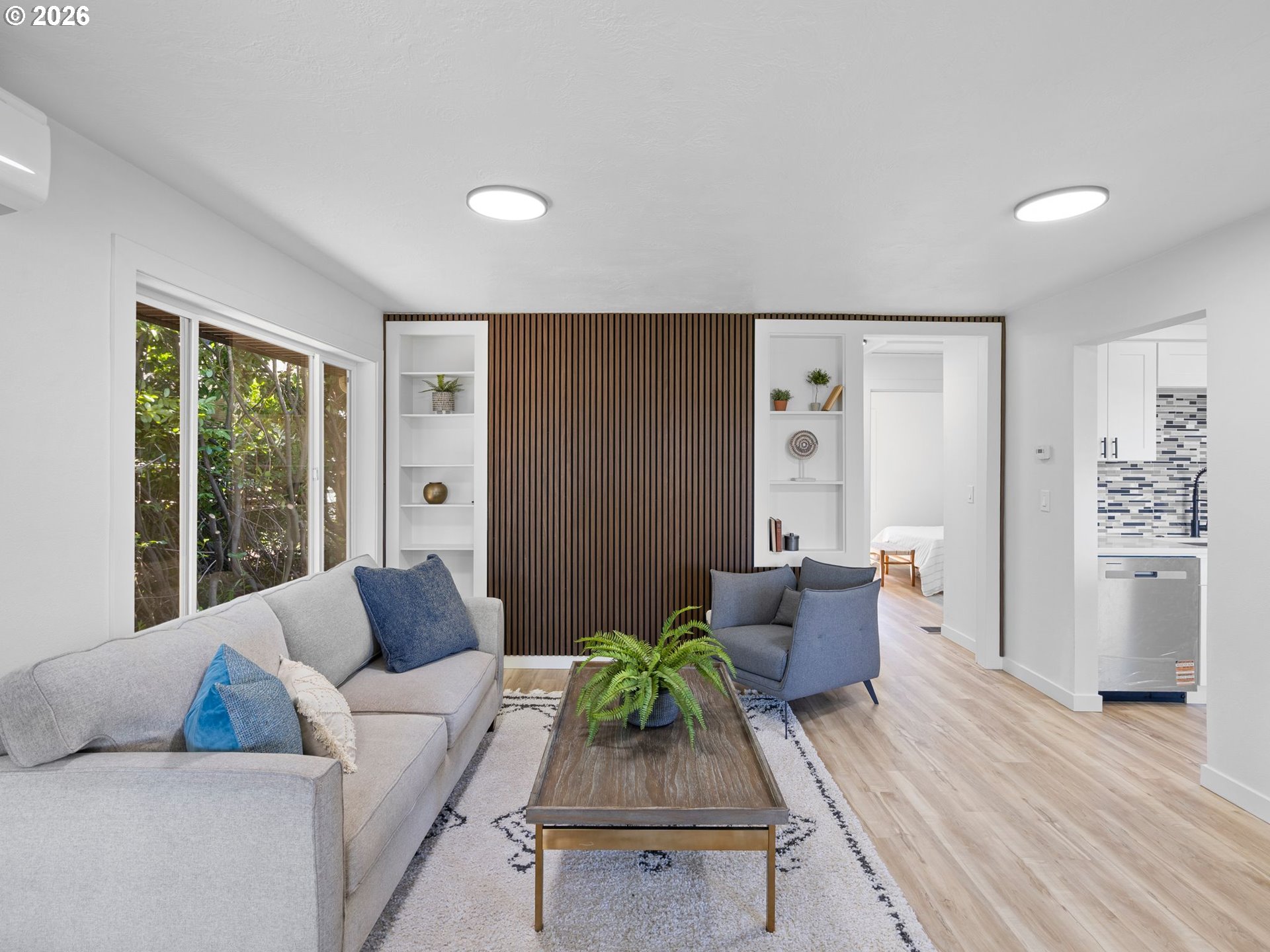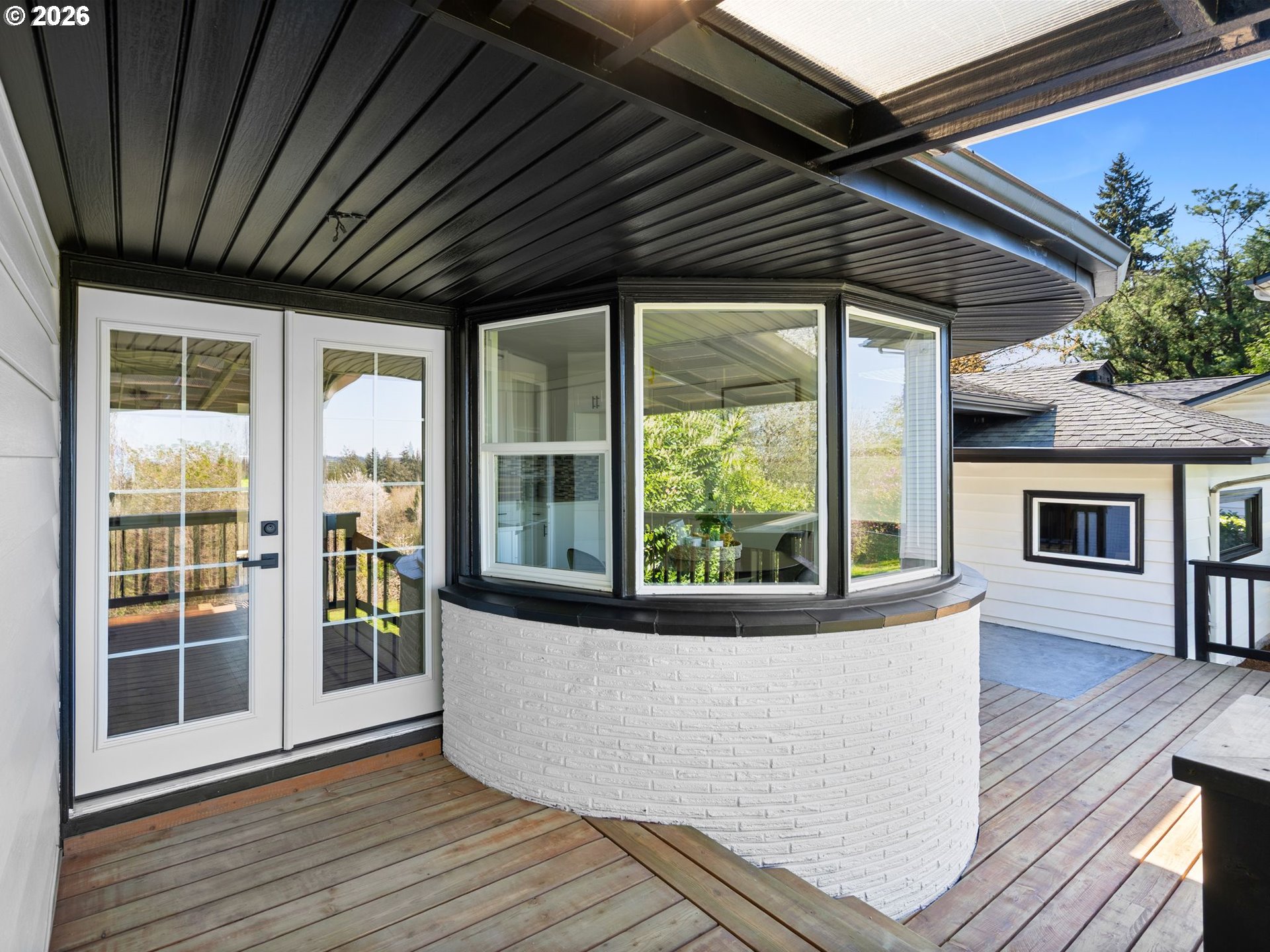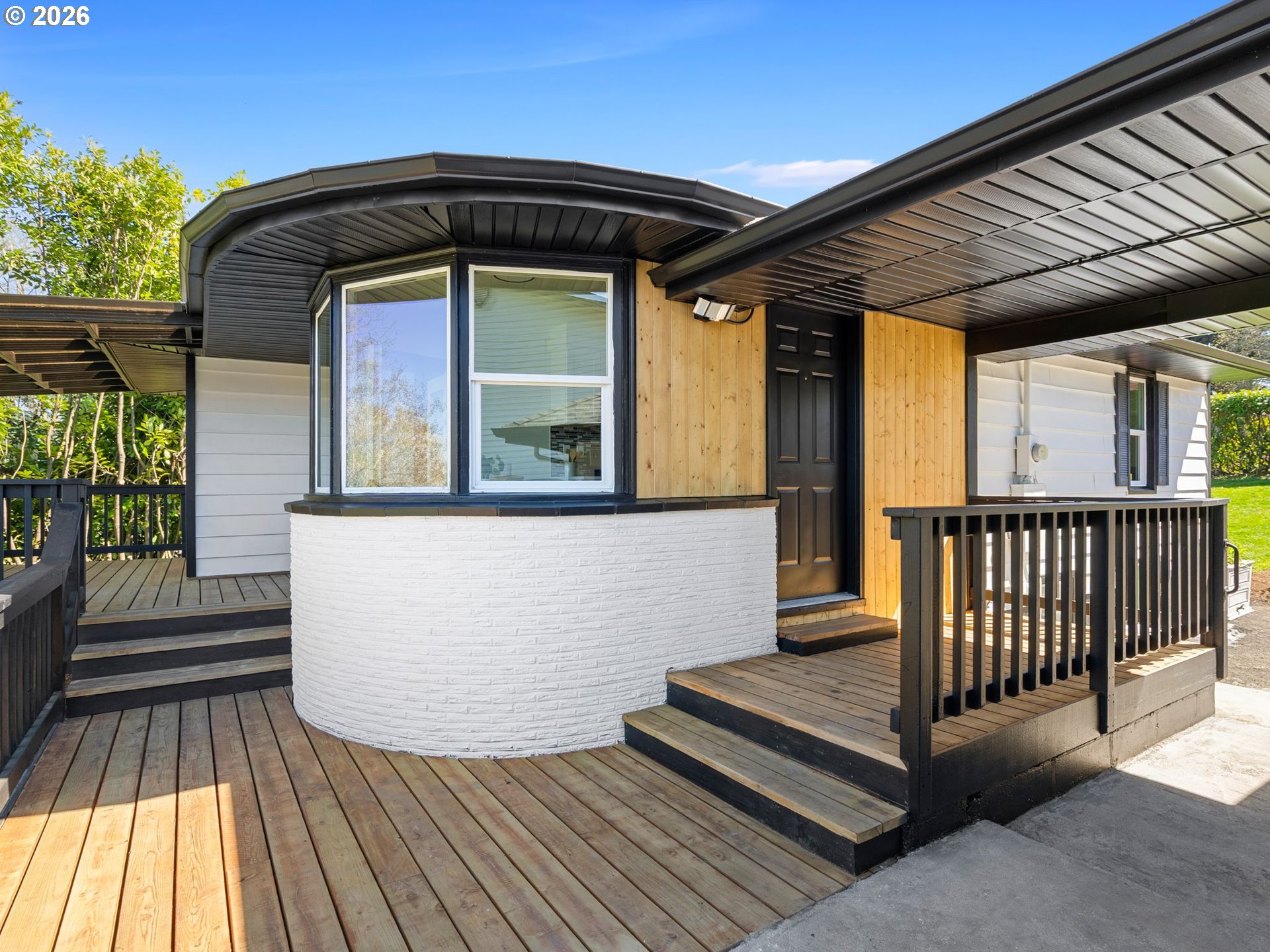 Some homes check boxes. This one stops you in your tracks.Set on nearly half an acre in Vancouver, this fully remodeled mid-century ranch backs to a natural wooded ravine with the kind of privacy and treetop views that make you forget you're minutes from I-5, Hwy 14, Clark College, and everyday shopping. The covered deck is where you'll spend most of your time, morning coffee, evening wind-down, rain or shine and it's covered, so the Pacific Northwest weather is never an excuse to go inside.Inside, the remodel was done right. New kitchen with quartz countertops and new appliances, new flooring throughout, and an updated bath. The living room features a designer wood panel accent wall with built-in shelves that give it real character. The curved bay dining nook looks out over the treetops and is the kind of spot you sit down in and don't want to leave. French doors connect the living space straight to the deck and the indoor-outdoor flow is effortless.Downstairs, the daylight basement with exterior entrance adds two additional rooms plus laundry. The lot is nearly half an acre zoned R-9 with ADU and development potential, buyer to verify with the City of Vancouver. Oversized driveway with RV parking and detached garage round it out.