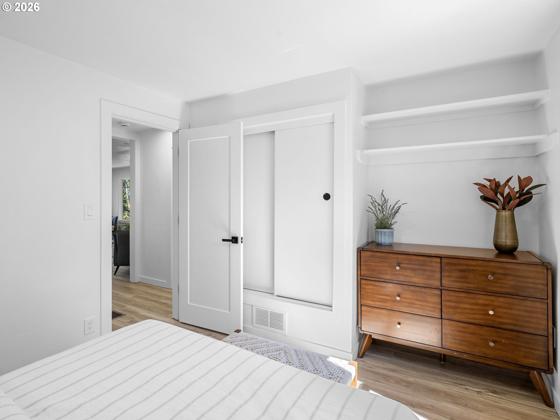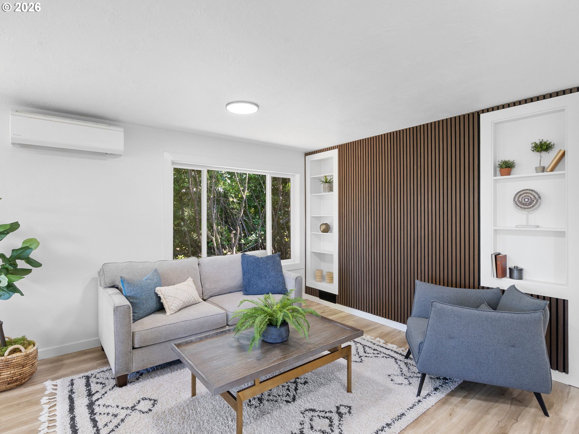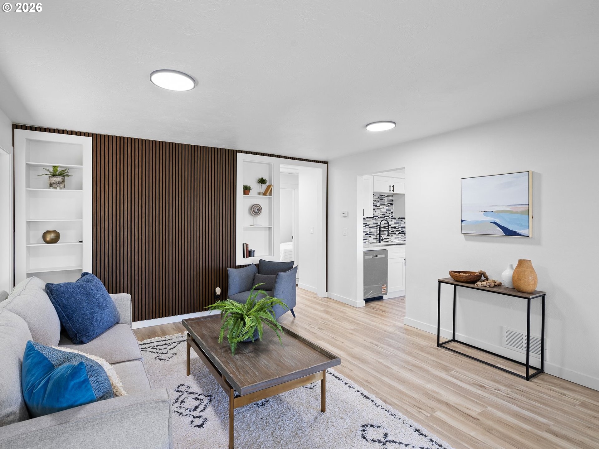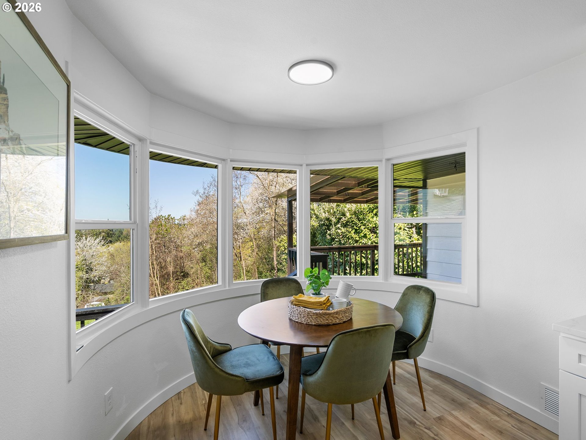Some homes check boxes. This one stops you in your tracks.Set on nearly half an acre in Vancouver, this fully remodeled mid-century ranch backs to a natural wooded ravine with the kind of privacy and treetop views that make you forget you're minutes from I-5, Hwy 14, Clark College, and everyday shopping. The covered deck is where you'll spend most of your time, morning coffee, evening wind-down, rain or shine and it's covered, so the Pacific Northwest weather is never an excuse to go inside.Inside, the remodel was done right. New kitchen with quartz countertops and new appliances, new flooring throughout, and an updated bath. The living room features a designer wood panel accent wall with built-in shelves that give it real character. The curved bay dining nook looks out over the treetops and is the kind of spot you sit down in and don't want to leave. French doors connect the living space straight to the deck and the indoor-outdoor flow is effortless.Downstairs, the daylight basement with exterior entrance adds two additional rooms plus laundry. The lot is nearly half an acre zoned R-9 with ADU and development potential, buyer to verify with the City of Vancouver. Oversized driveway with RV parking and detached garage round it out.
