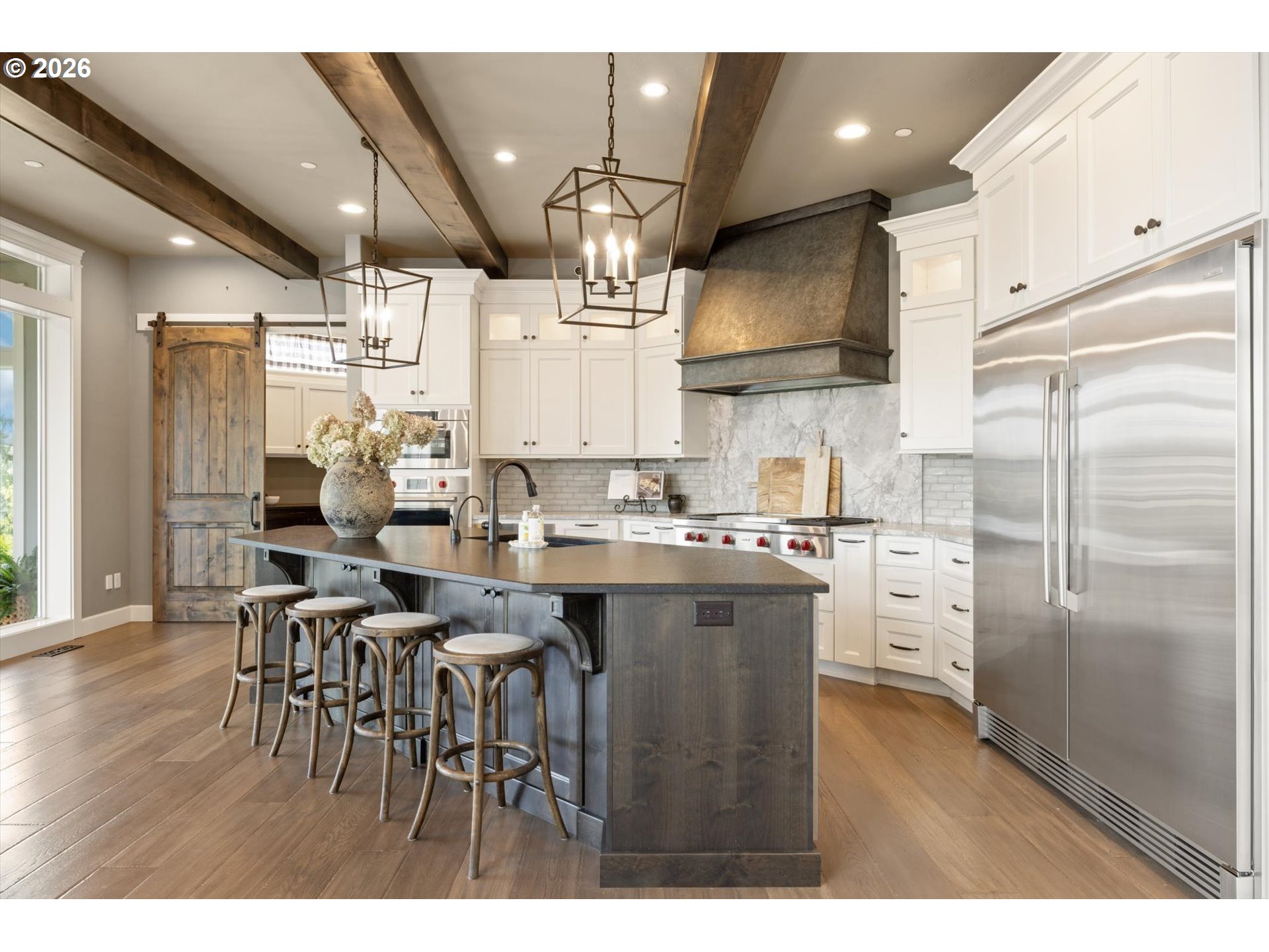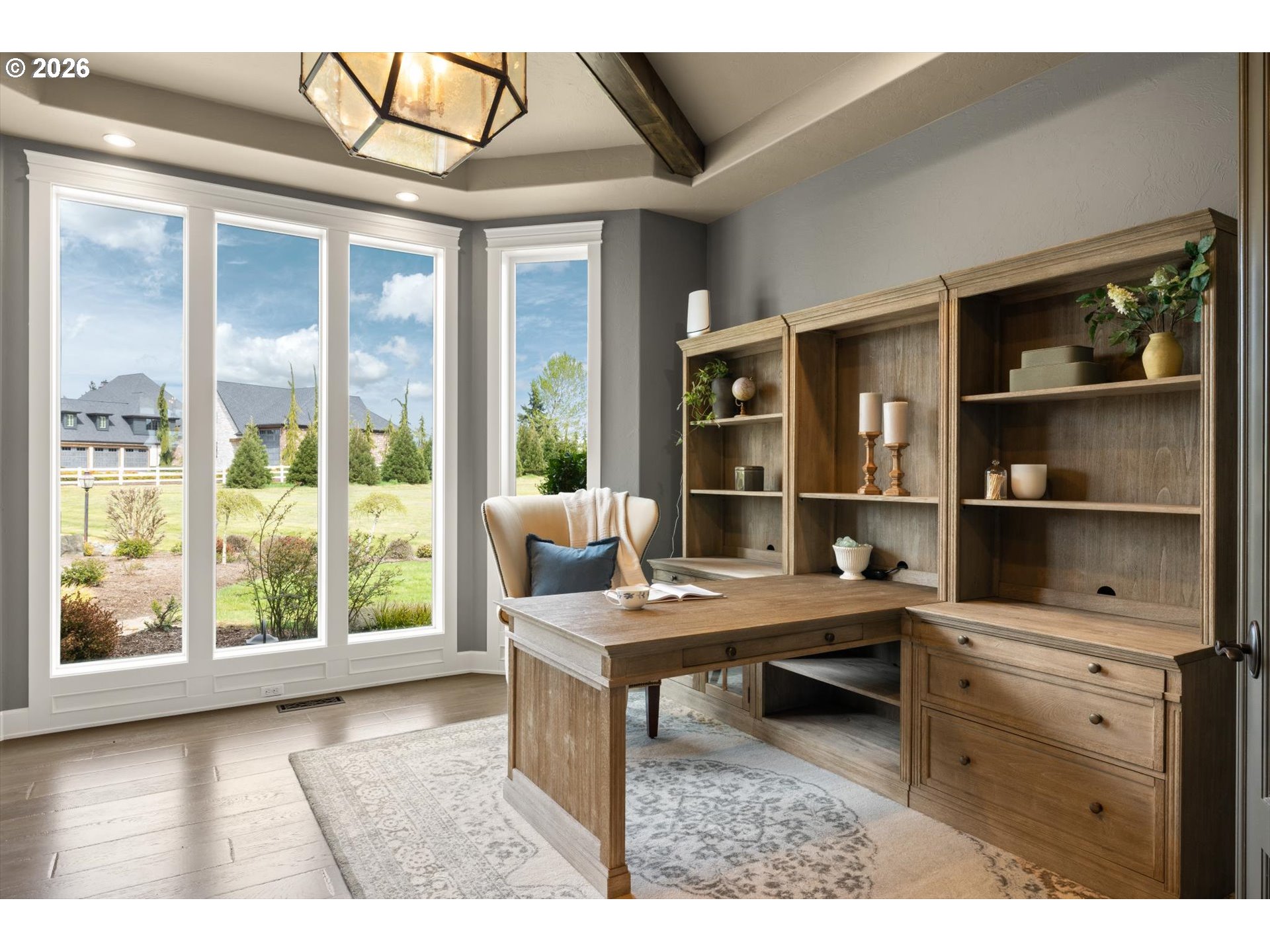 Set on 5 private acres in a gated Ridgefield setting, this elegant Cascade West home offers refined living with the flexibility today’s buyers are searching for. Thoughtfully designed with an open-concept layout, light-filled interiors, and timeless finishes, the home balances everyday comfort with effortless entertaining. The gourmet kitchen features high-end appliances, an updated pantry, and seamless flow into expansive living spaces, including a sunroom and multiple gathering areas. The main-level primary suite offers a private retreat, while additional spaces include all ensuite guest bedrooms, office, playroom/media room, and an upper-level bonus/loft family room. Extensively improved and meticulously maintained, the property now includes a newly constructed ~1,500 SF shop designed for true functionality—ideal for car collectors, RV/boat storage, or workspace—complete with a restroom, and approximately 500 SF of upper storage with industrial lift access. Outdoor living is equally impressive with expanded hardscape, a newly redone driveway, and an enlarged roundabout for ease of access and elevated curb appeal. A separate gym space off the garage with roll-up door adds versatility for fitness, hobbies, or additional entertaining. A rare combination of privacy, usability, and high-end living—just minutes from town.