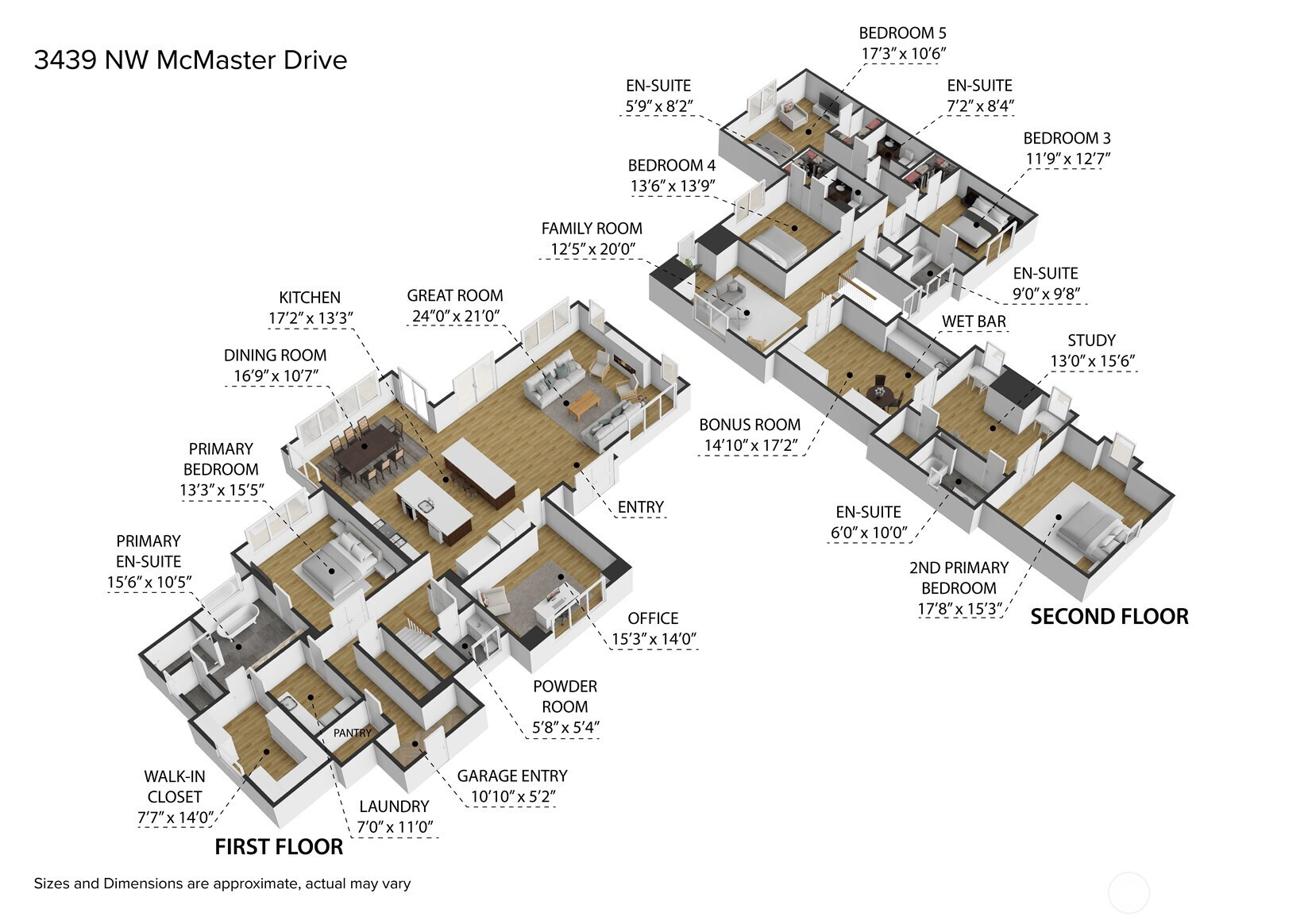 Where modern elegance meets exceptional functionality. This custom modern farmhouse in the gated Parklands at Camas Meadows defines luxury living. With 5 bedrooms, 5.5 bathrooms, and 4,263 sq ft of impeccable design - every detail impresses! The great room features 17 ft vaulted ceilings, a beautiful fireplace, and tons of natural light. A chef’s kitchen with dual islands, Sub-Zero and Wolf appliances, and dual Cove dishwashers is perfection. The main level primary suite offers a spa inspired bath and dream closet. Upstairs, find four en-suite bedrooms and a bonus room. Outdoors, enjoy a full kitchen, fire pit, fireplace, putting green, and saltwater spa. A 3 car garage with EV chargers completes this modern luxury retreat.