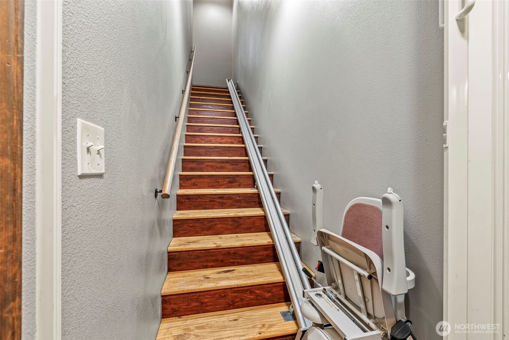 Gorgeous home on 5 acres. Main home has 2477sf with an additional 1200sf ADU. Beautiful kitchen with special ordered Italian backsplash. Granite countertops, new cabinets, pull out drawers and tile flooring. Extra large propane stove. Primary bedroom has a walk in closet. Primary bath has 2 separate vanities, large jetted tub and double shower. ADU is attached to the main home. It has stairs with a chair lift for easy accessibility. This is a one bedroom apartment style set up with it's own kitchen, washer/dryer, bathroom with heated tile floors. Also, has 650sf of storage tucked away in a closet. Outside is partially fenced and has a 30' circular stone firepit. Sprinklers front and back yard and 2 beautiful water fountains.