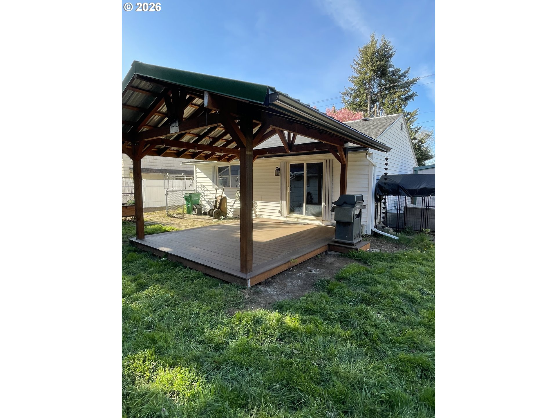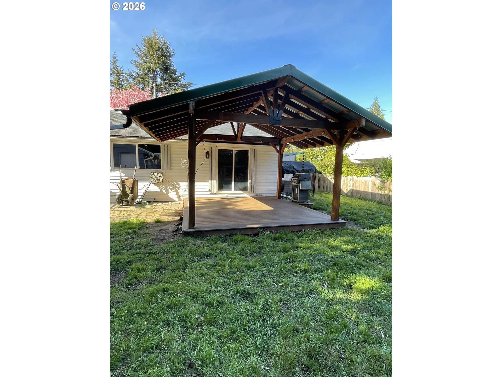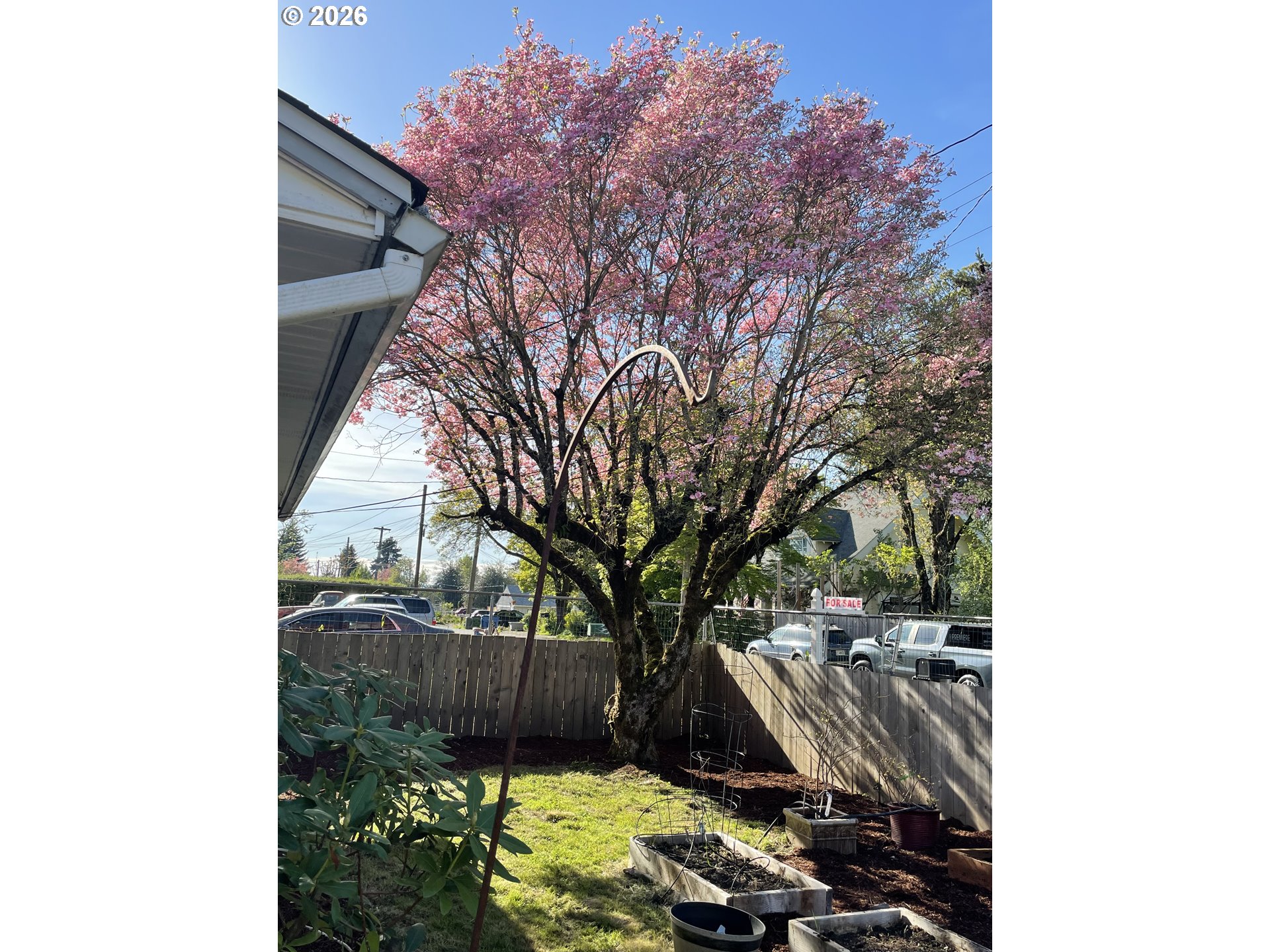 Charming and well-maintained what was once a 2-bedroom and is now a 1-bedroom, 1-bath home with solid construction and thoughtful updates throughout. Seller changed the floor plan layout by increasing the space for the living room area by taking down the wall between the living room and the 2nd bedroom. Easy project to put a wall back if 2 bedrooms are needed. Features include a heat pump with A/C, refinished hardwood floors, and updated windows for improved comfort and efficiency. The fully fenced yard offers privacy and functionality, complete with a garden area in the backyard featuring raspberries, blueberries, and raised vegetable garden in the front. The garage provides versatile space—one side functions as a 1-car garage with a new door and opener, while the other includes a laundry area, partial bath, and additional storage. All appliances are included, making this home move-in ready. 2015 new electrical panel... 2021 new water heater... 2021 new roof on home and garage... 2021 Plumbing, re-piped & new water main... Cold and hot water to the garage with utility sink... 2024 new life proof flooring throughout... 2025 new LG refrigerator... 2025 new Dishwasher... 2025 Chimney inspection and cleaning & Chimney has stainless steel liner... 2026 new electrical sub panel... Custom built 6x6 garden shed... Custom built timber teck deck & patio cover... Garage has 120 and 240 power... Garage has additional working toilet... Heat pump & forced air.