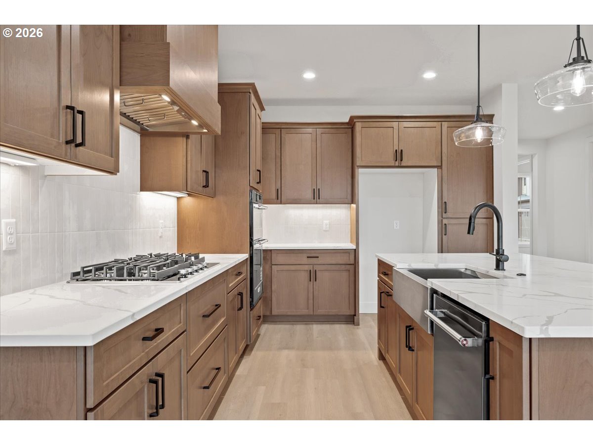Move-In Ready Home! Photos and virtual tour are of this beautiful new home. Welcome to Paradise Pointe Estates, one of Ridgefield’s newest and most desirable communities. Nestled among mature trees with stunning mountain views, this thoughtfully designed neighborhood features extensive walking trails, multiple playgrounds, and a serene, nature-focused setting, all while offering convenient access to I-5 and nearby shopping. This NW Farmhouse-style two-story home showcases superior craftsmanship, modern design, and exceptional attention to detail. The floor plan features 4 bedrooms, a main-level den or optional 5th bedroom, a spacious open loft, 2.5 bathrooms, and a 3-car tandem garage. The gourmet kitchen is beautifully appointed with a large island, walk-in pantry, quartz countertops, and premium KitchenAid appliances, flowing seamlessly into an open-concept great room highlighted by a dramatic floor-to-ceiling linear gas fireplace. The luxurious primary suite offers dual sinks set in a sleek vanity, a spacious walk-in closet, a custom-tiled shower, and a large soaking tub designed for ultimate relaxation. Additional features include 8-foot doors and oversized windows on the main floor, creating a bright and open living environment filled with natural light. Enjoy seamless indoor-outdoor living with a generously sized covered outdoor entertaining area—perfect for gatherings and year-round enjoyment. The home also features a beautifully landscaped yard with sprinkler system and full fencing for added privacy and convenience. Additional highlights include central A/C for year-round comfort. Schedule your visit today and experience this exceptional home at Paradise Pointe Estates. Open weekends or by appointment.