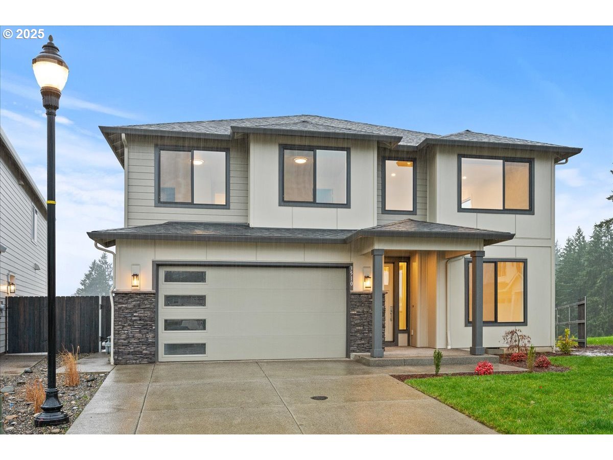 (503) 893-8874Completed, move-in ready home. Photos & virtual tour are of the actual home. Take advantage of limited-time builder incentives & preferred lender rates. Contact us today for details! Welcome to Paradise Pointe Estates, one of Ridgefield’s newest and most desirable communities. Nestled among trees with stunning mountain views, this thoughtfully designed community features extensive walking trails, multiple playgrounds, and a serene, nature-focused setting—all while offering easy access to I-5 and nearby shopping. Built by renowned Manor Homes, one of the top local builders in the region, these homes reflect superior craftsmanship, modern design, and exceptional quality. This Contemporary Prairie Plan-style two-story floor plan features 3 bedrooms, a main-level den, large open loft, 2.5 baths, and a spacious 2-car garage. Gourmet kitchen w/ large island, walk-in pantry, quartz countertops, & premium KitchenAid appliances. Open-concept great room with a floor to ceiling linear gas fireplace. The luxurious primary ensuite features double sinks set in sleek vanity, perfect for busy mornings. Spacious walk-in closet provides ample storage and organization. The custom-tiled shower adds a touch of elegance, while a large modern soaking tub offers the ultimate space to relax and unwind. 8' doors and oversized windows on the main floor to maximize natural light. Enjoy seamless indoor-outdoor living w/ a generously sized, covered entertainment area—perfect for weekend BBQs & gatherings. Beautifully landscaped yard complete with sprinkler system & full fencing for privacy & convenience. Central A/C included for year-round comfort. 2-10 Home Buyers Warranty for added peace of mind. Manor Homes offers 9 new home communities throughout Clark & Cowlitz counties—there’s truly something for everyone. MODEL HOME OPEN DAILY BY APPOINTMENT. Schedule Your Visit Today to Discover This Incredible New Home Community.