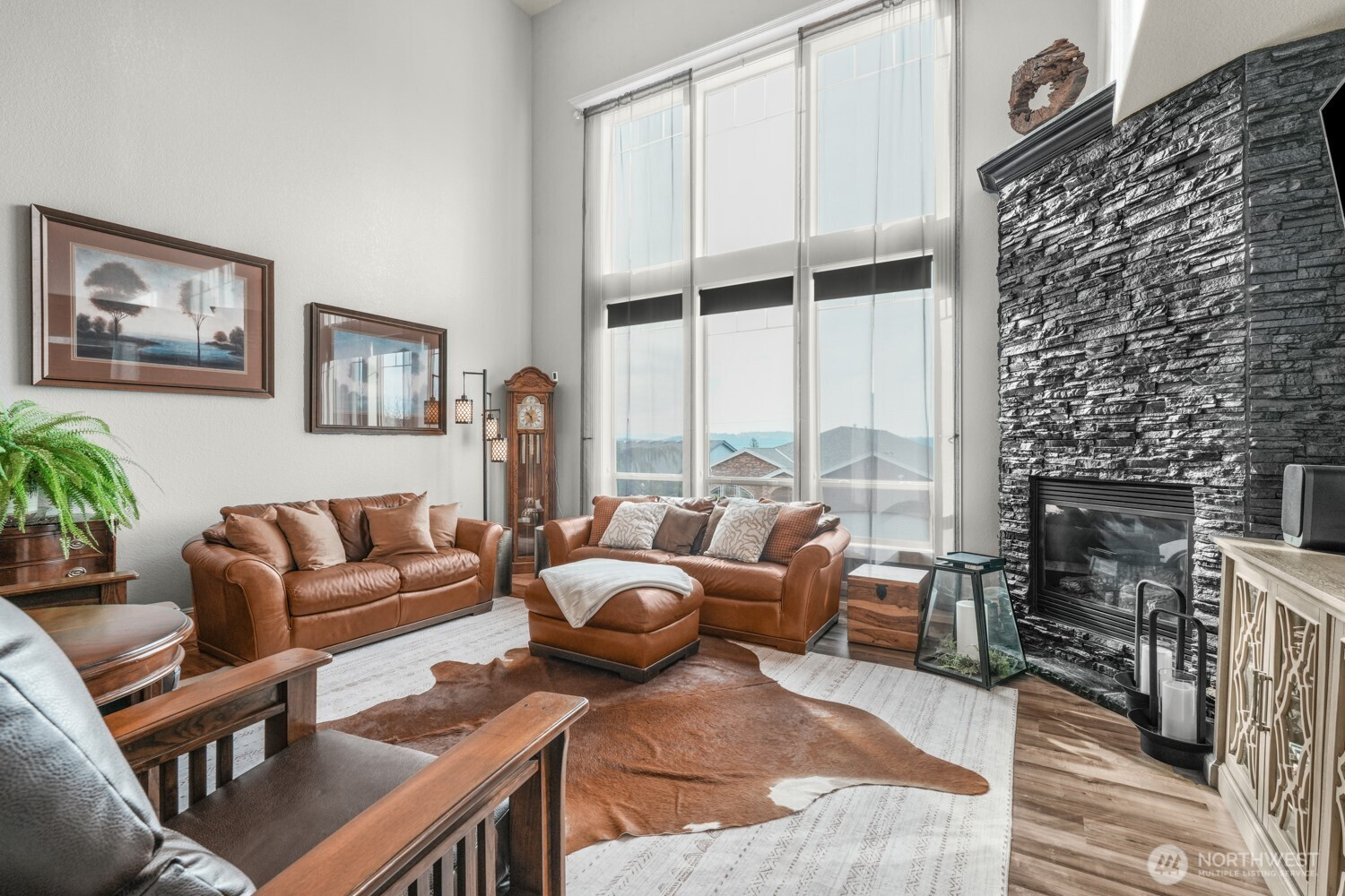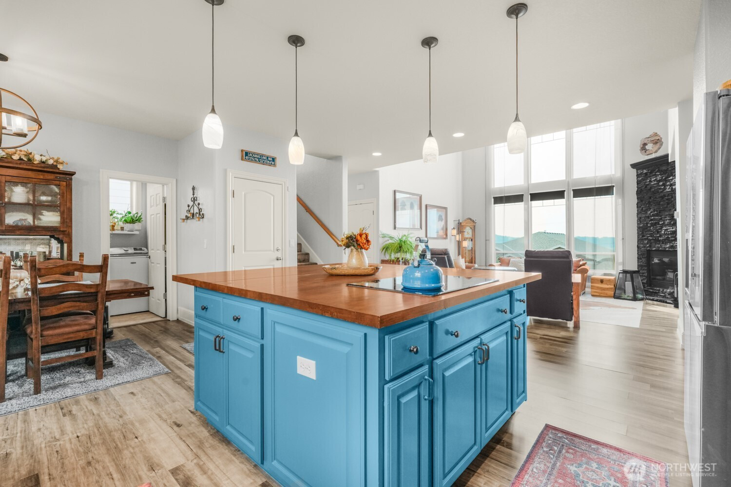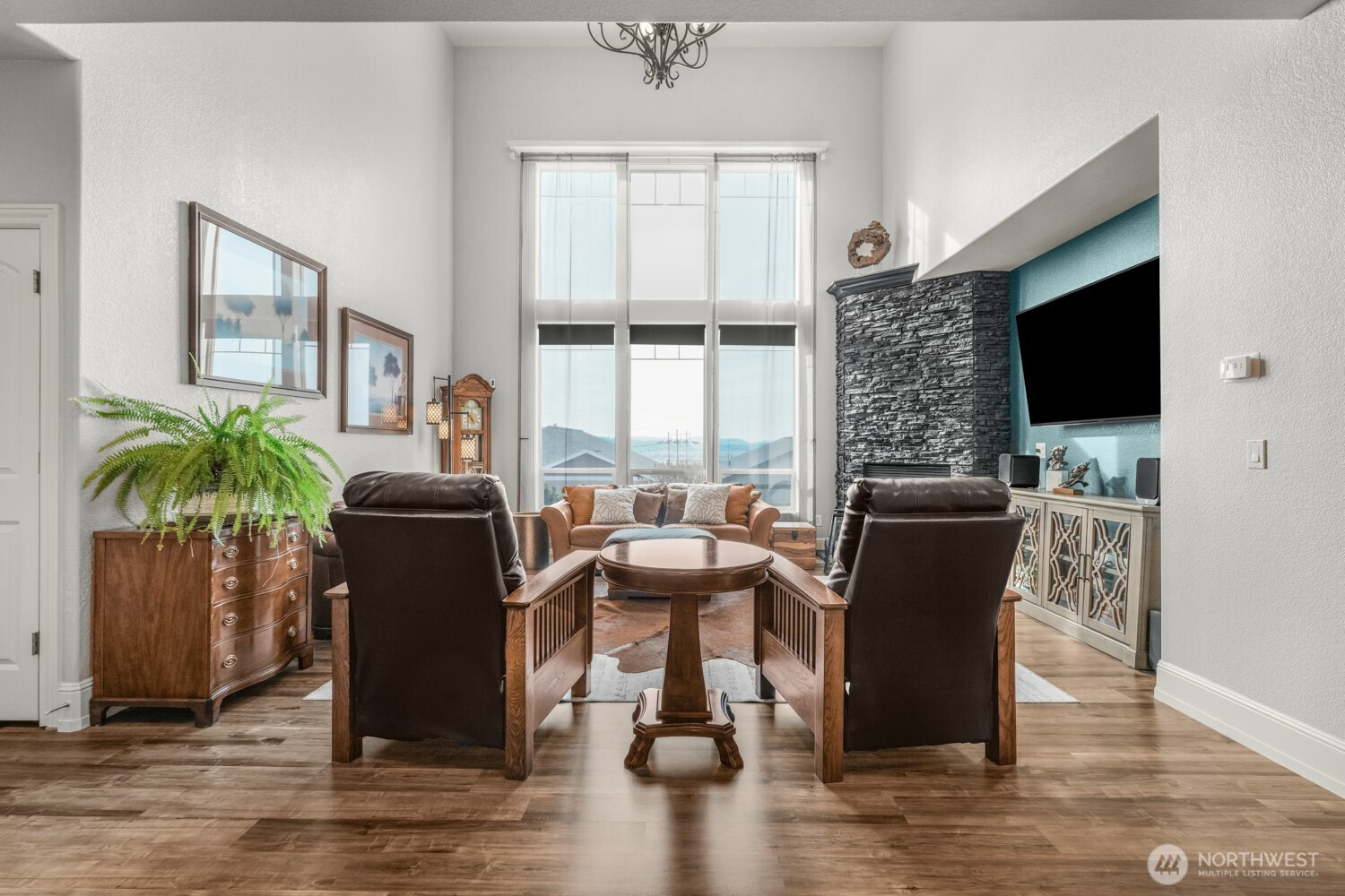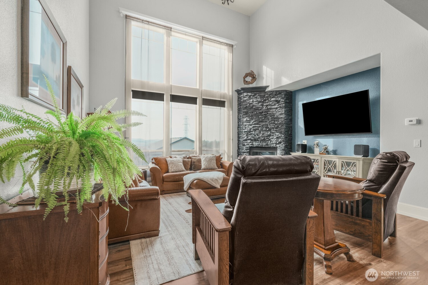 Stunning Home in Pierce Pointe on cul-de-sac. 4-bed, 2.5-bath home. Open-concept main living area w/ LVP flooring, vaulted ceilings & wall of windows w/ mountain & Columbia river views. Living room w/ fireplace. Kitchen w/ SS appliances, cook island w/ eat bar & pantry. Dining area w/ sliders to covered patio. Family room w/ perimeter lighting for 2nd gathering space. Bedroom for guests or home office. Upstairs primary suite w/ perimeter lighting, walk-in closet & private bathroom. 2 more bedrooms, guest bath & loft. Private, fenced, tiered backyard. Upper grass yard surrounded by lush landscaping, water feature & gas hookups. Near dining, shopping & Cottonwood Beach on Columbia River. Updates include light fixtures, paint, landscaping.