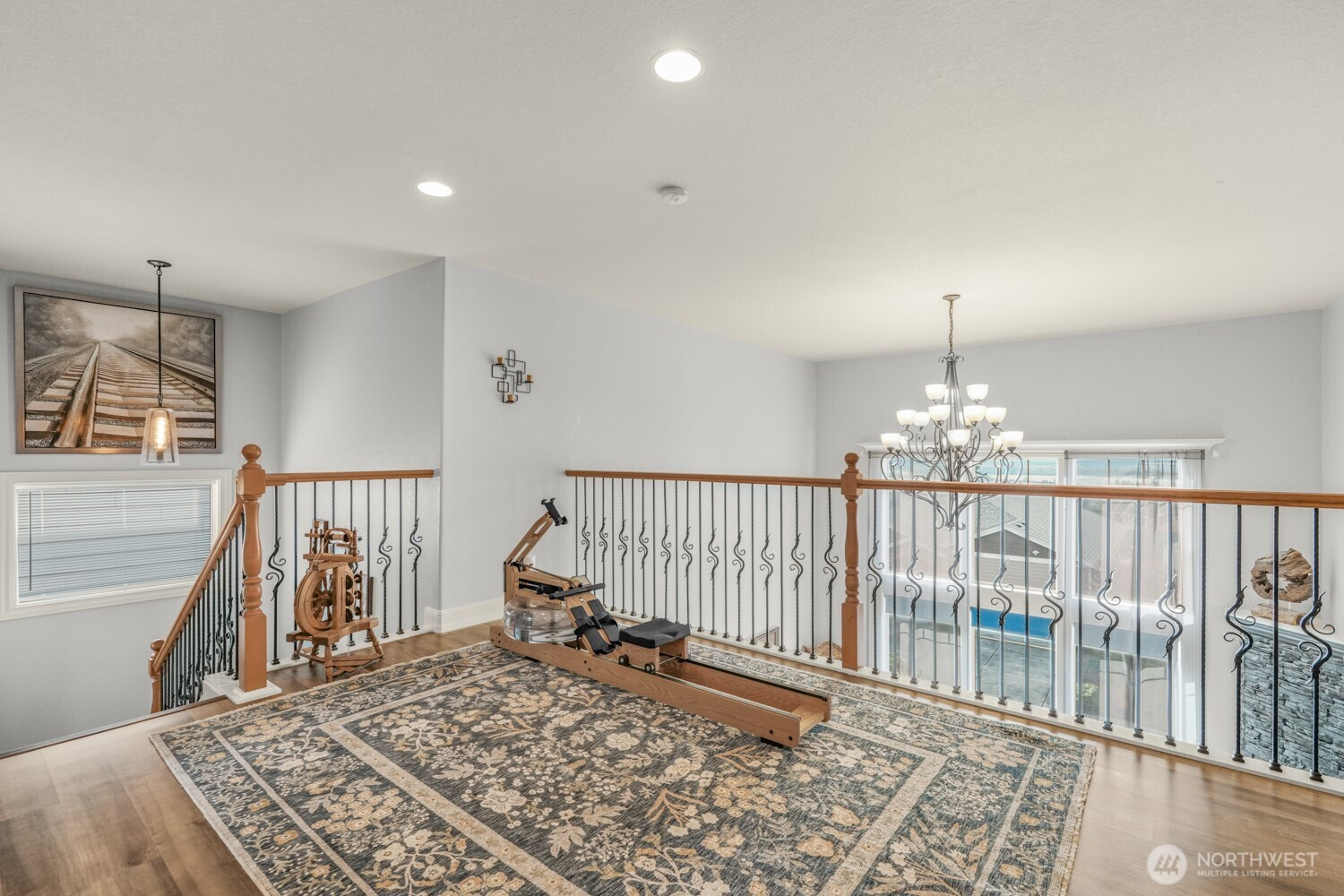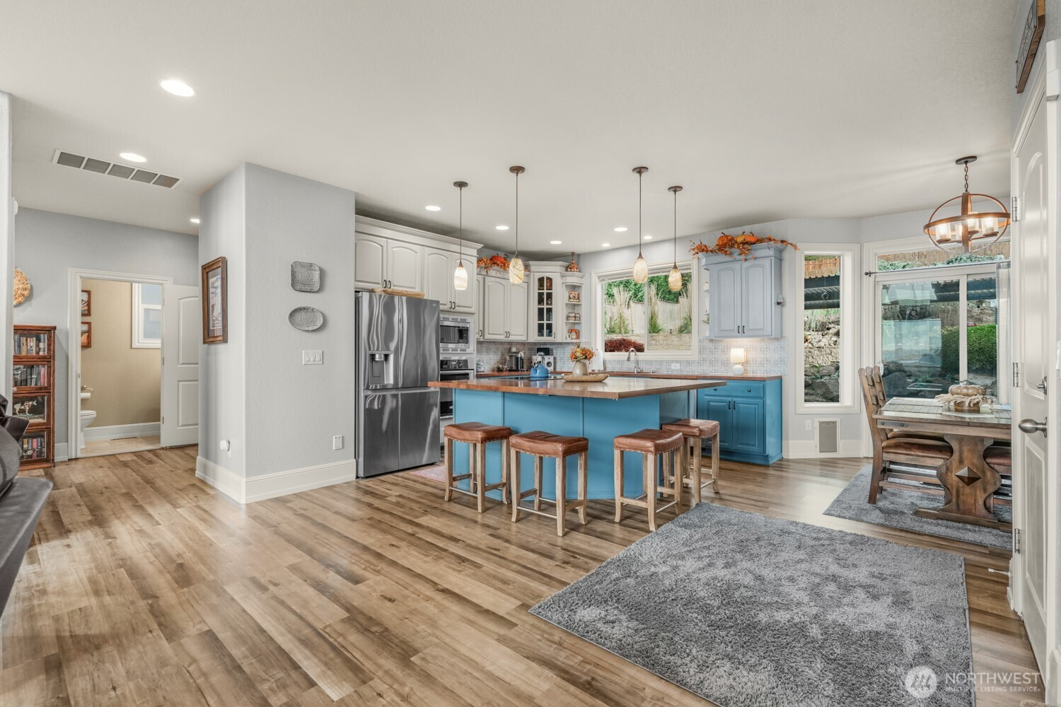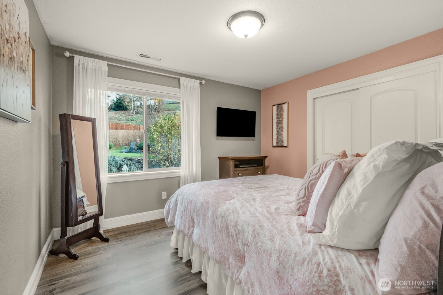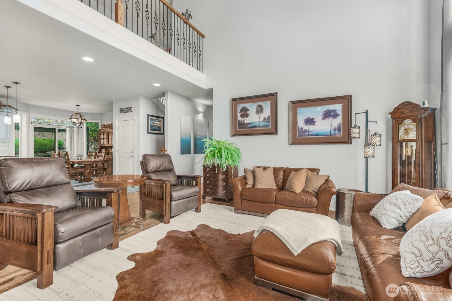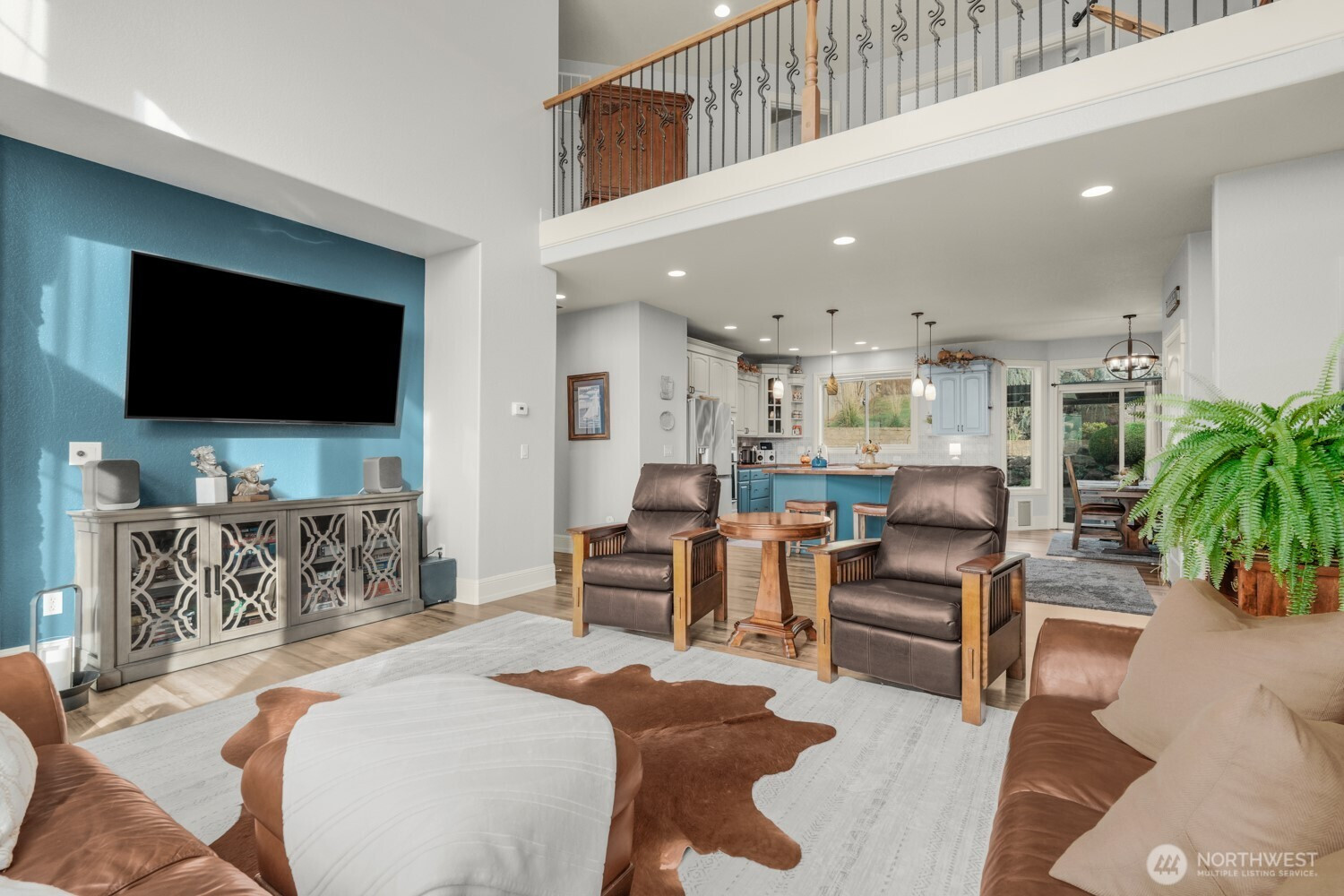 Stunning Home in Pierce Pointe on cul-de-sac. 4-bed, 2.5-bath home. Open-concept main living area w/ LVP flooring, vaulted ceilings & wall of windows w/ mountain & Columbia river views. Living room w/ fireplace. Kitchen w/ SS appliances, cook island w/ eat bar & pantry. Dining area w/ sliders to covered patio. Family room w/ perimeter lighting for 2nd gathering space. Bedroom for guests or home office. Upstairs primary suite w/ perimeter lighting, walk-in closet & private bathroom. 2 more bedrooms, guest bath & loft. Private, fenced, tiered backyard. Upper grass yard surrounded by lush landscaping, water feature & gas hookups. Near dining, shopping & Cottonwood Beach on Columbia River. Updates include light fixtures, paint, landscaping.