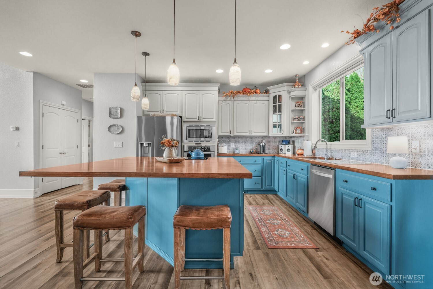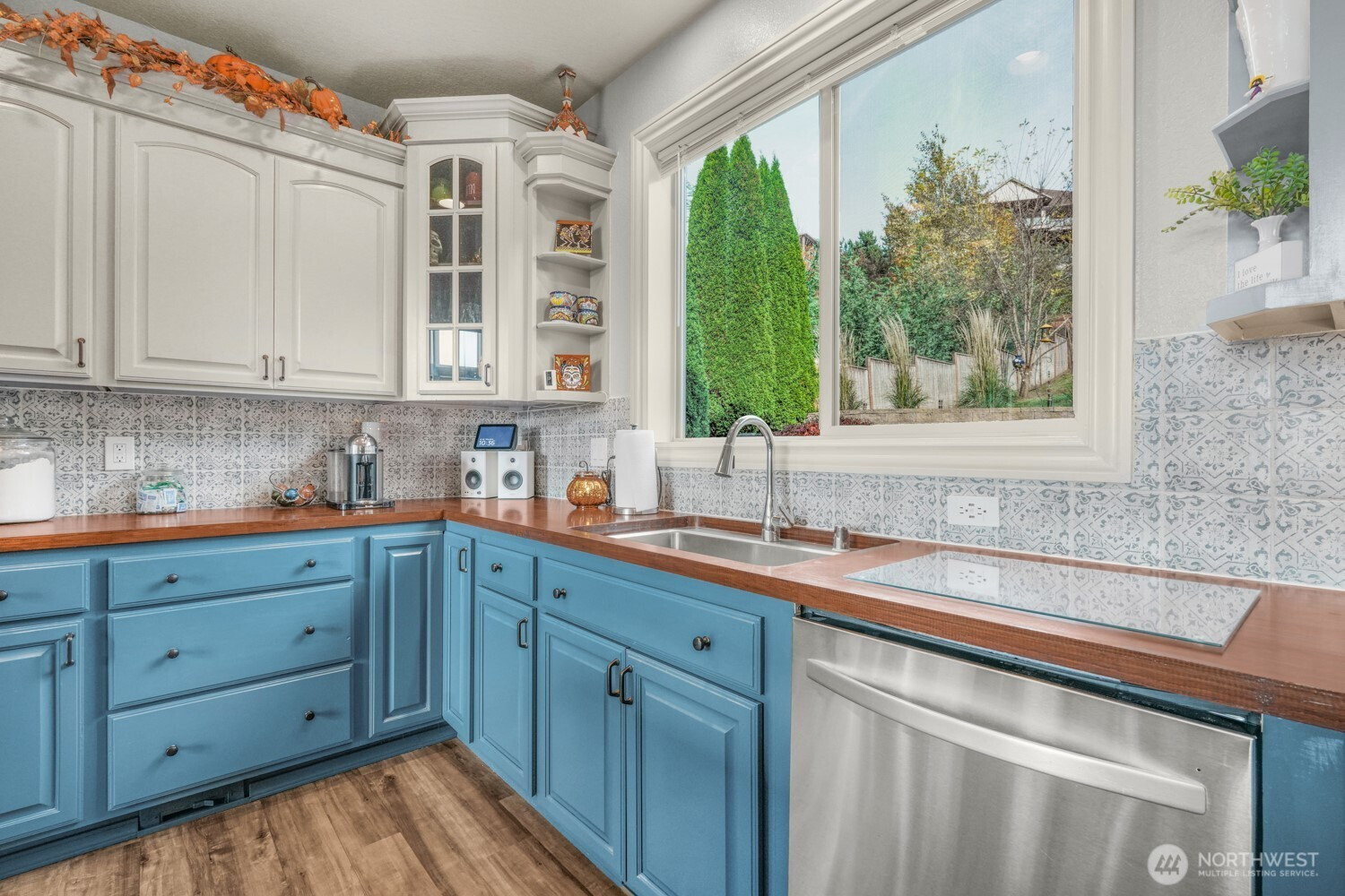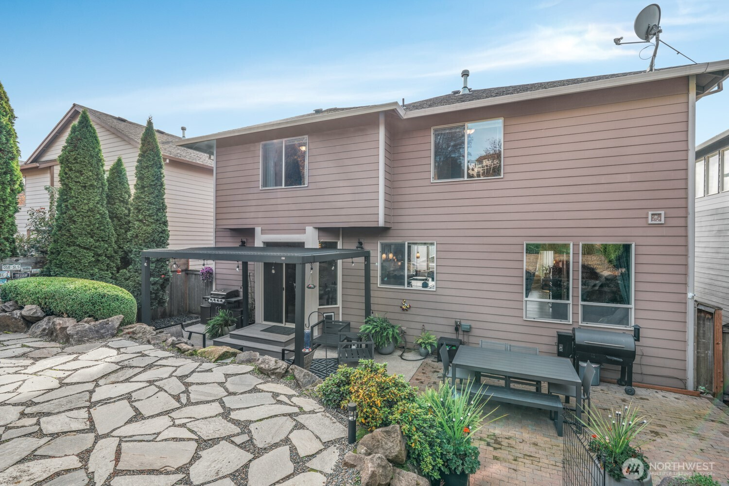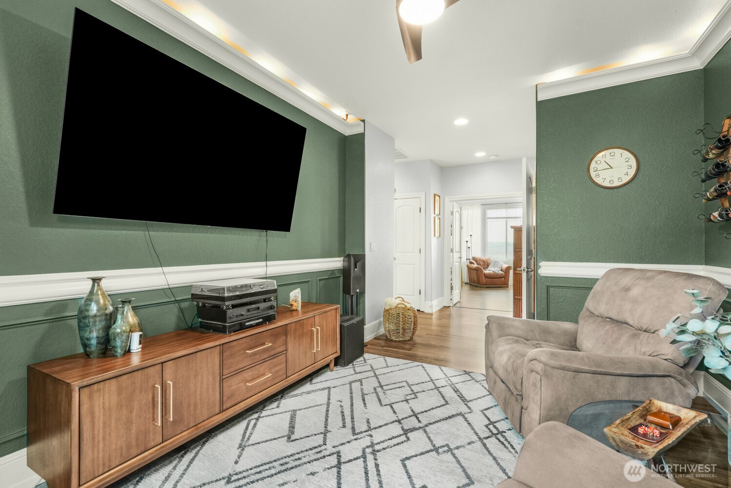 Stunning Home in Pierce Pointe on cul-de-sac. 4-bed, 2.5-bath home. Open-concept main living area w/ LVP flooring, vaulted ceilings & wall of windows w/ mountain & Columbia river views. Living room w/ fireplace. Kitchen w/ SS appliances, cook island w/ eat bar & pantry. Dining area w/ sliders to covered patio. Family room w/ perimeter lighting for 2nd gathering space. Bedroom for guests or home office. Upstairs primary suite w/ perimeter lighting, walk-in closet & private bathroom. 2 more bedrooms, guest bath & loft. Private, fenced, tiered backyard. Upper grass yard surrounded by lush landscaping, water feature & gas hookups. Near dining, shopping & Cottonwood Beach on Columbia River. Updates include light fixtures, paint, landscaping.